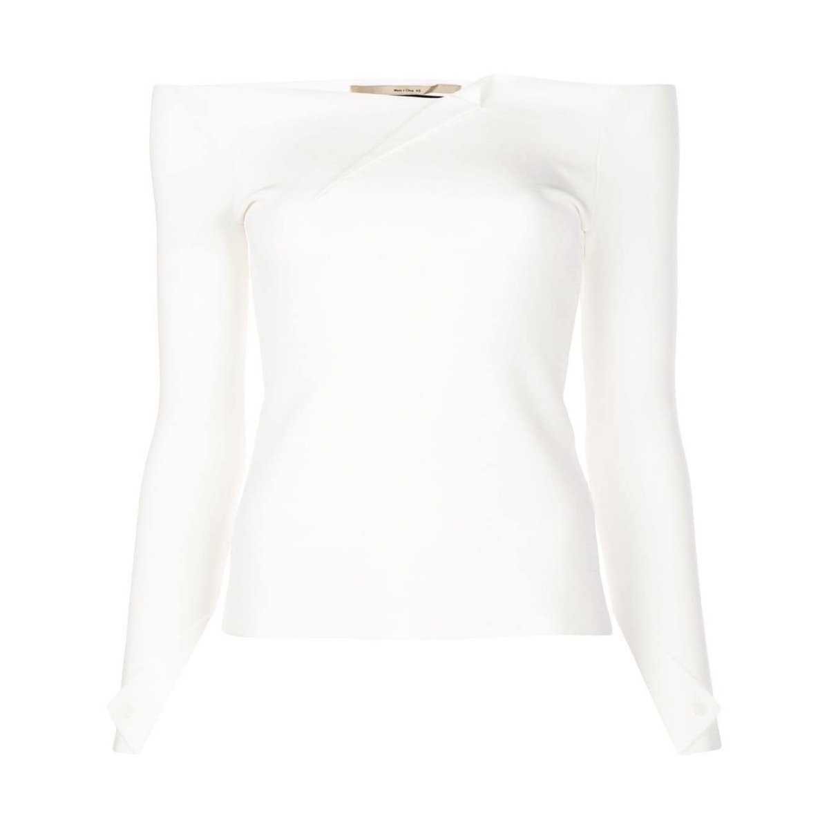 White Angeles knit top featuring an off the shoulder design