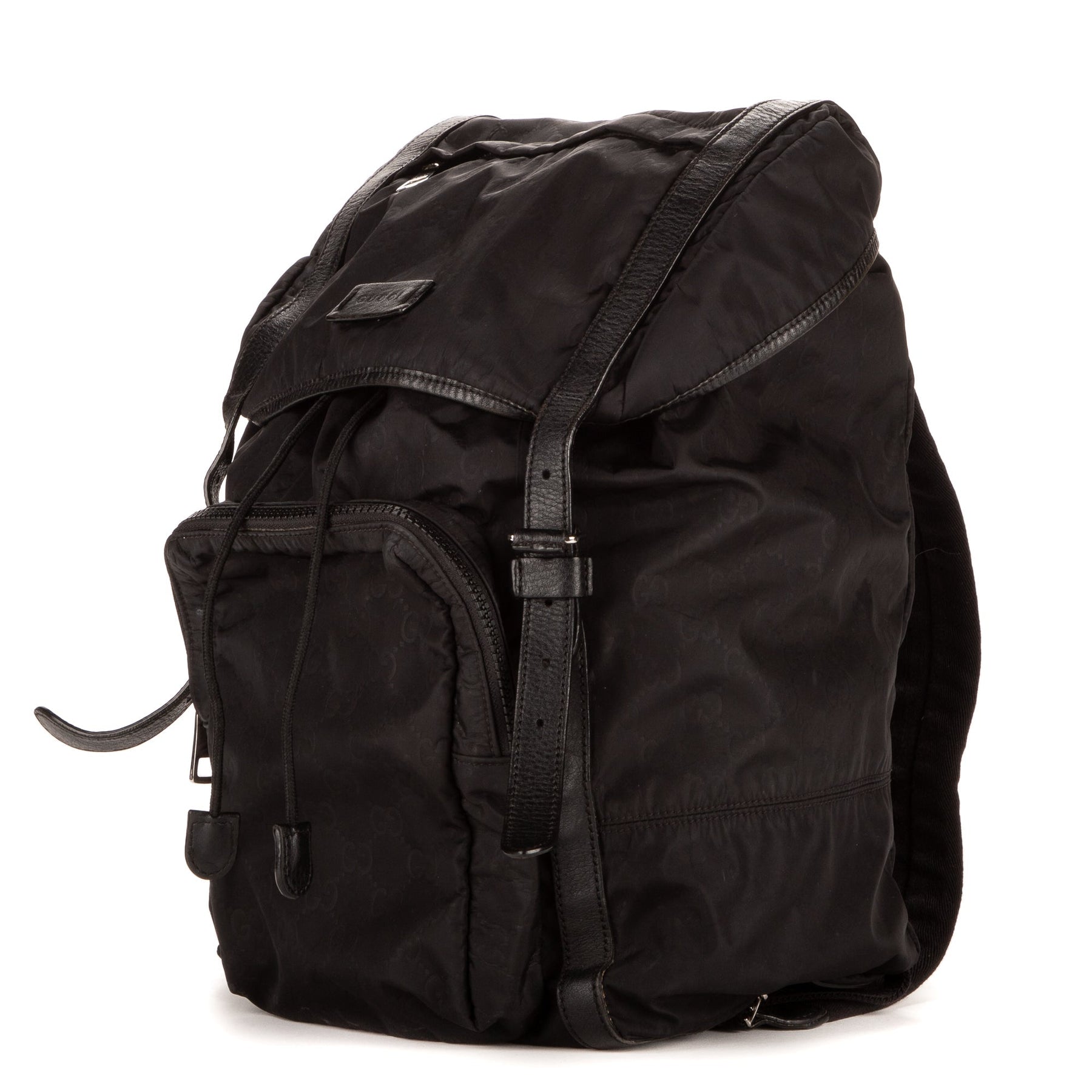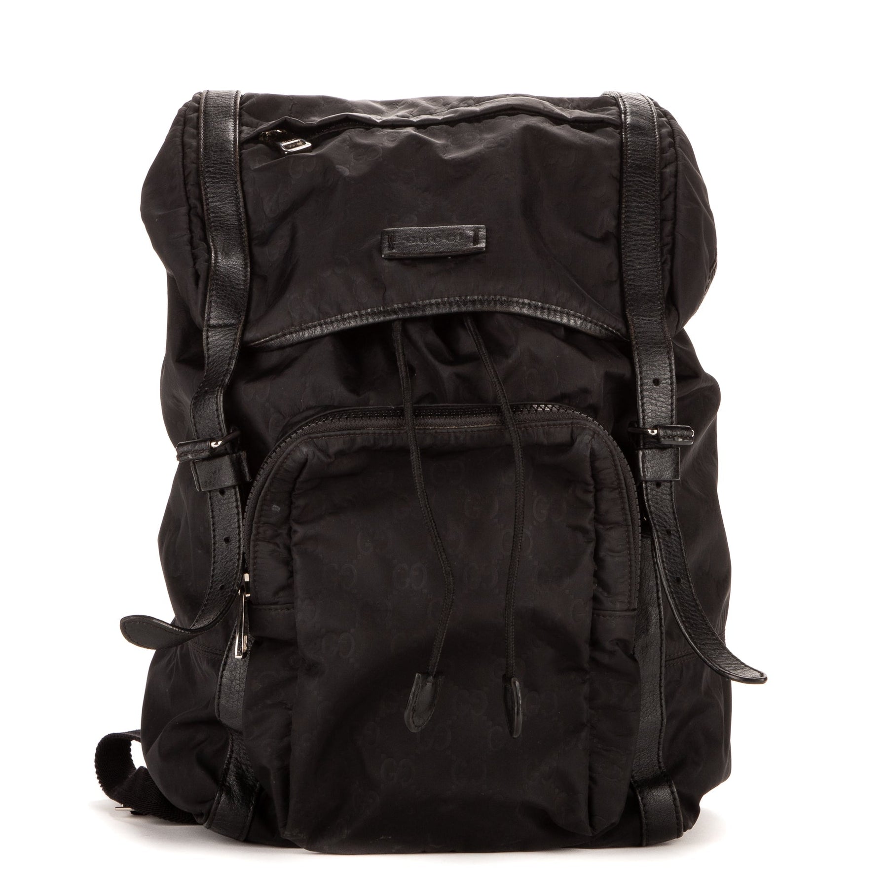 Gucci Backpack in Black Nylon monogram and Gold hardware. Dimensions - 23*40*15cm. Serial number - 5.10E+11. Inclusions - NONE.
