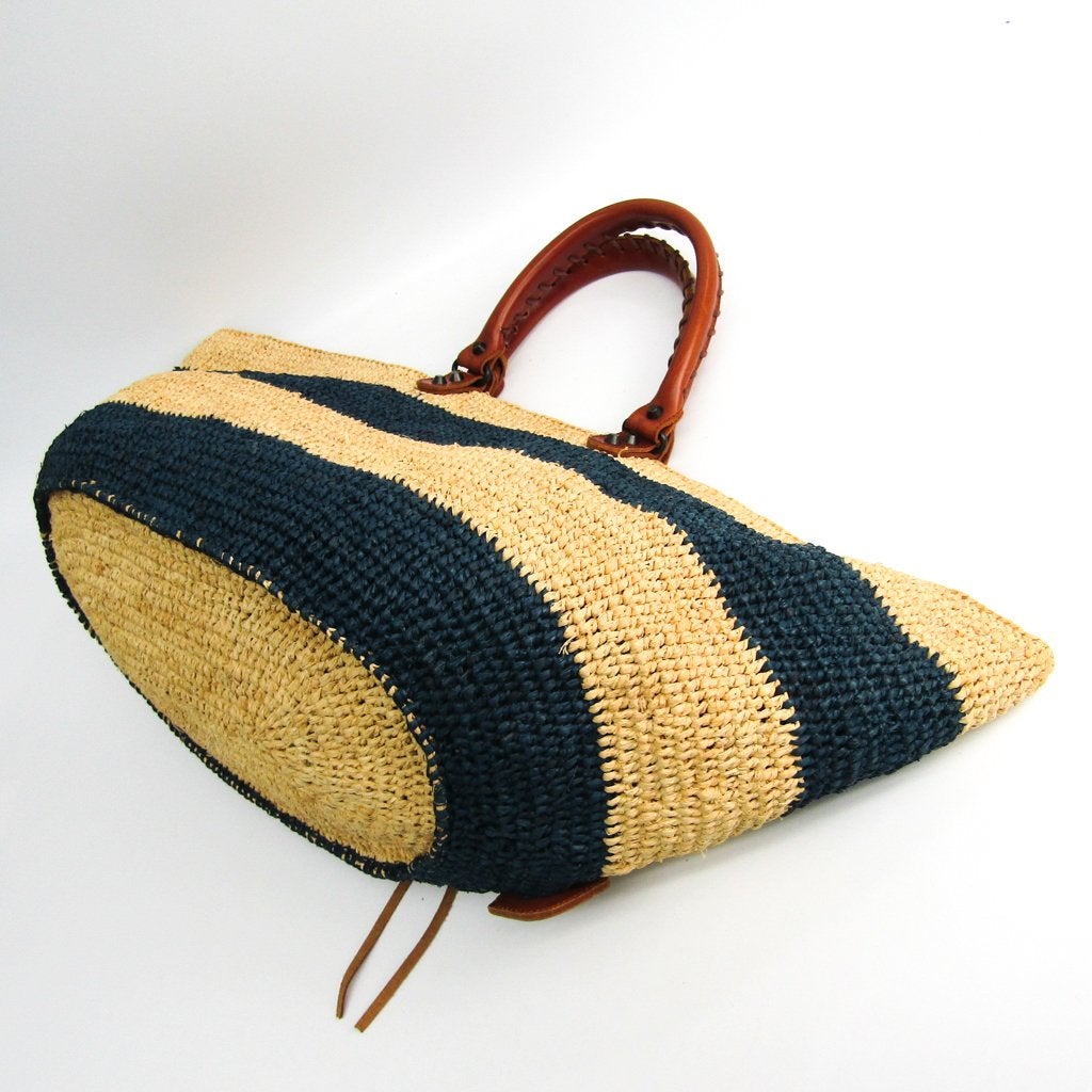 Balenciaga Raffia Straw Panier Leather Basket Tote (SHA-43851)