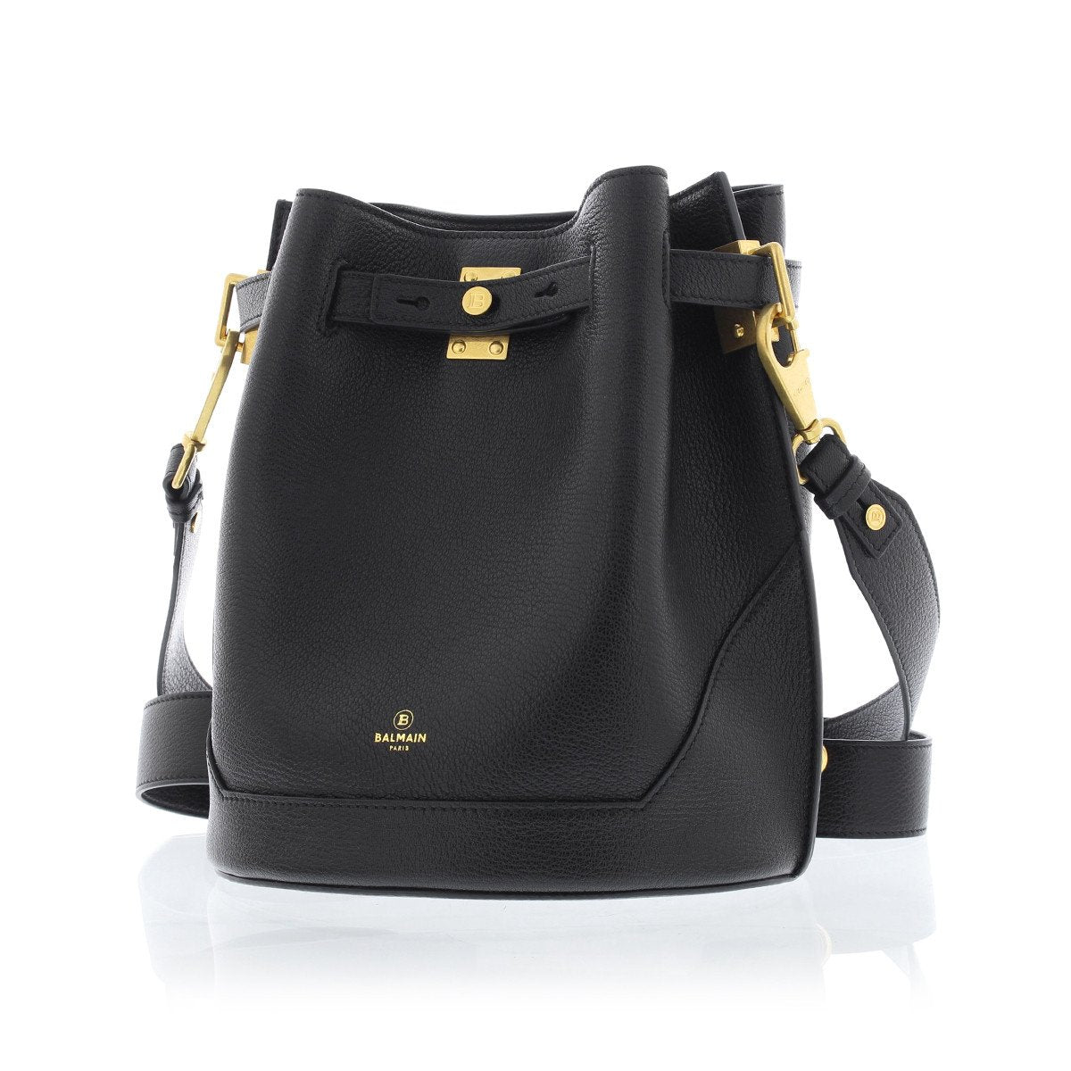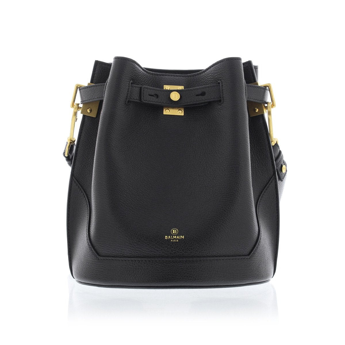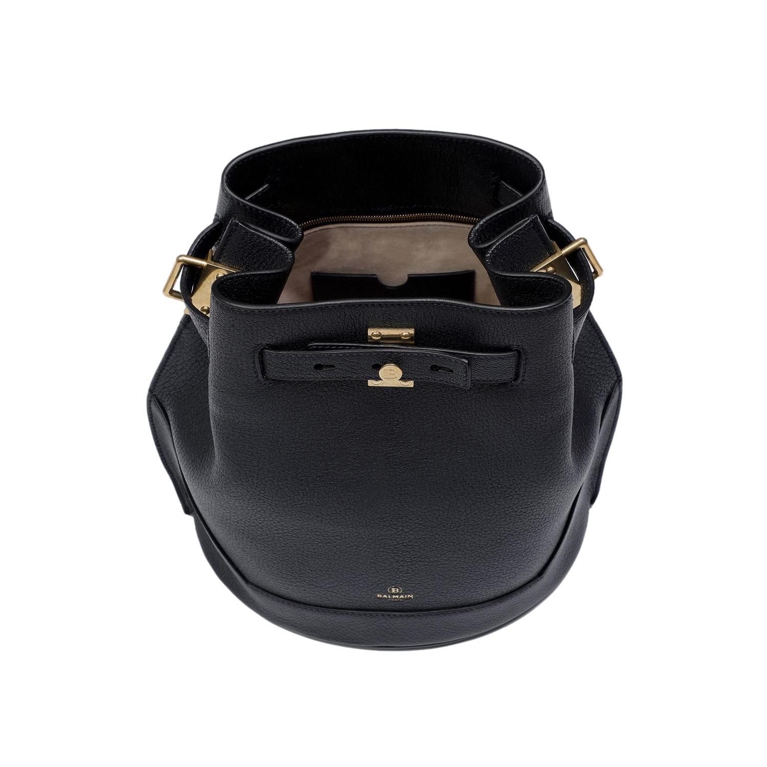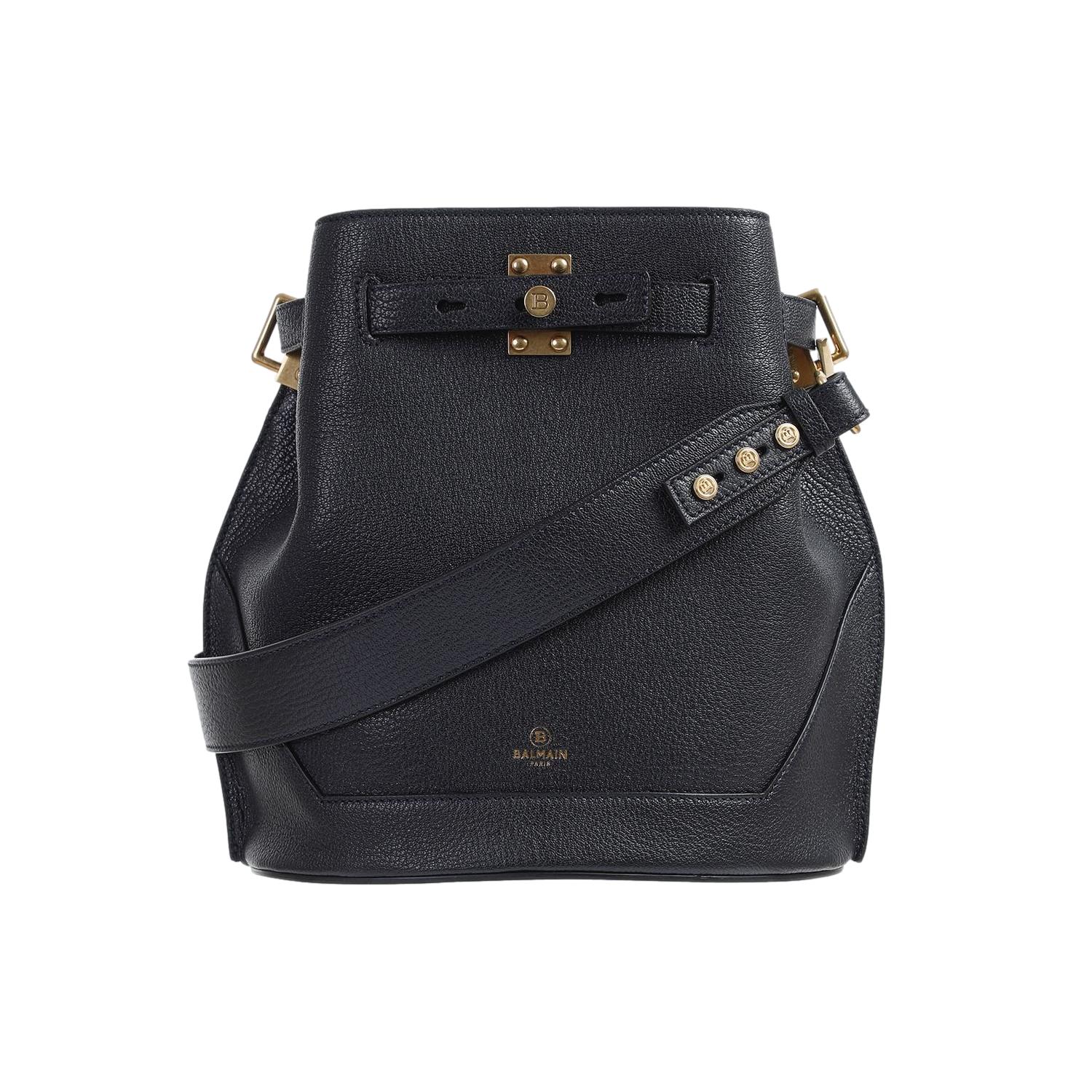 - Two adjustable and detachable leather shoulder strap with Balmain-engraved lobster clasps, 12.5" drop
