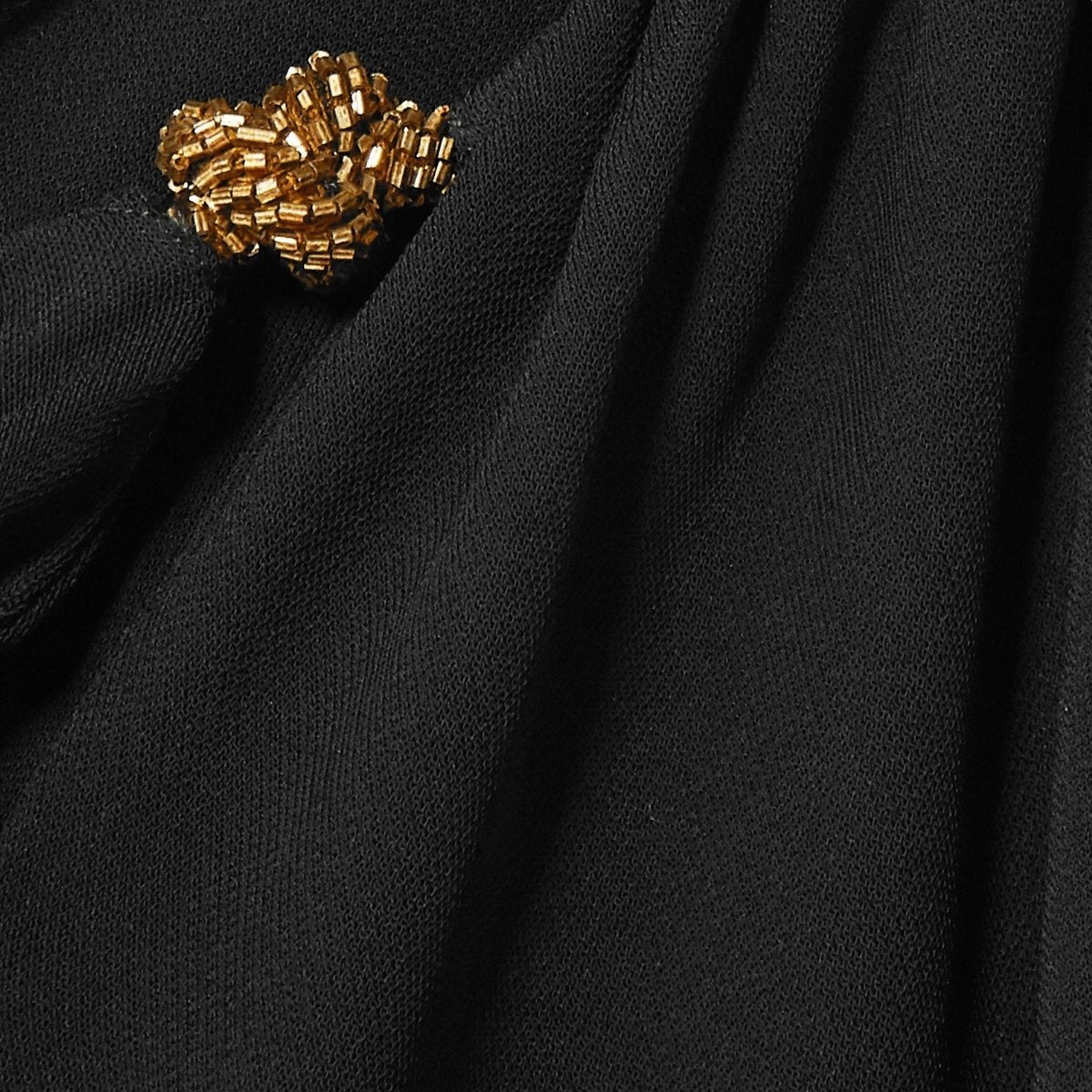 Made in Italy, this gown is draped from slinky black georgette detailed with keyholes and glistening beaded knots along the neckline.