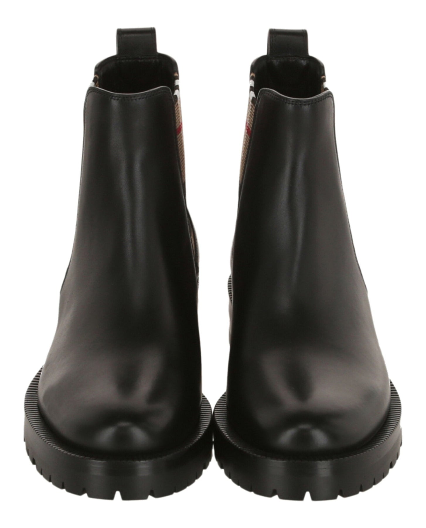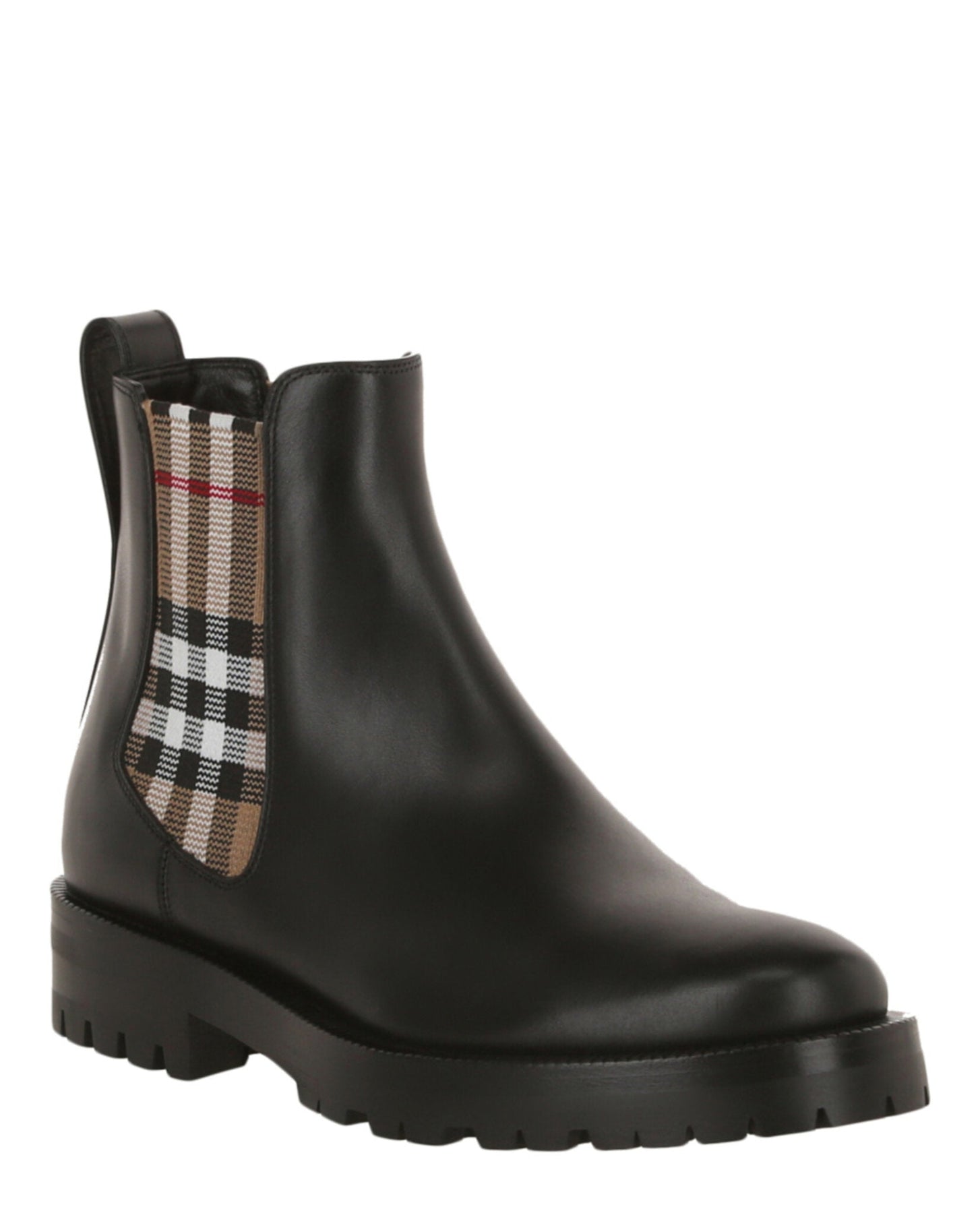 Heel height: 3.75"' Platform height: 1.375" | Pulls on | Round toe | Smooth finish | Check print at the elasticized side panels | Spot clean | Upper: 80% Calfskin leather, 15% Polyester, 5% Rubber; Lower: 100% Calfskin leather | Made in Italy