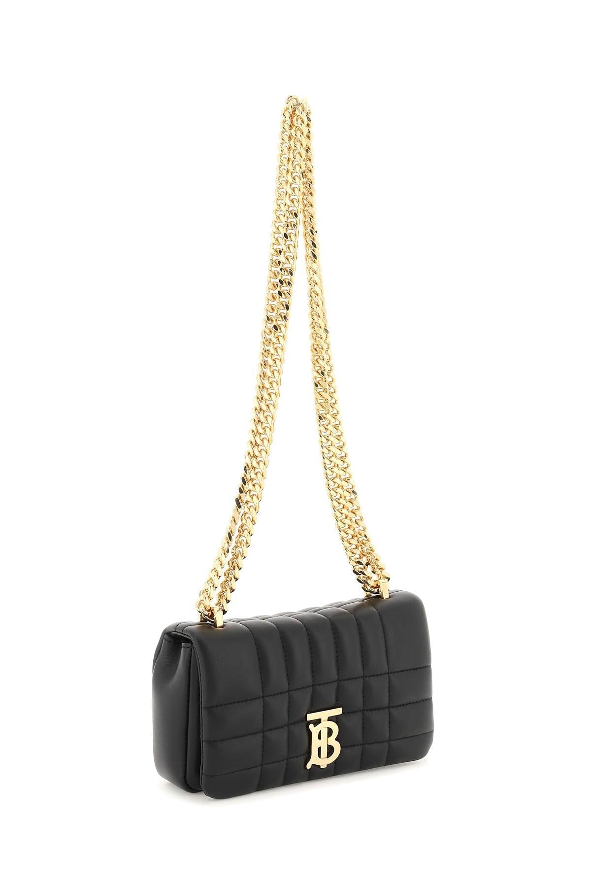 Lola mini bag by Burberry crafted in square-quilted leather with sliding chain shoulder strap, metal TB monogram on the flap and magnetic button closure. Fabric lining and one inner small flat pocket. Gold-finished metalware.