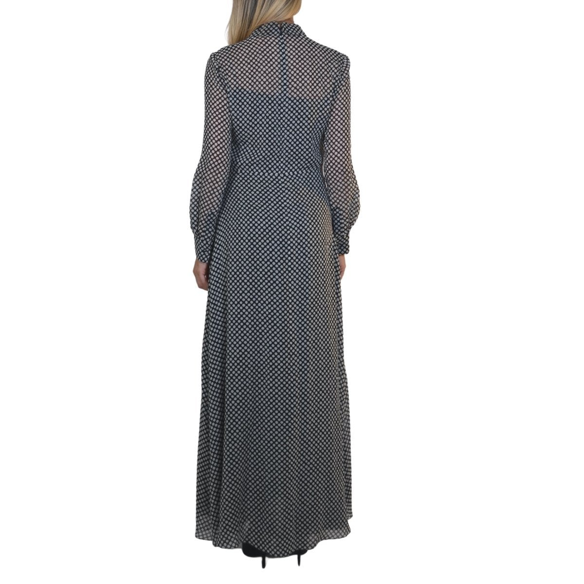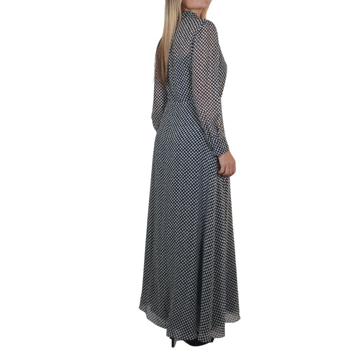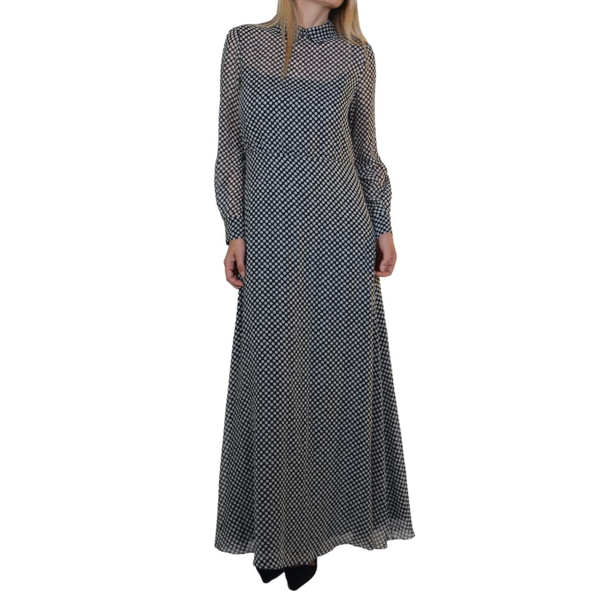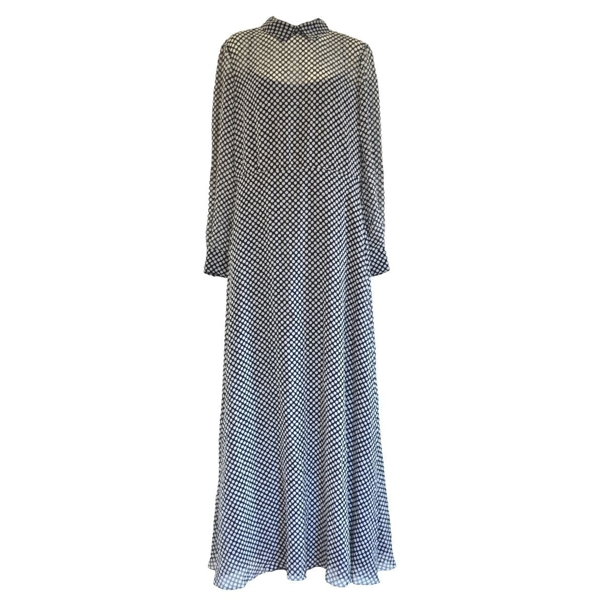Black and White Silk Polka Dot Maxi Silk Dress