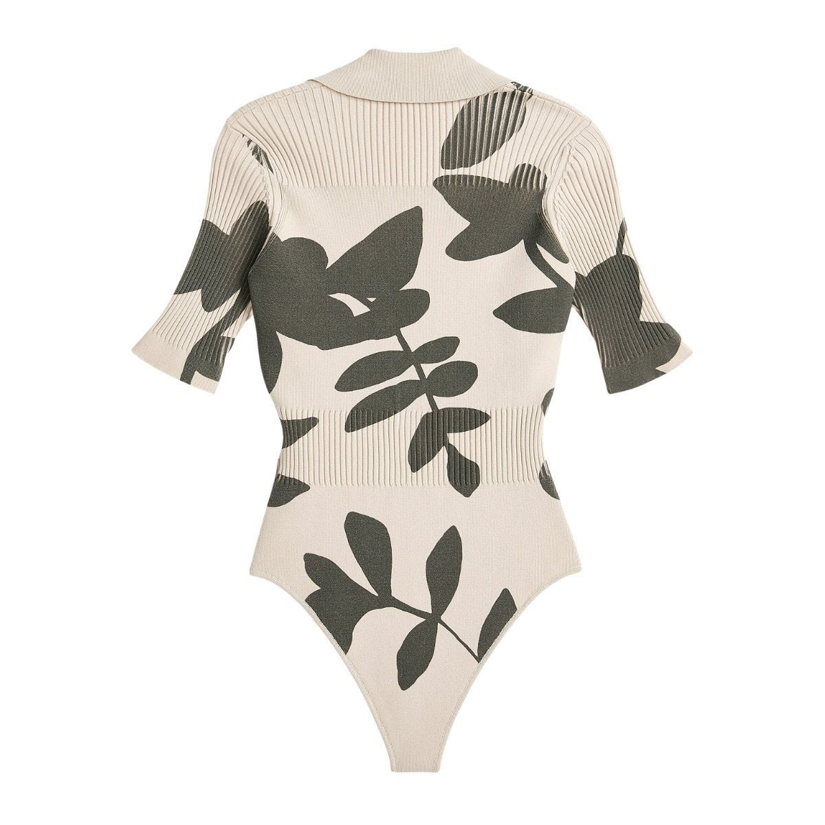 Botanical-print Ribbed Bodysuit