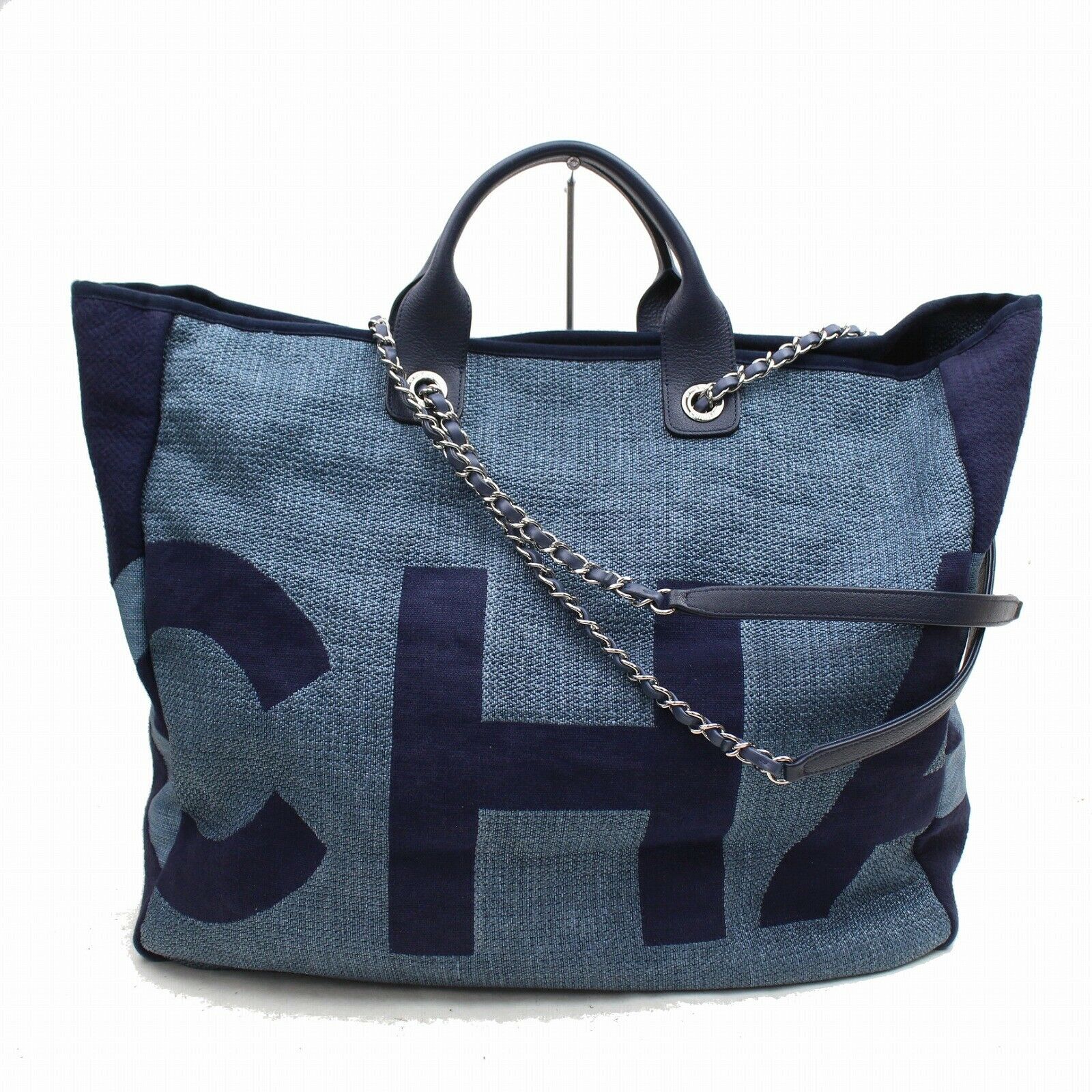 This is an Brand Inspired C*C Tote Bag Large Shopping Bag Blue Fabric Handbag. All photos are of actual C*C handbag being sold. This item is in good condition, and will have visible signs of wear and/or use. Please view photos carefully for details. Pay close attention to sizes and measurements. Dimensions (HxWxD): 16.1" H x 5.90" W x 17.3" D. This item ships through LuxeDH from Japan - expect delivery within 4-8 business days.