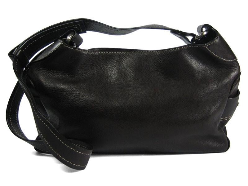 Celine's Brown Leather Bag is best of both worlds! Wear it as a shoulder bag with the long adjustable strap or wear it as a boogie bag. The dark brown leather bag has some scratch marks on the bottom and some small puncture marks on the bottom and corner, not visible in the photos. Closing with a magnetic clasp, it has a zipped pocket inside. The bag closes with a magnetic clasp and has an inside zip pocket. It's small and slouchy with nice, soft leather!