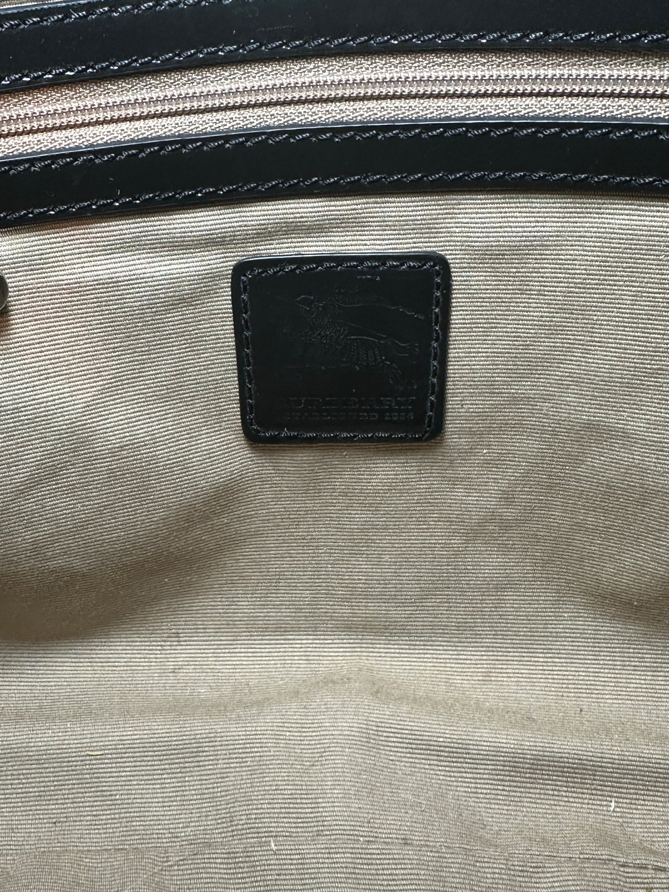 This single strap Burberry Barton hobo bag is finely crafted of a coated canvas exterior with Burberry's iconic nova check pattern and gun metal hardware. It features a patent leather trim and an interior lining of gross grain. It has a zip closure at top along with three interior pockets. This item includes an of ity.