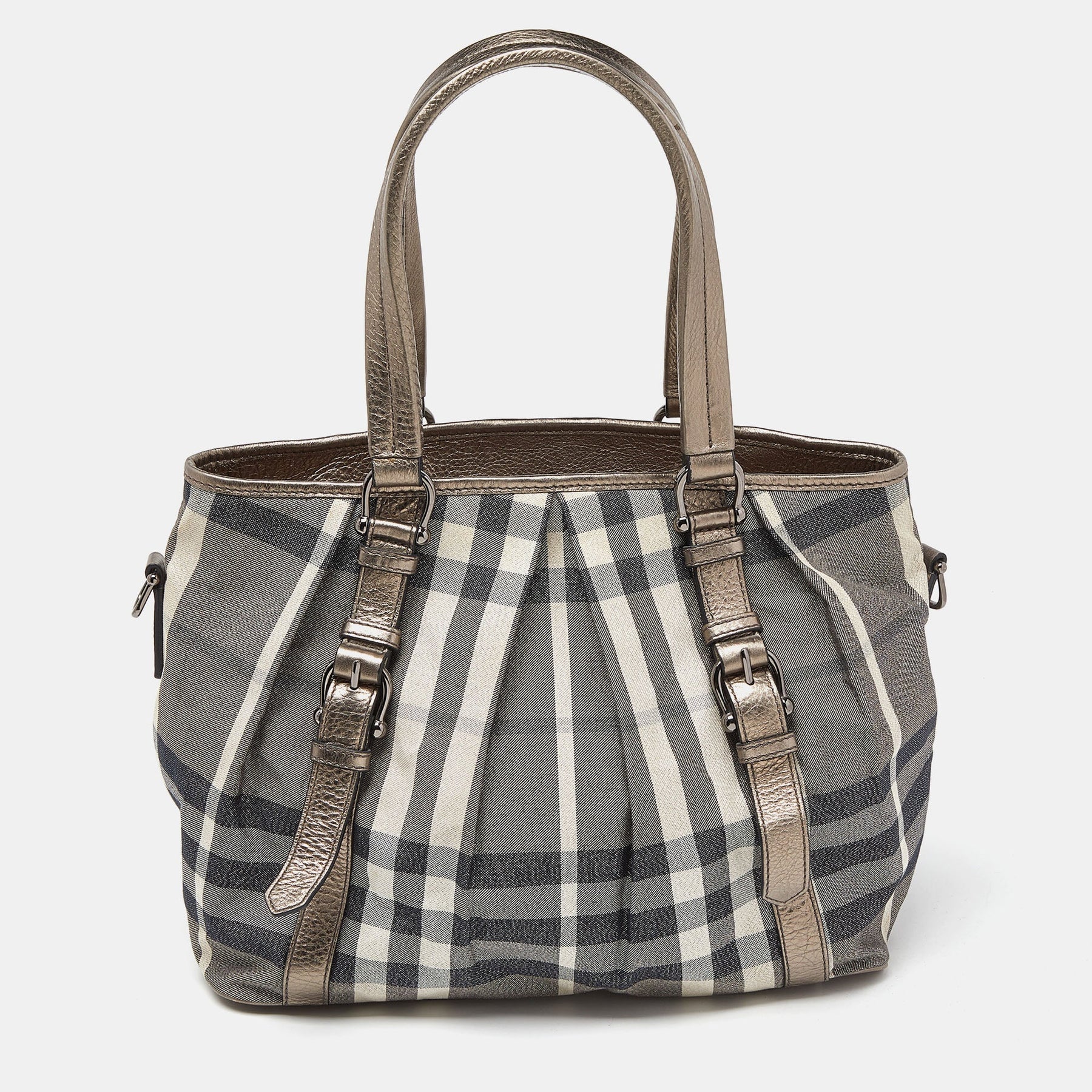 BURBERRY Beige Beat Check Lurex Fabric and Leather Northfield Tote