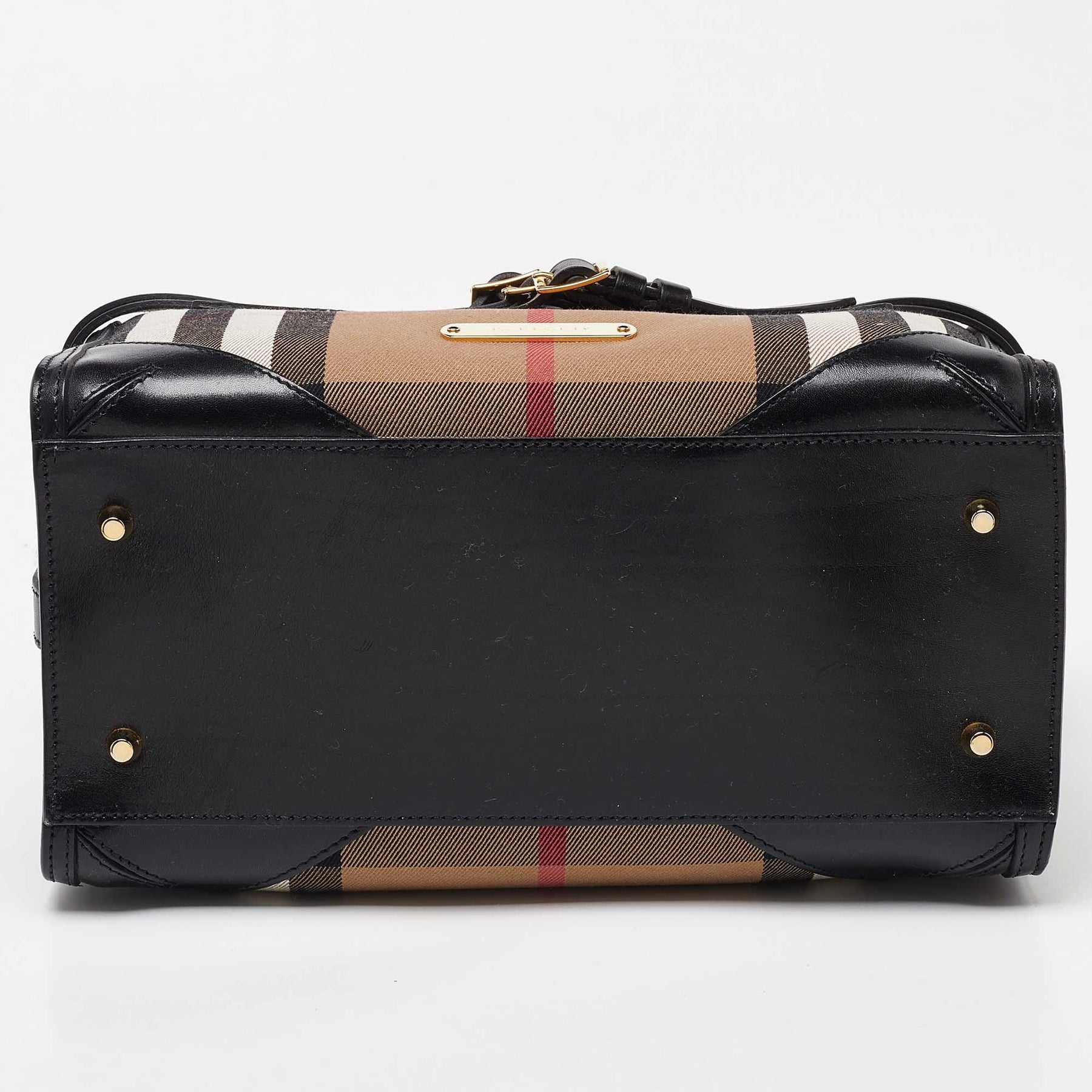 BURBERRY Beige/Black House Check Fabric and Leather Bridle Chester Bowler Bag