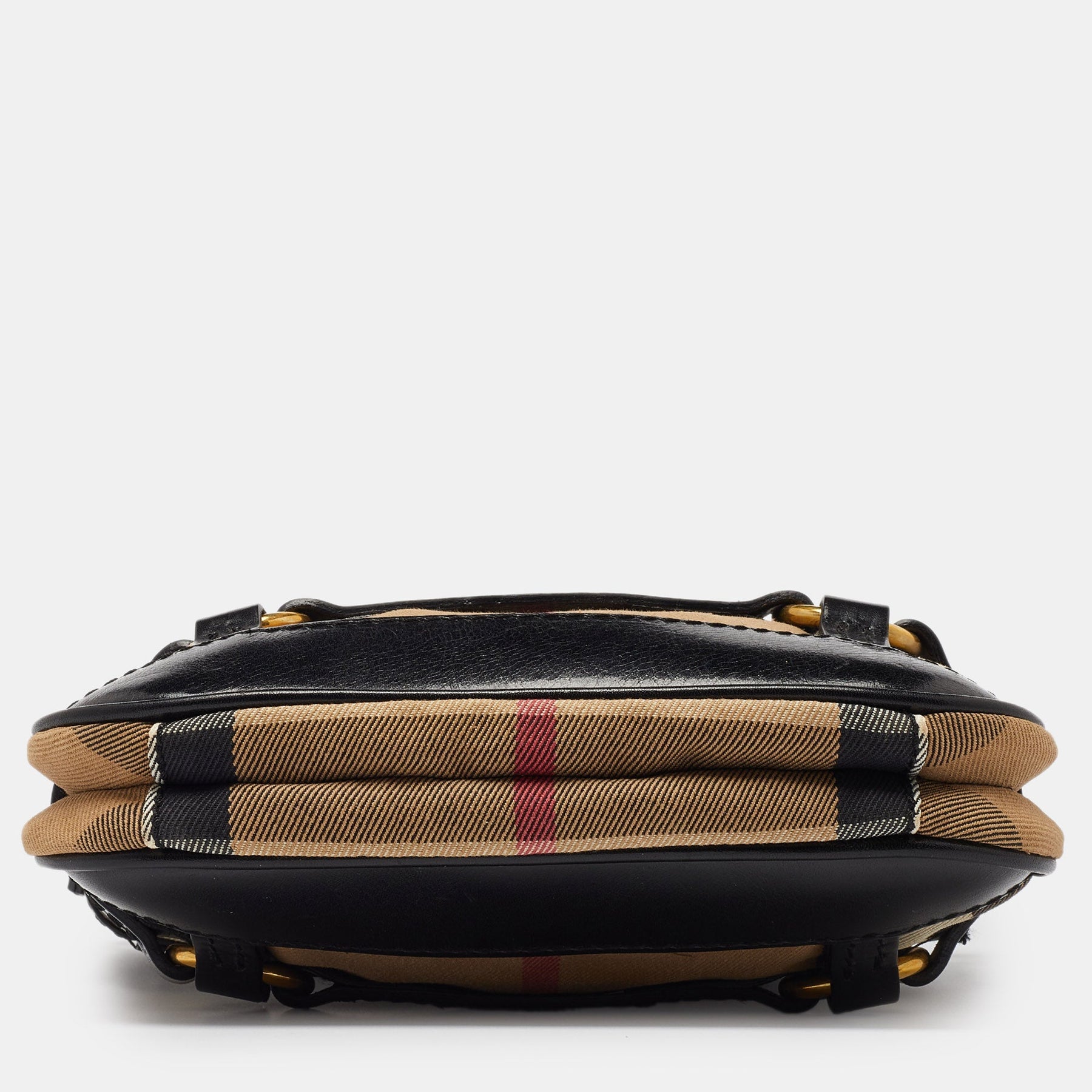 BURBERRY Beige/Black House Check Fabric and Leather Crossbody Bag