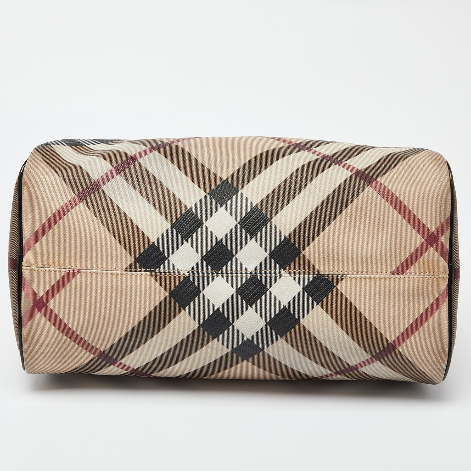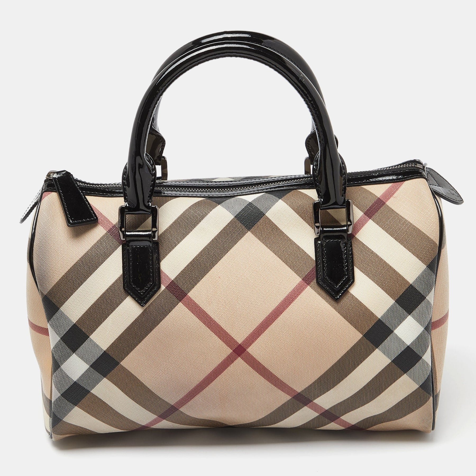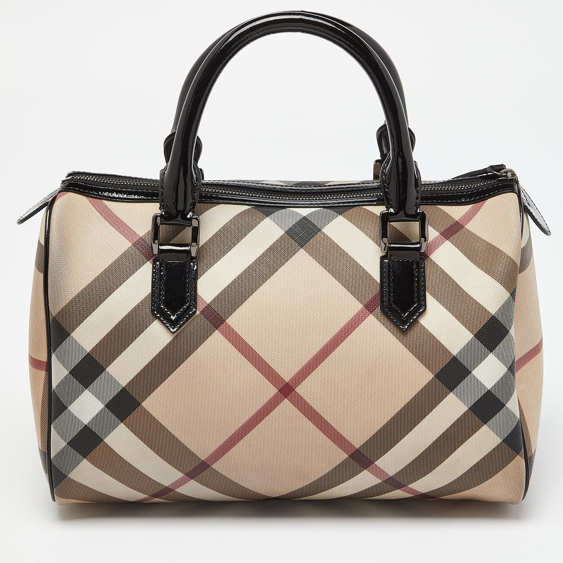 BURBERRY Beige/Black Nova Check PVC and Patent Leather Chester Boston Bag