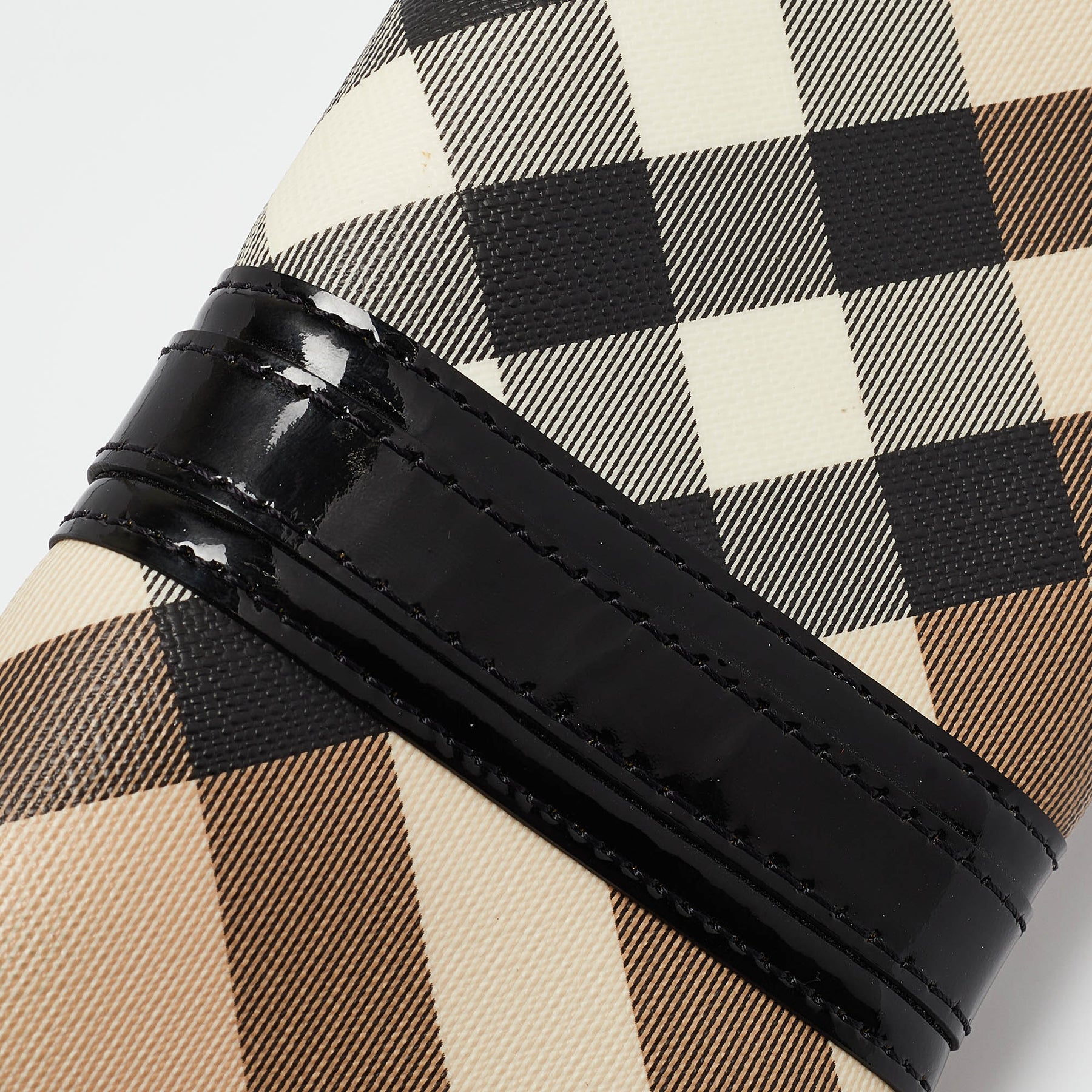 BURBERRY Beige/Black Nova Check PVC and Patent Leather Fold Over Wristlet Clutch