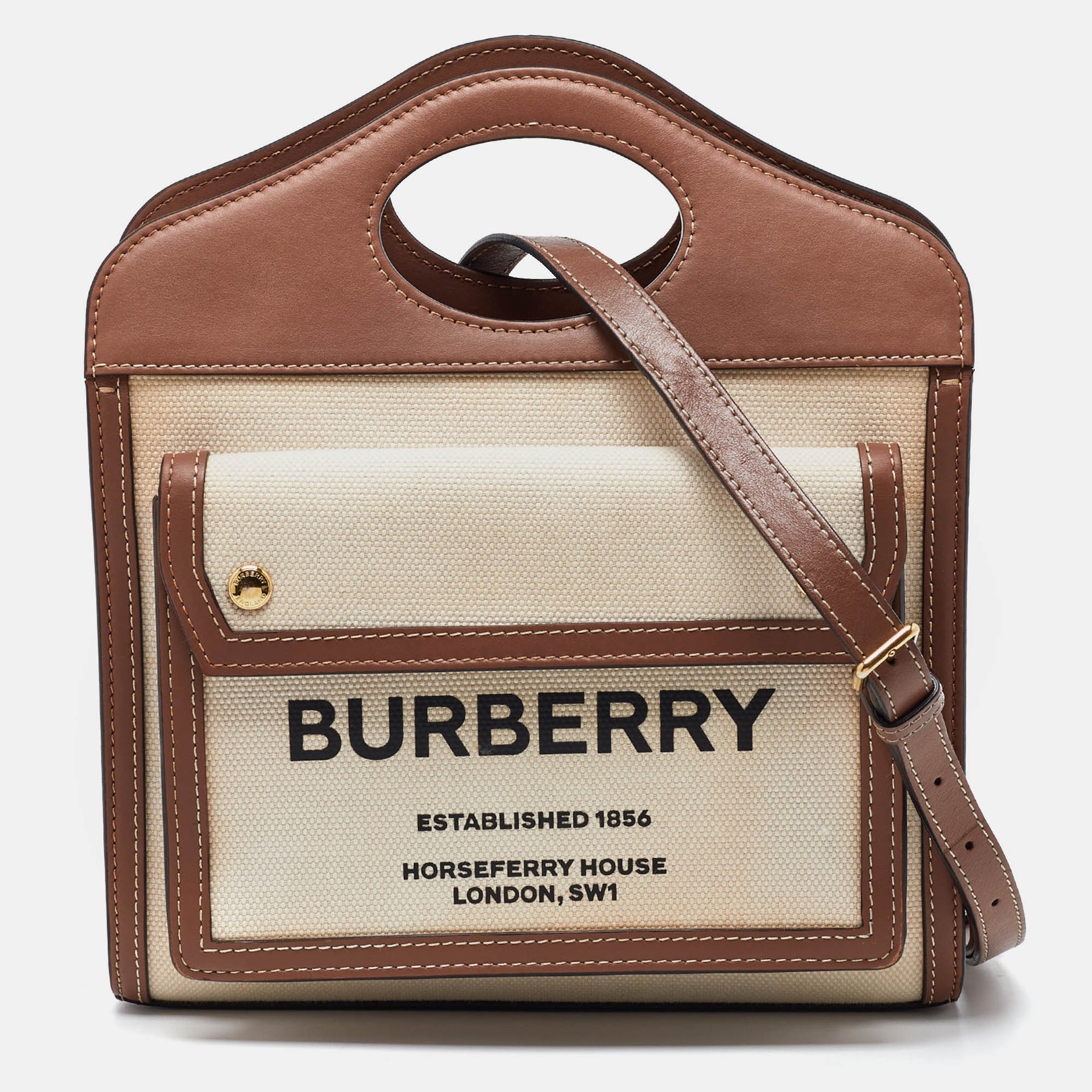 BURBERRY Beige/Brown Canvas and Leather Mini Pocket Tote