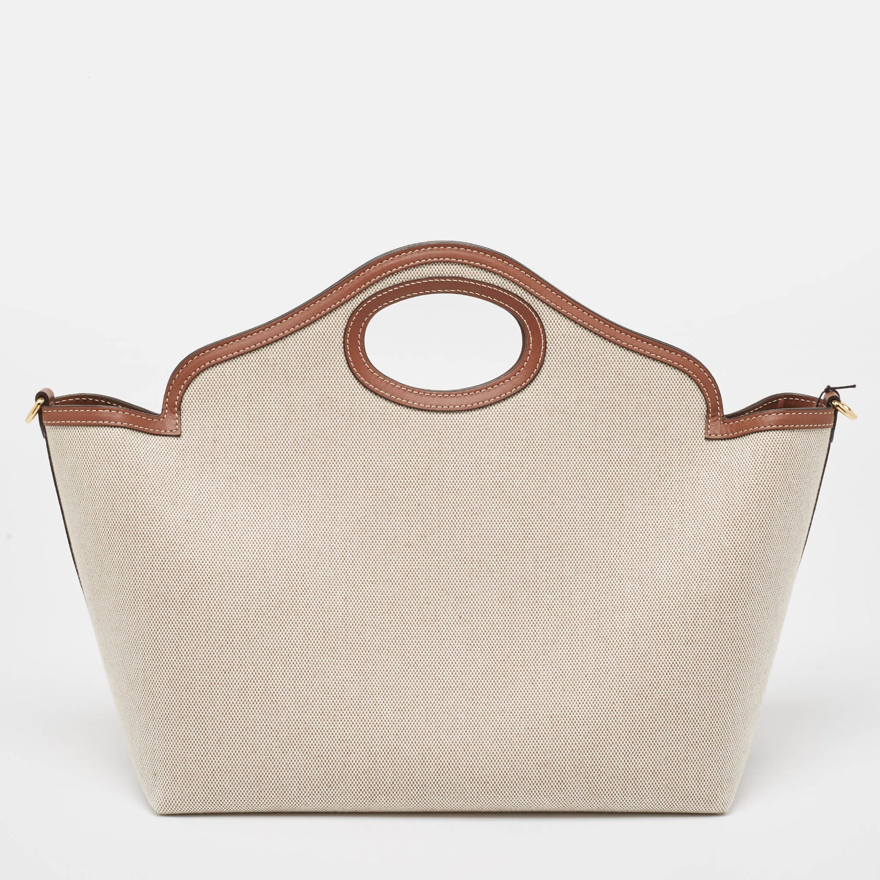 BURBERRY Beige/Brown Canvas and Leather Small Soft Pocket Tote