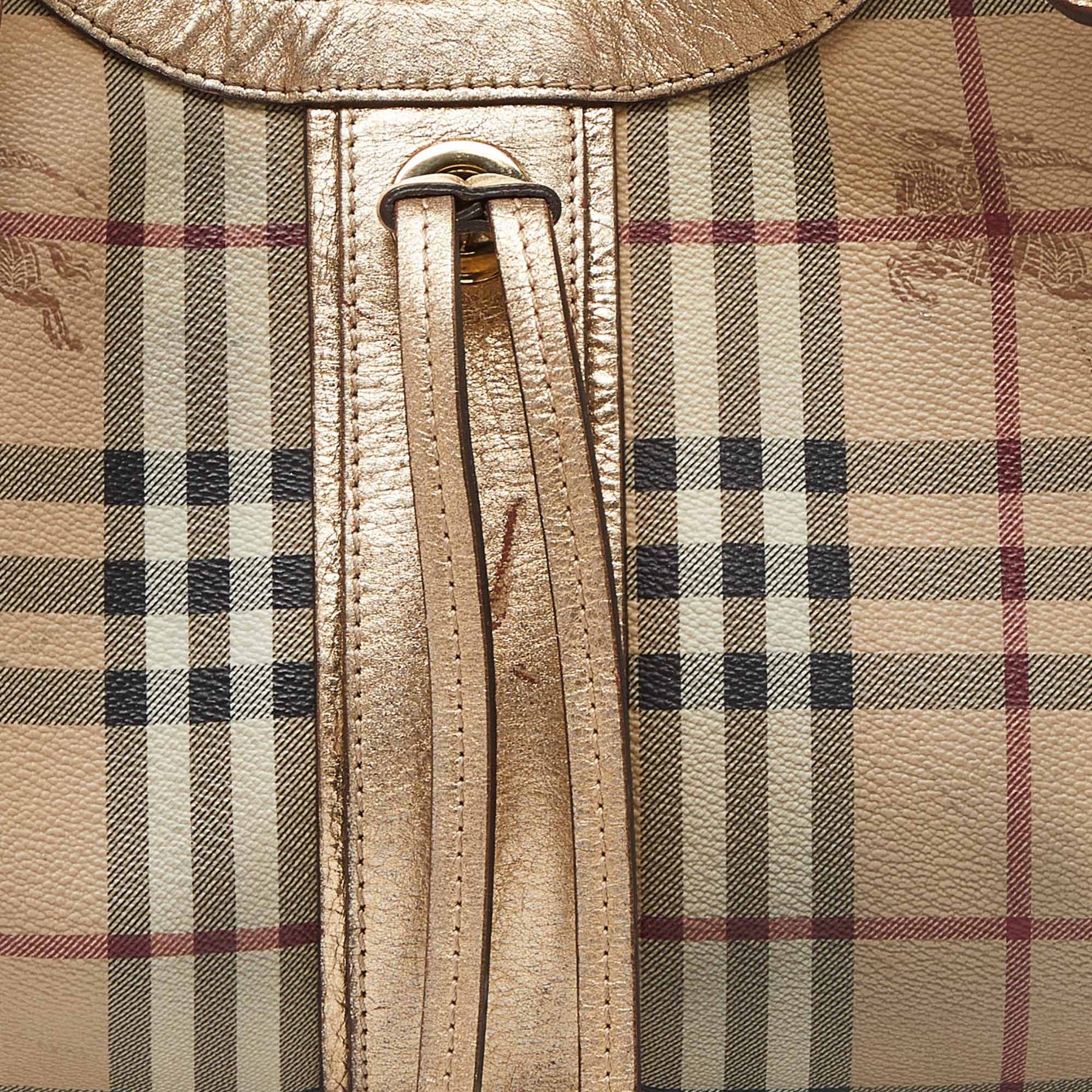 BURBERRY Beige/Gold Haymarket Check PVC and Leather Hobo