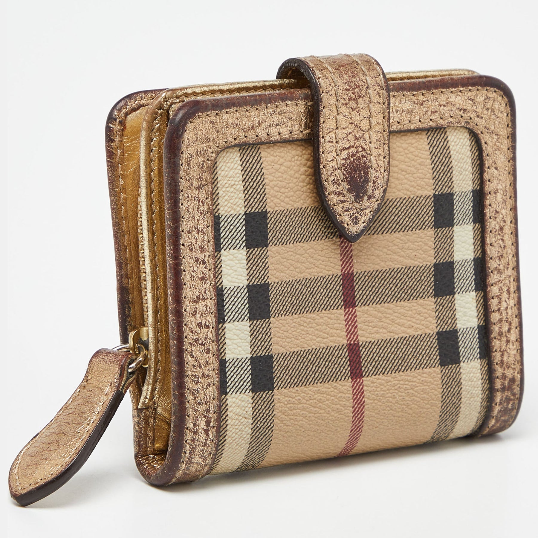BURBERRY Beige/Gold Nova Check PVC and Leather Compact Wallet