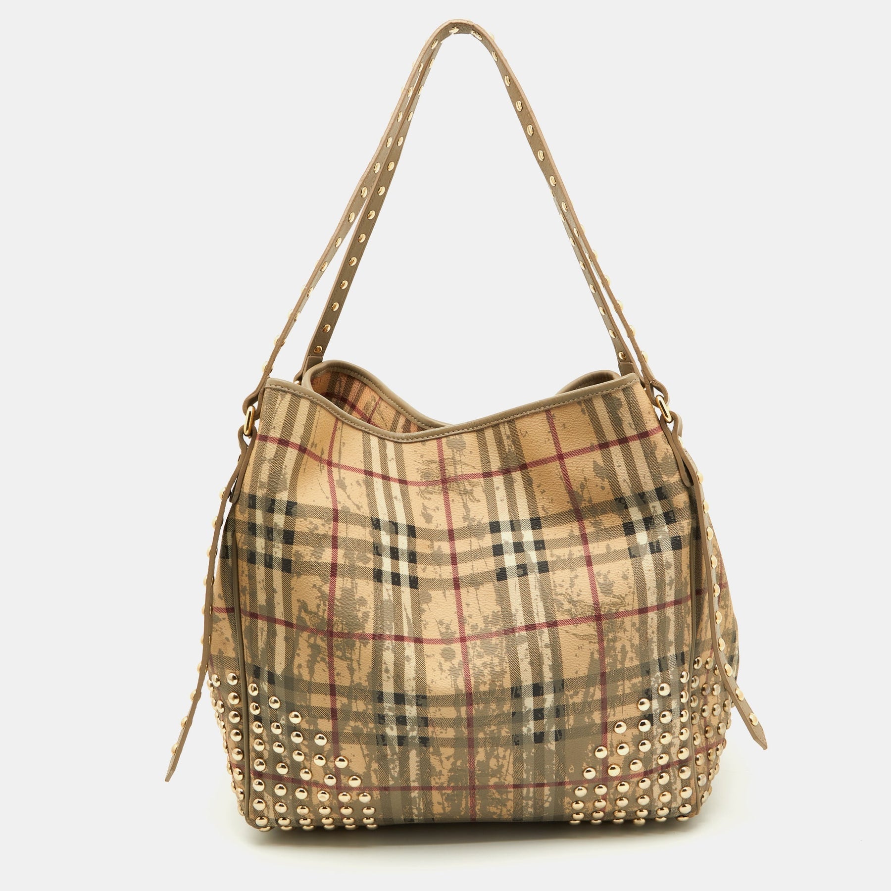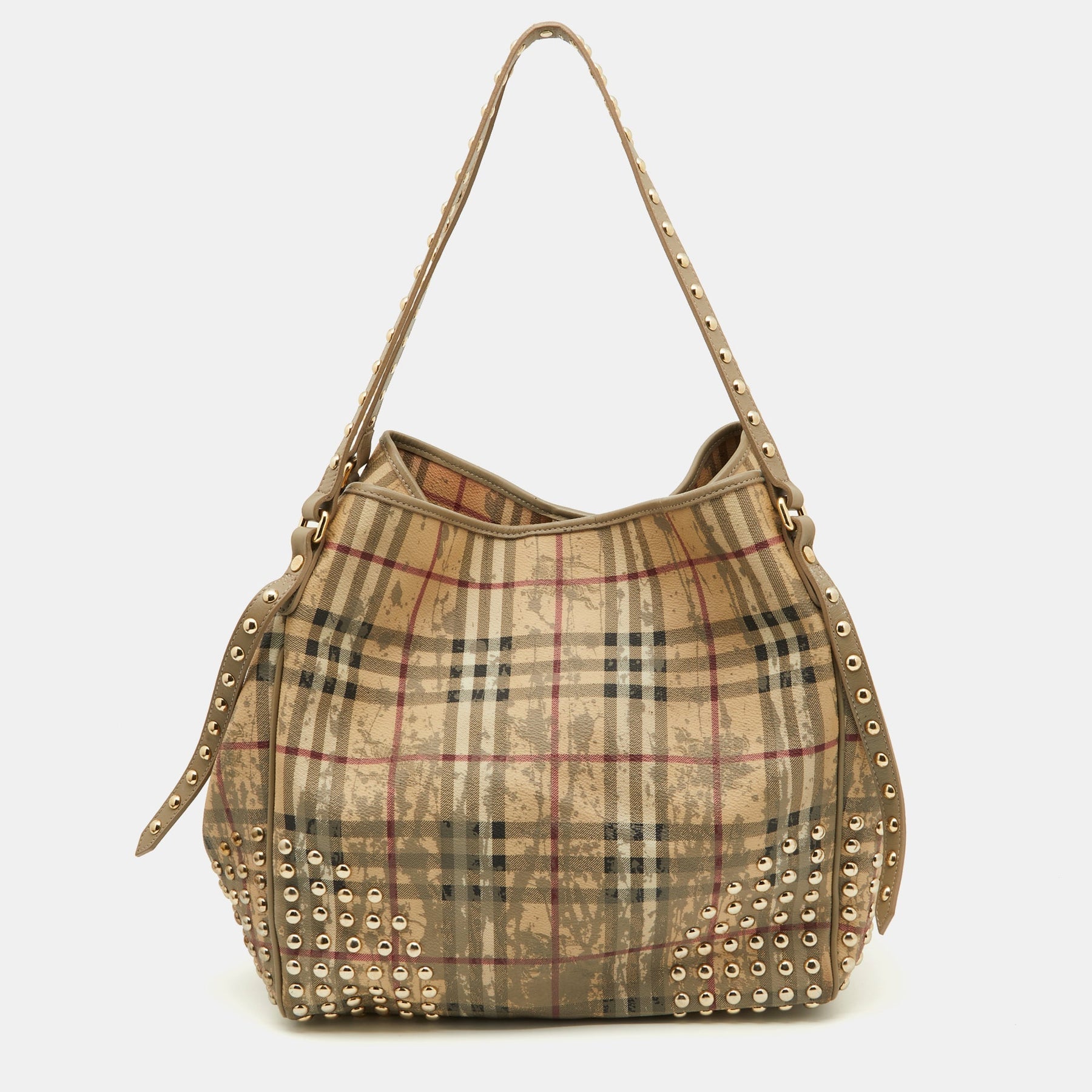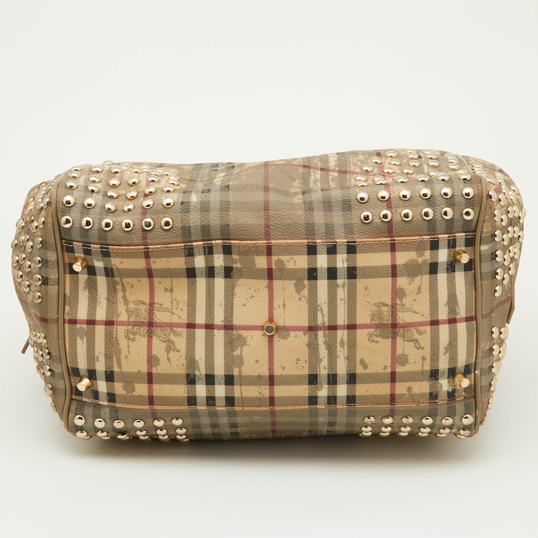 BURBERRY Beige/Grey Haymarket Check Coated Canvas And Leather Studded Special Edition Canterbury Tote