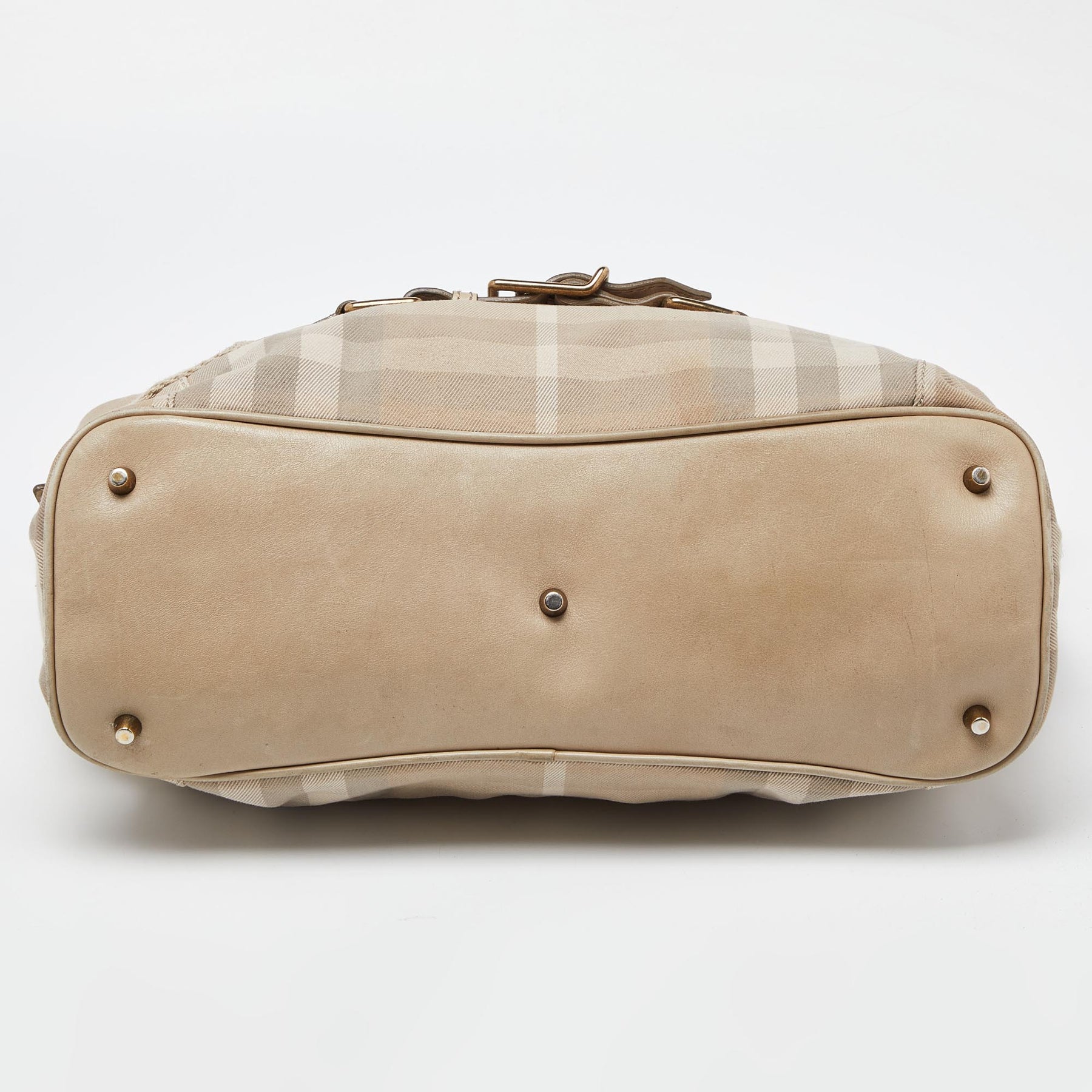 BURBERRY Beige House Check Canvas and Leather Large Parsons Bag