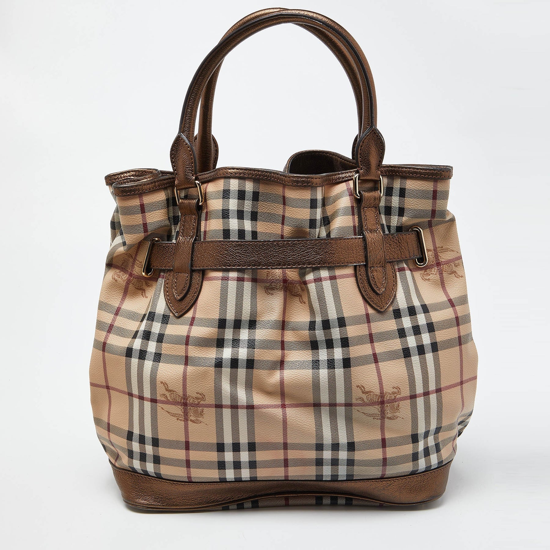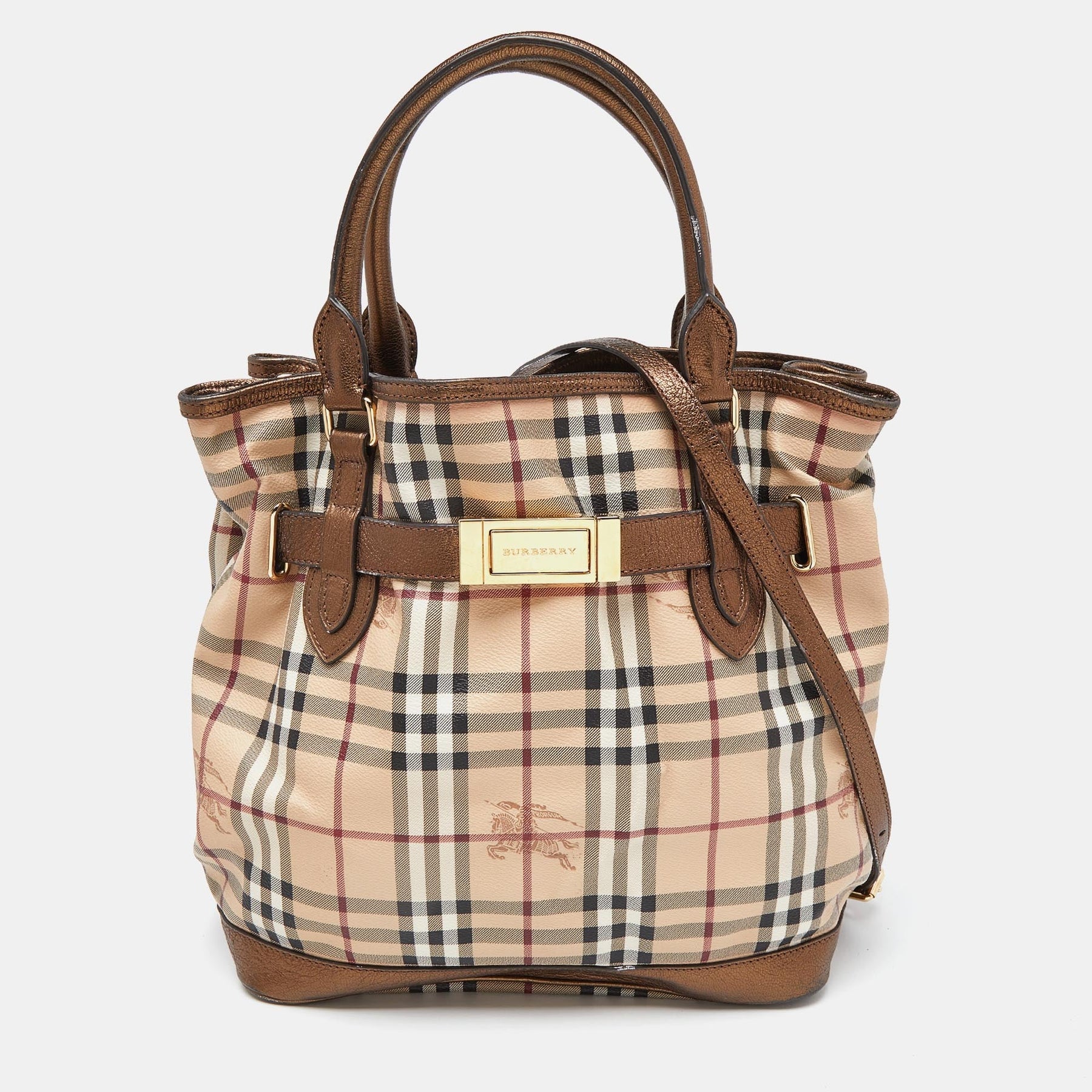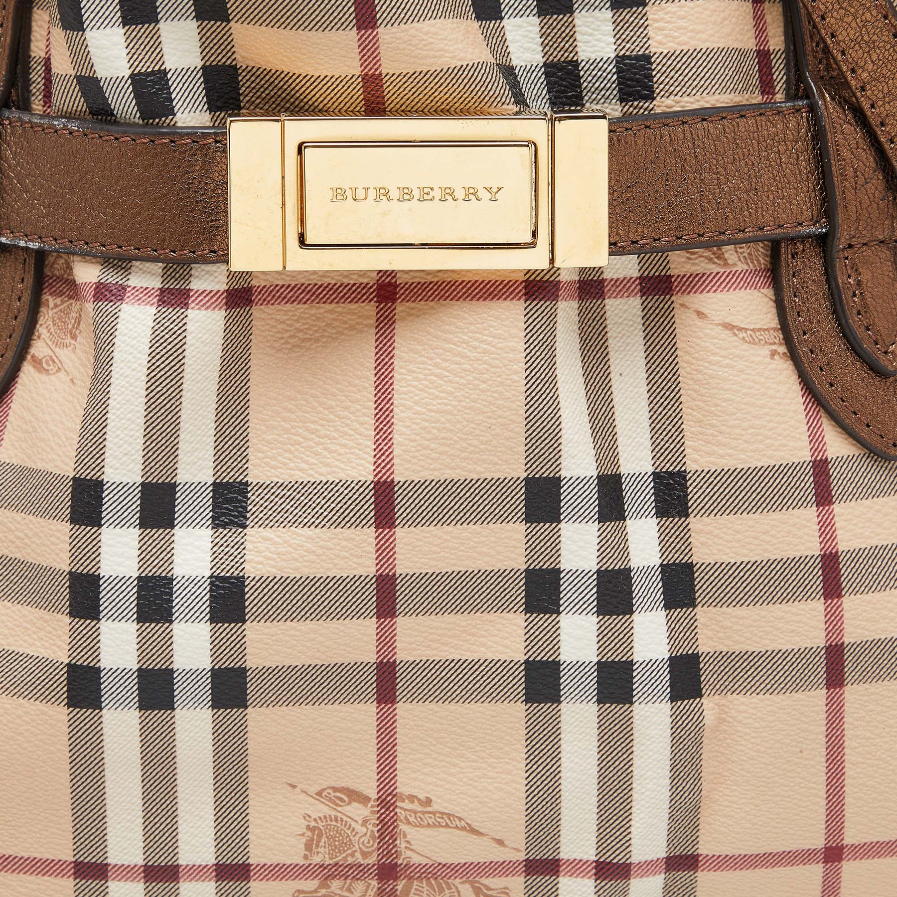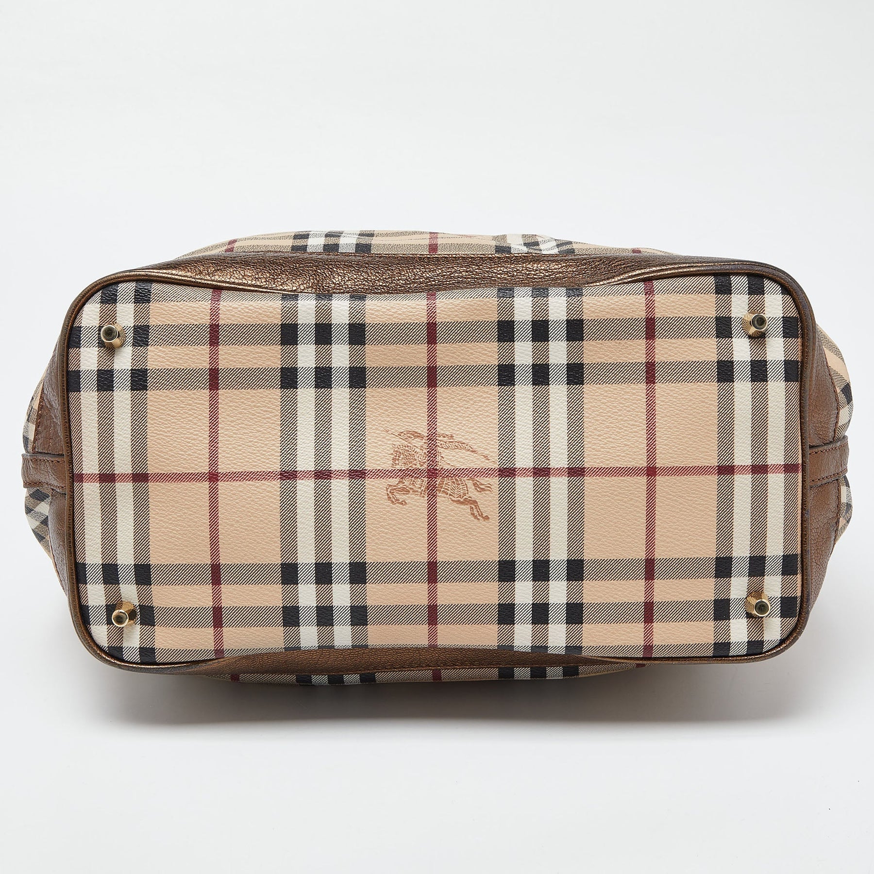 BURBERRY Beige/Metallic Haymarket Check Canvas and Leather Medium Golderton Tote