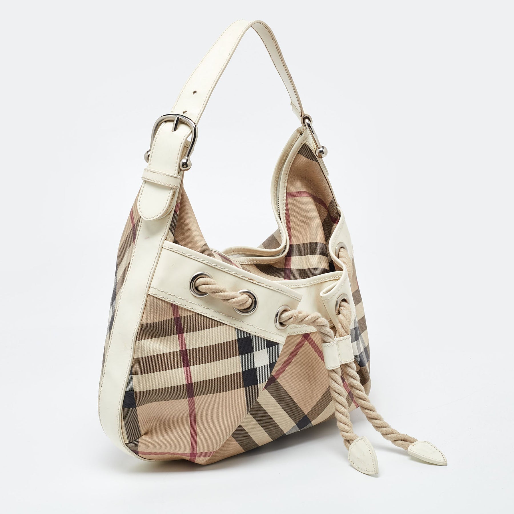 BURBERRY Beige/Off White Nova Check PVC and Patent Leather Hobo