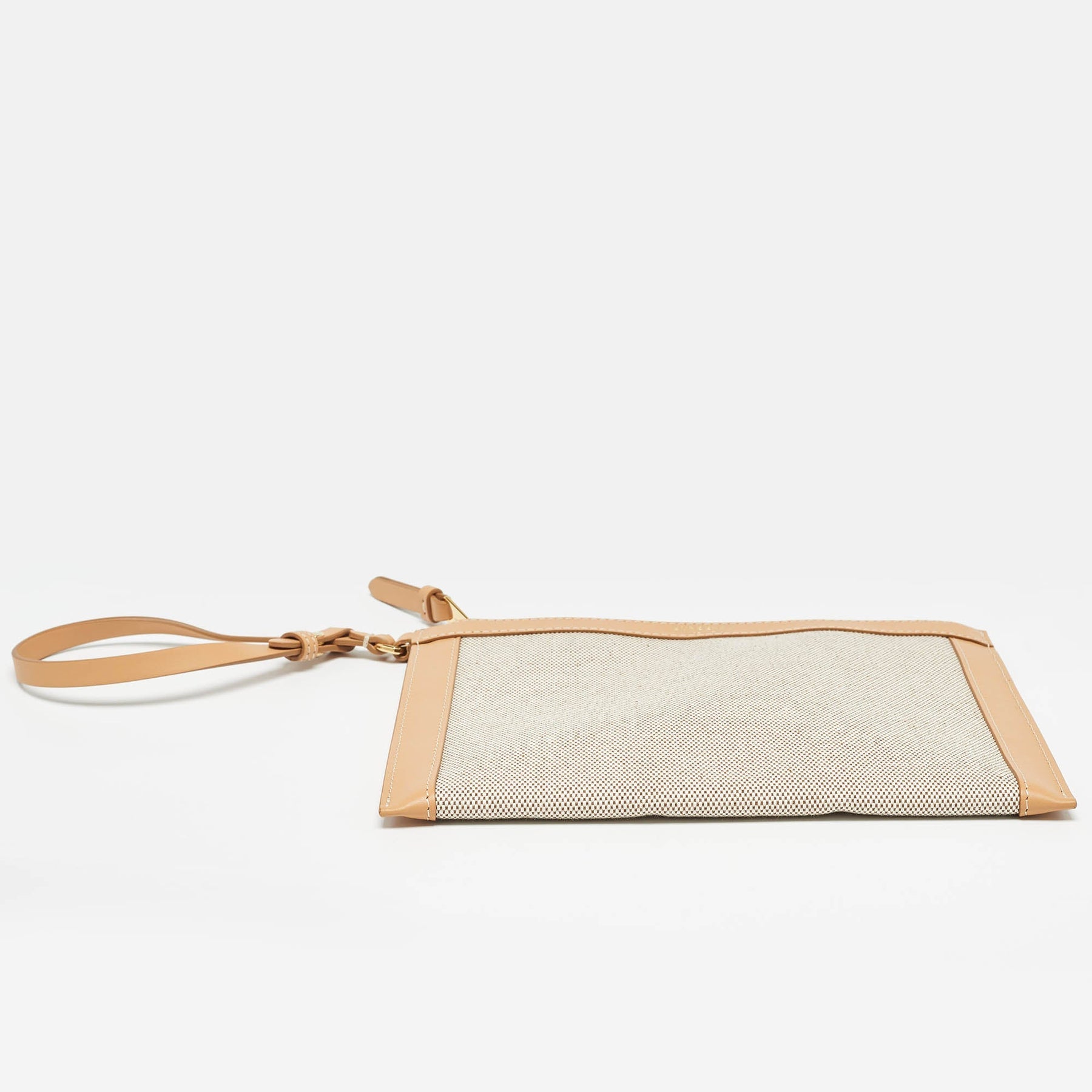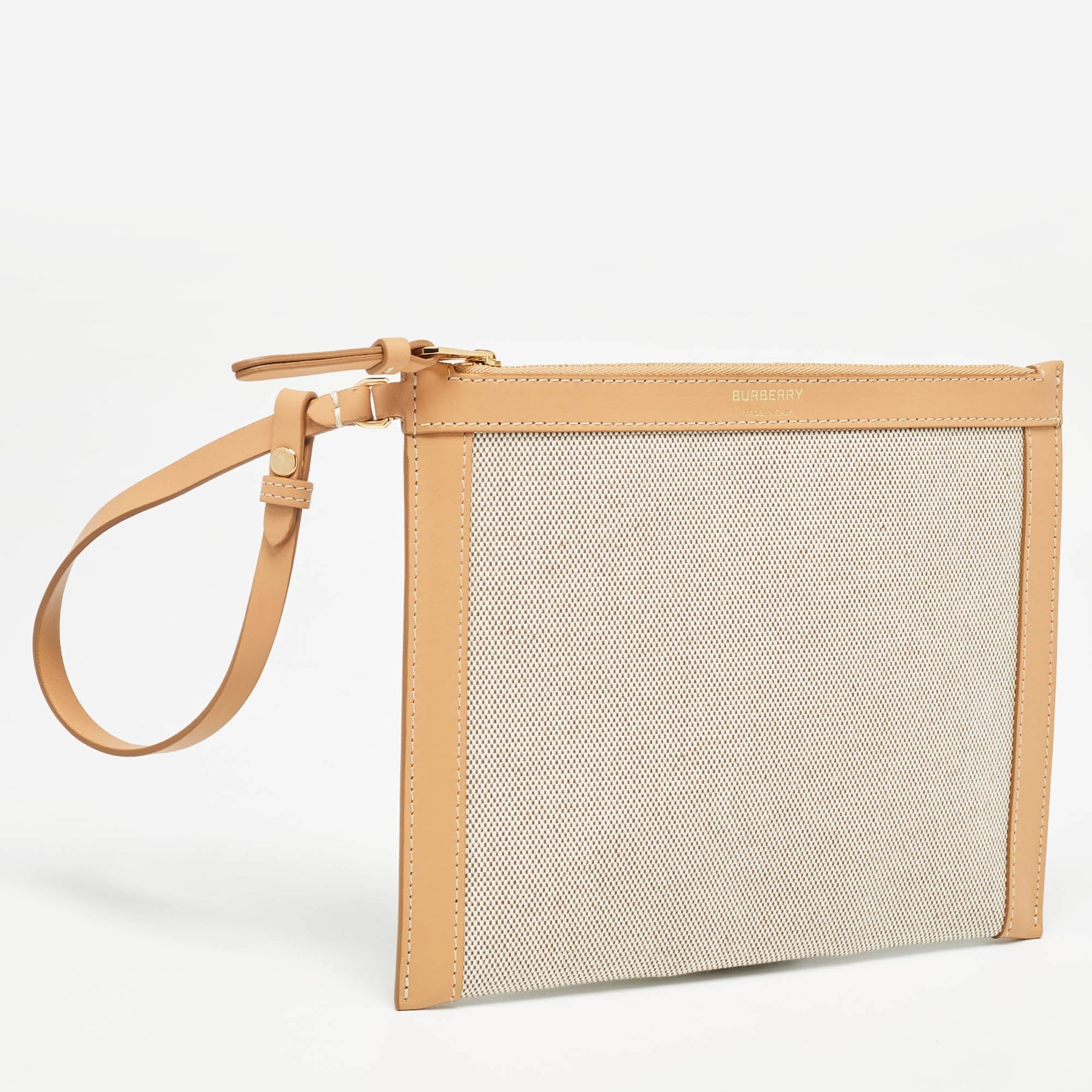 BURBERRY Beige/Tan Canvas and Leather Wristlet Pouch
