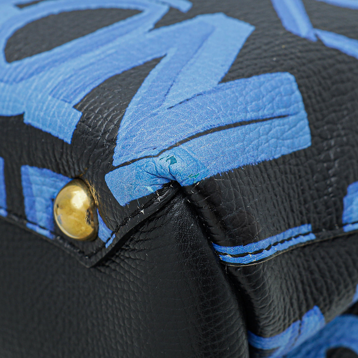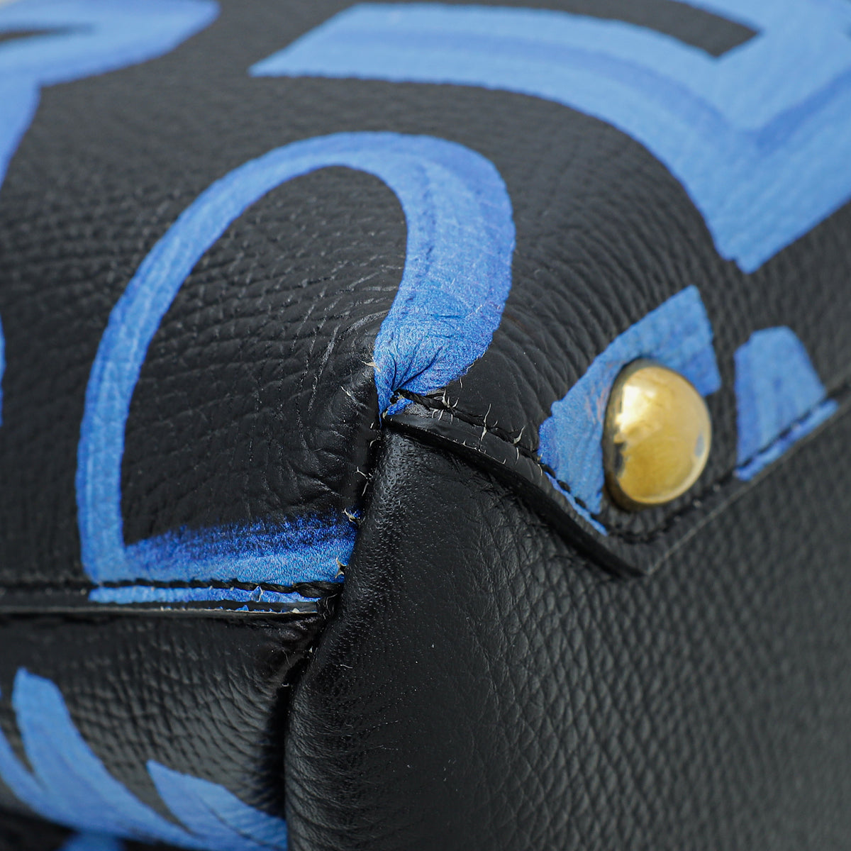 • Material: Black Calfskin Leather with Blue Graffiti Print