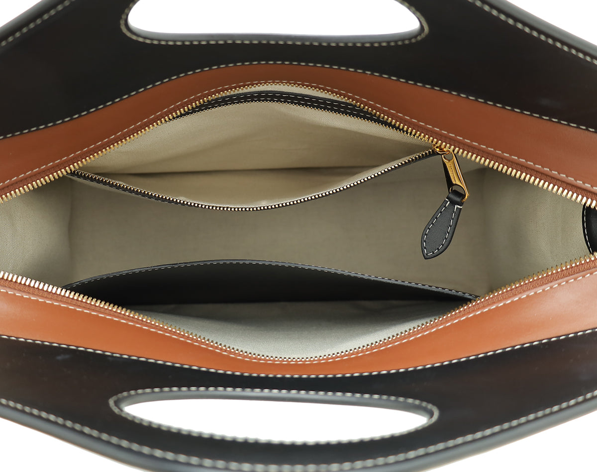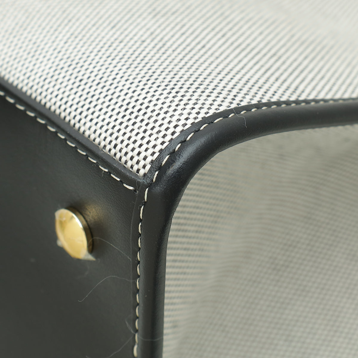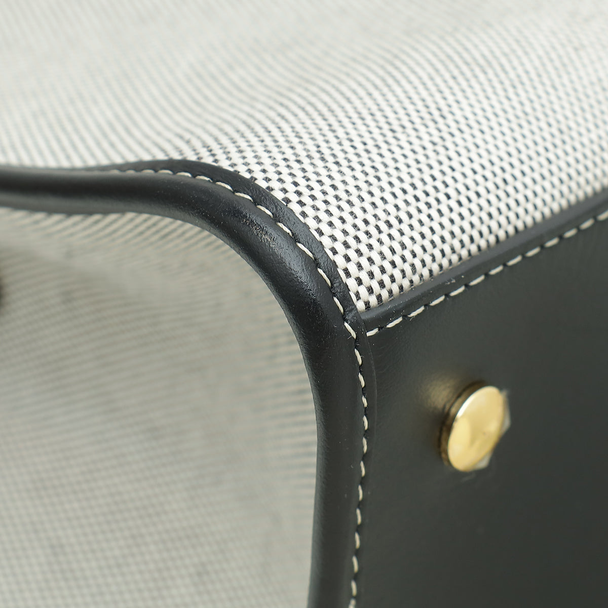 - Material: Black/White Canvas with Black Smooth Calf Leather Trim