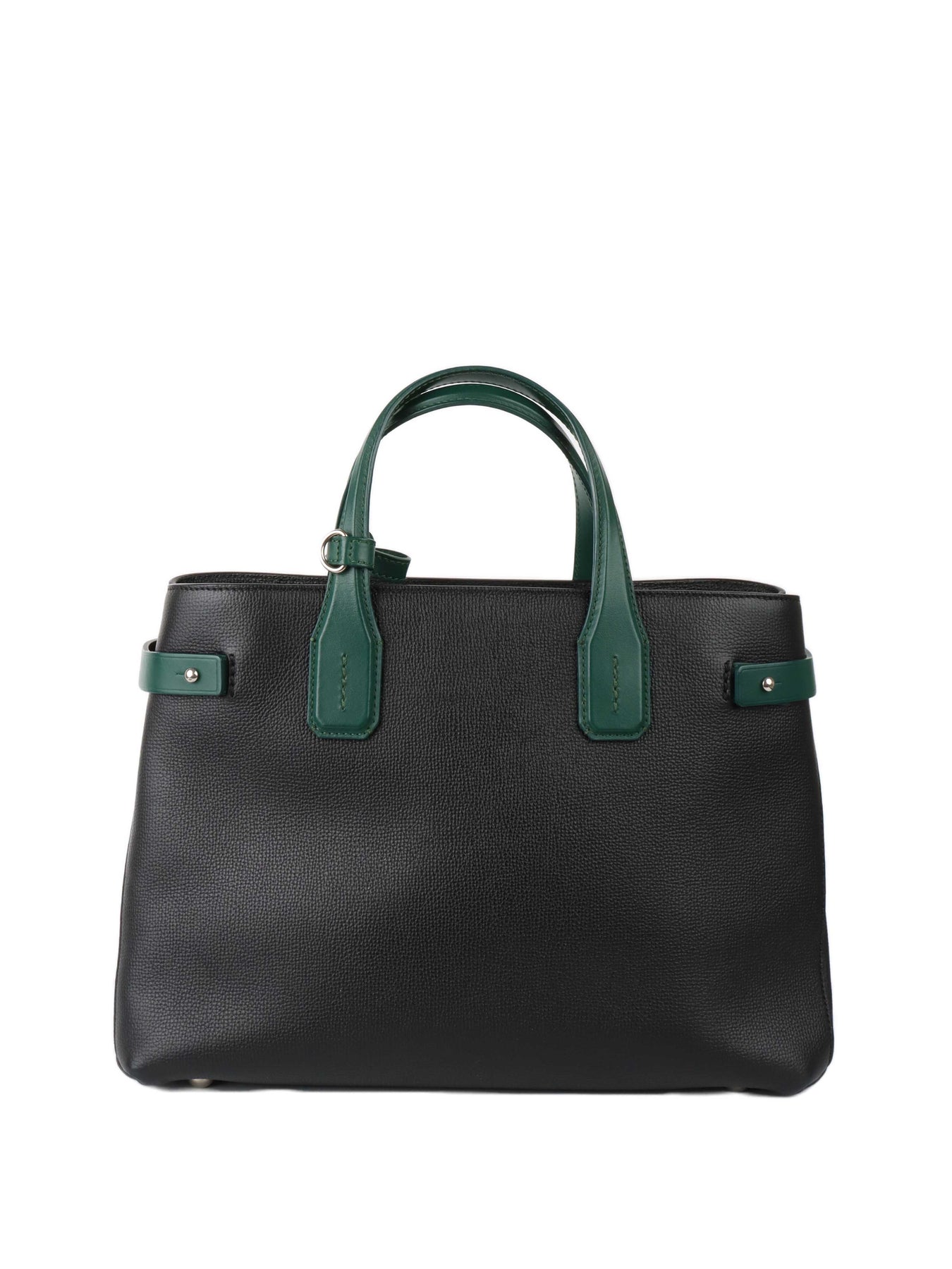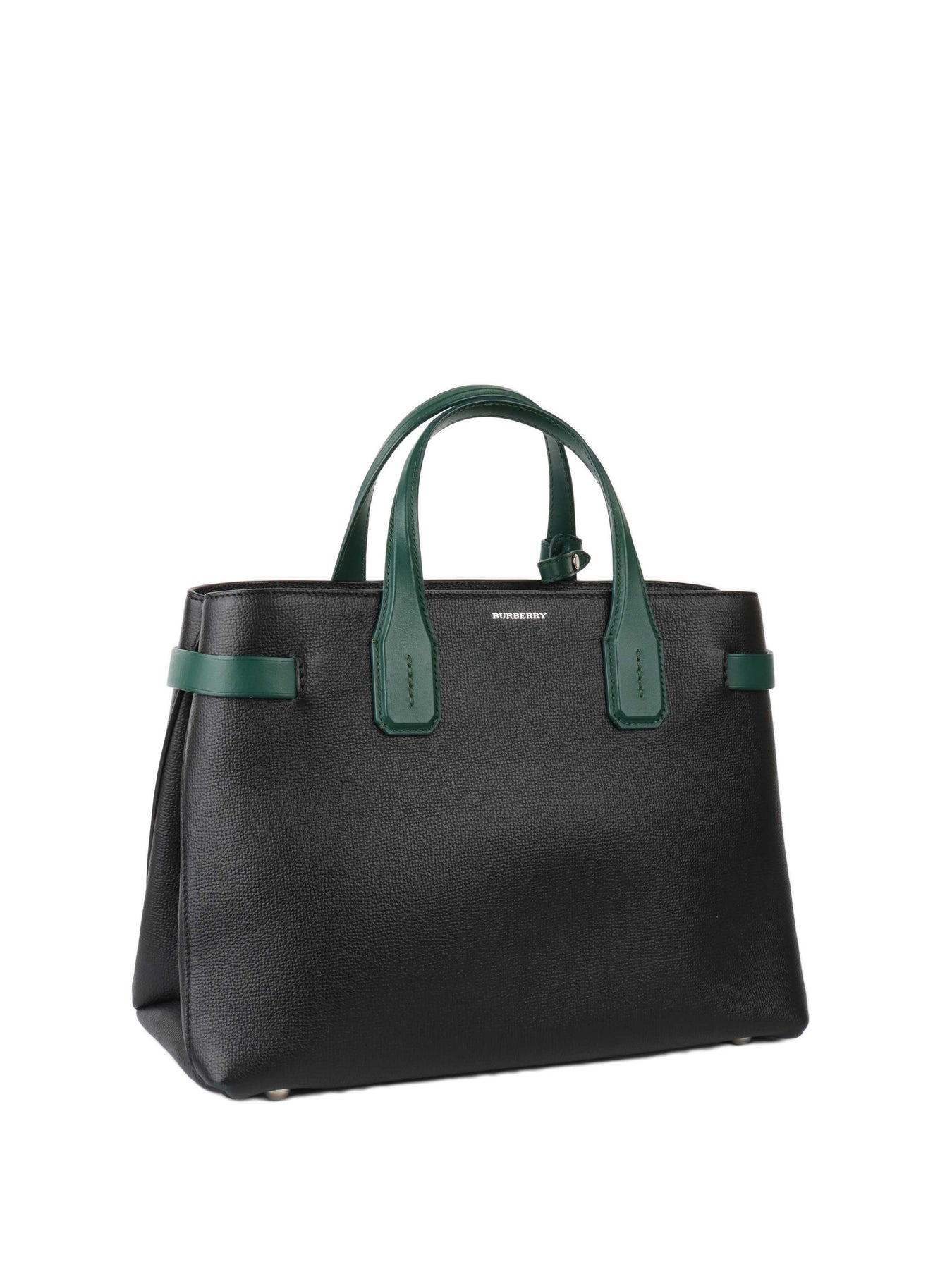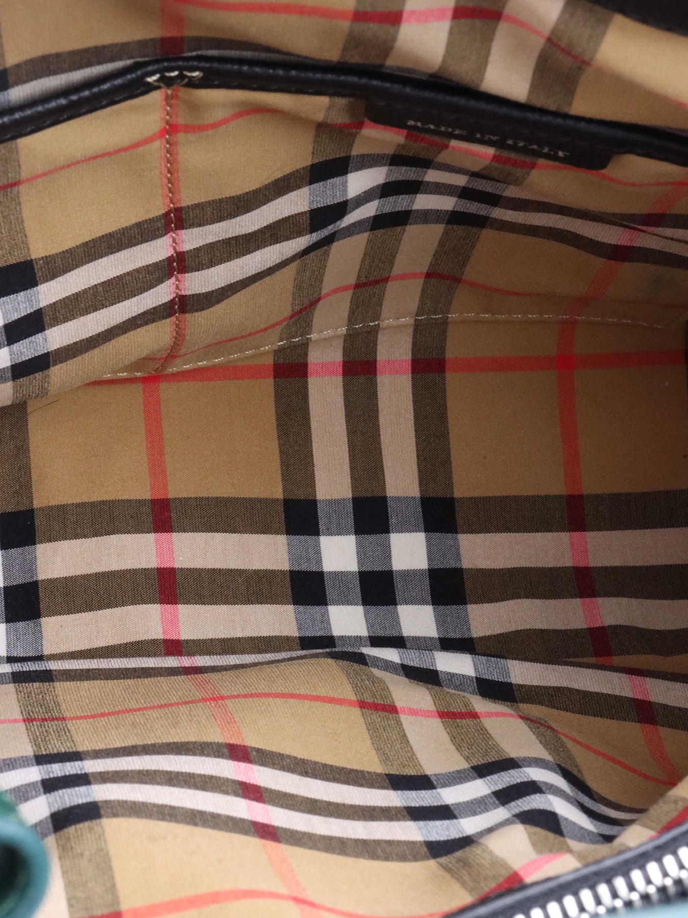 Description : A gorgeous leather tote from Burberry, crafted from rich black calfskin leather with green calfskin leather handles and trim, opens to two large open compartments and one zipped compartment, perfect to carry all your every day necessities.