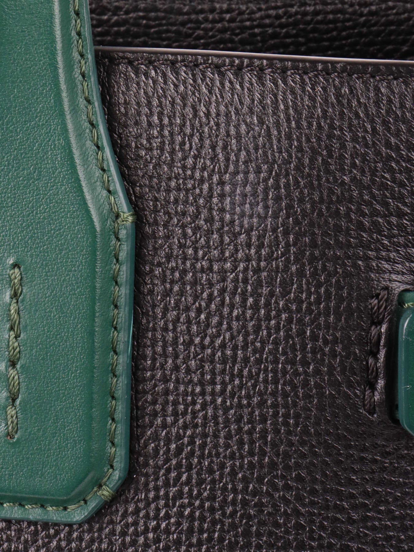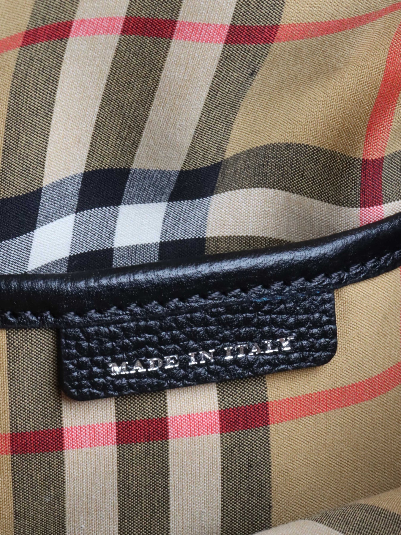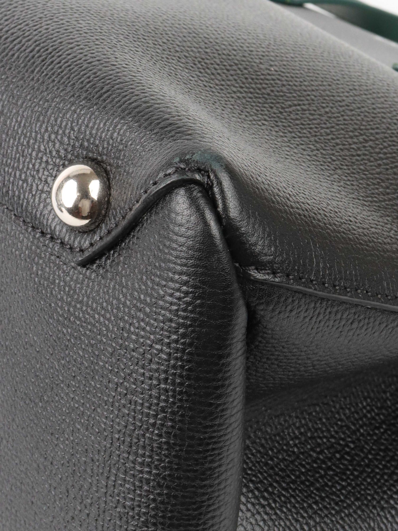 Description : A gorgeous leather tote from Burberry, crafted from rich black calfskin leather with green calfskin leather handles and trim, opens to two large open compartments and one zipped compartment, perfect to carry all your every day necessities.