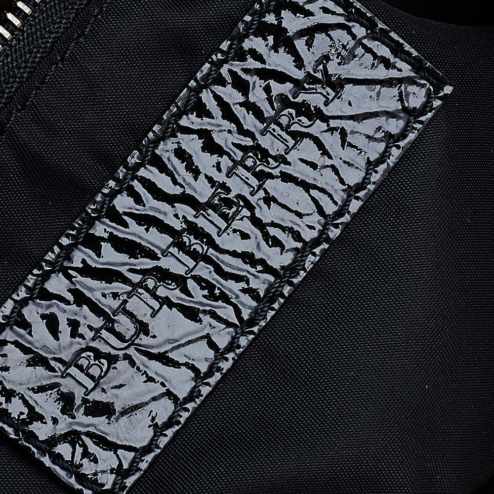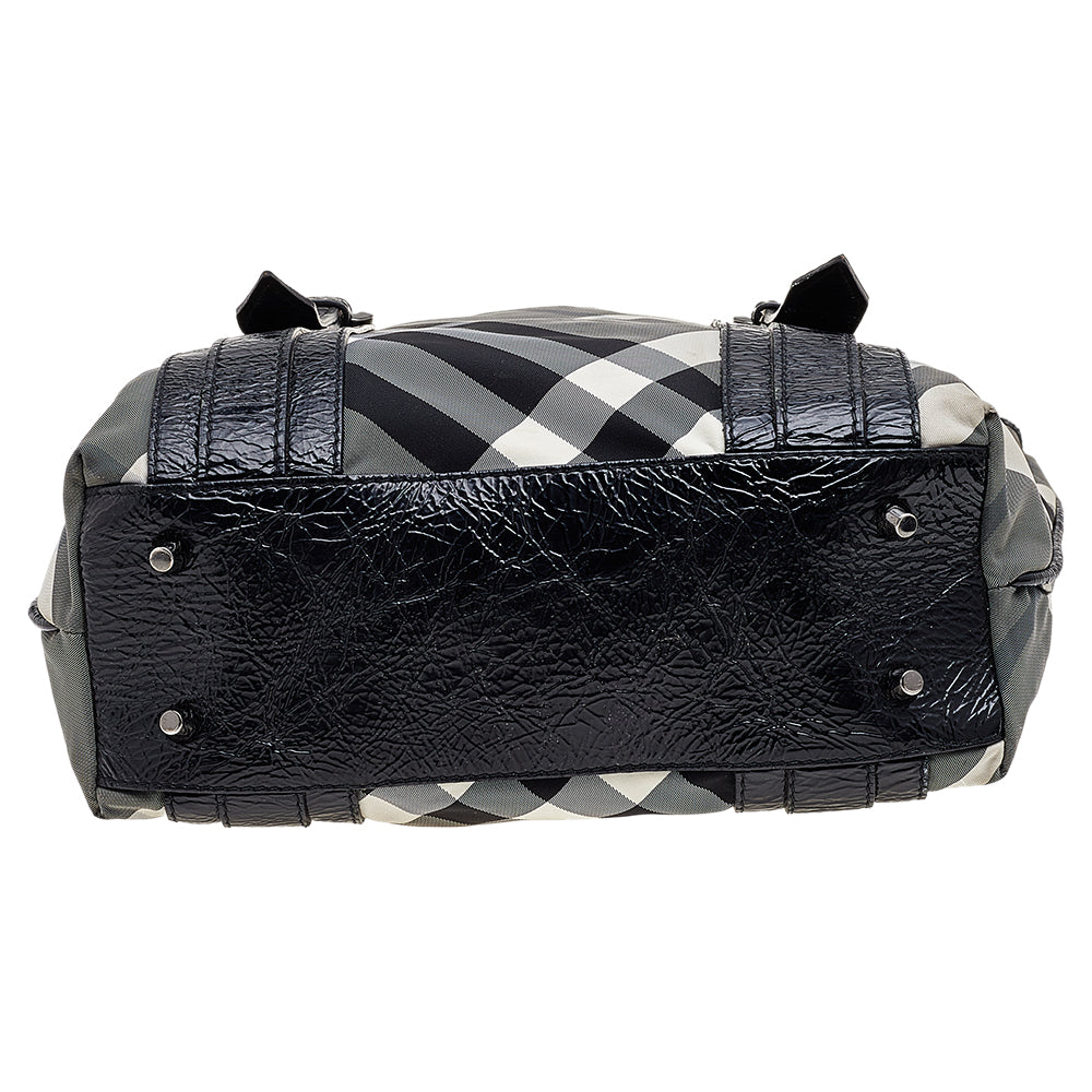 Burberry Black Beat Check Nylon And Patent Leather Lowry Tote