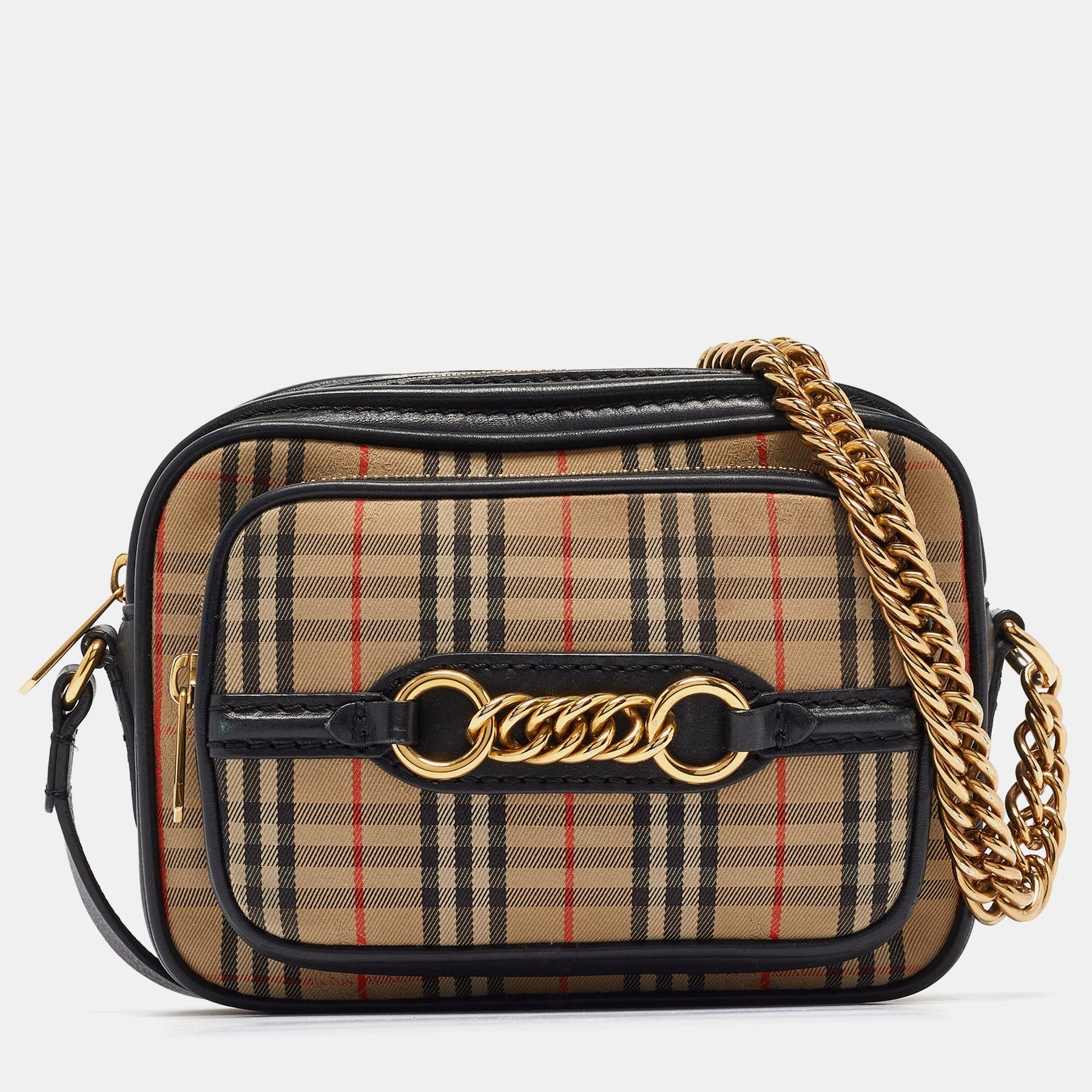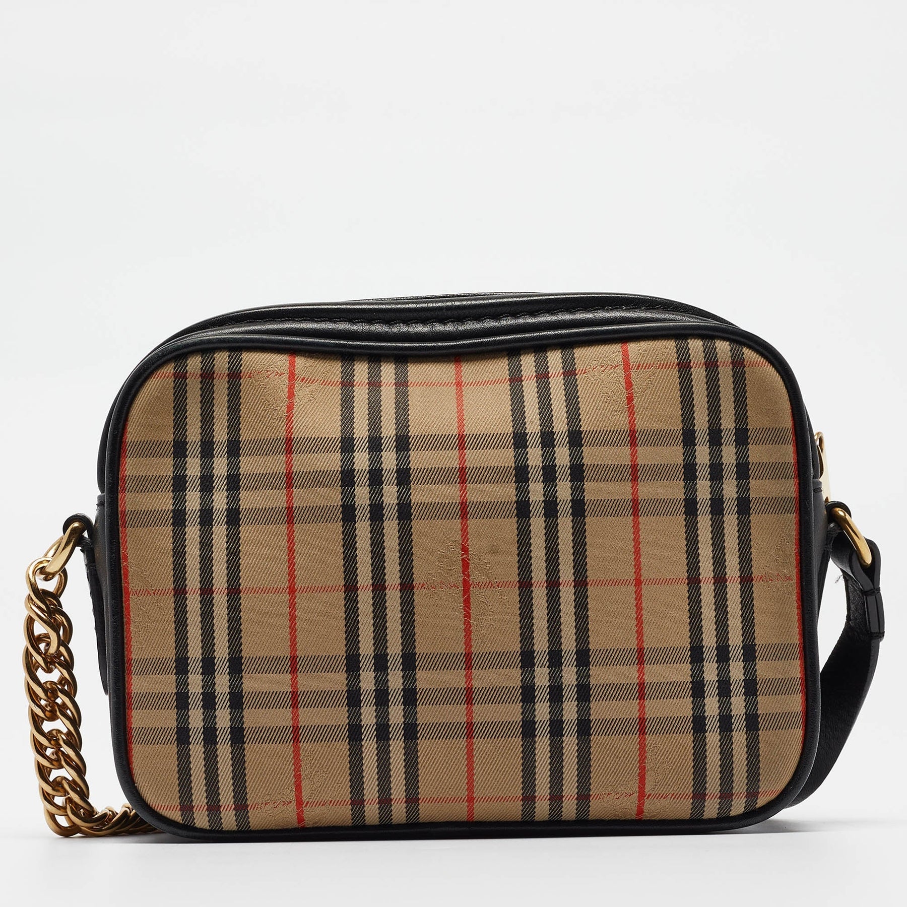 BURBERRY Black/Beige 1983 Knight Check Fabric and Leather Link Bum Belt Bag