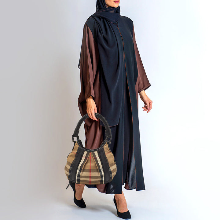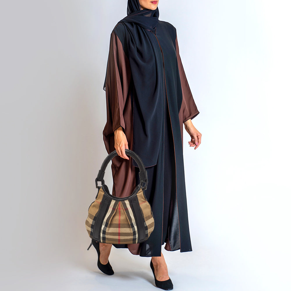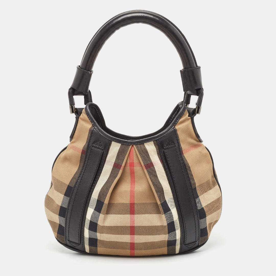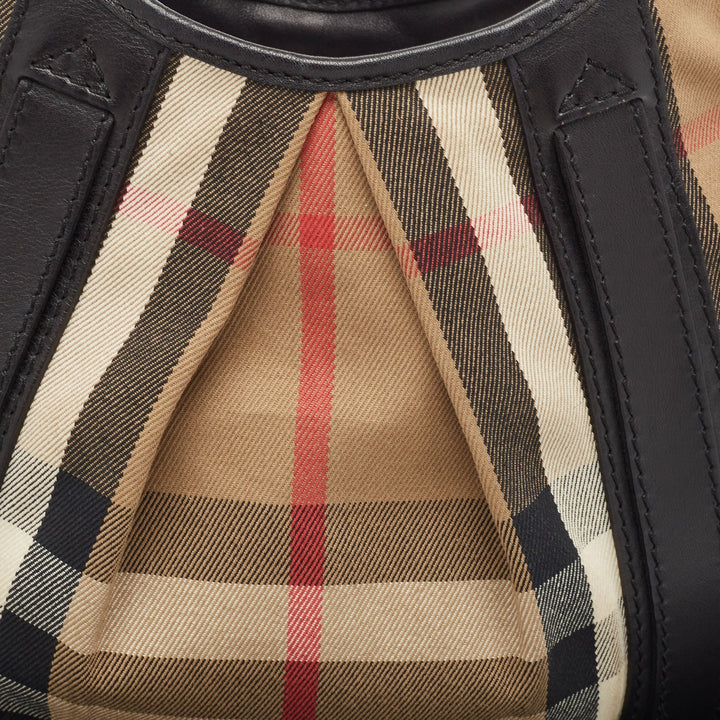 BURBERRY Black/Beige House Check Canvas and Leather Phoebe Hobo