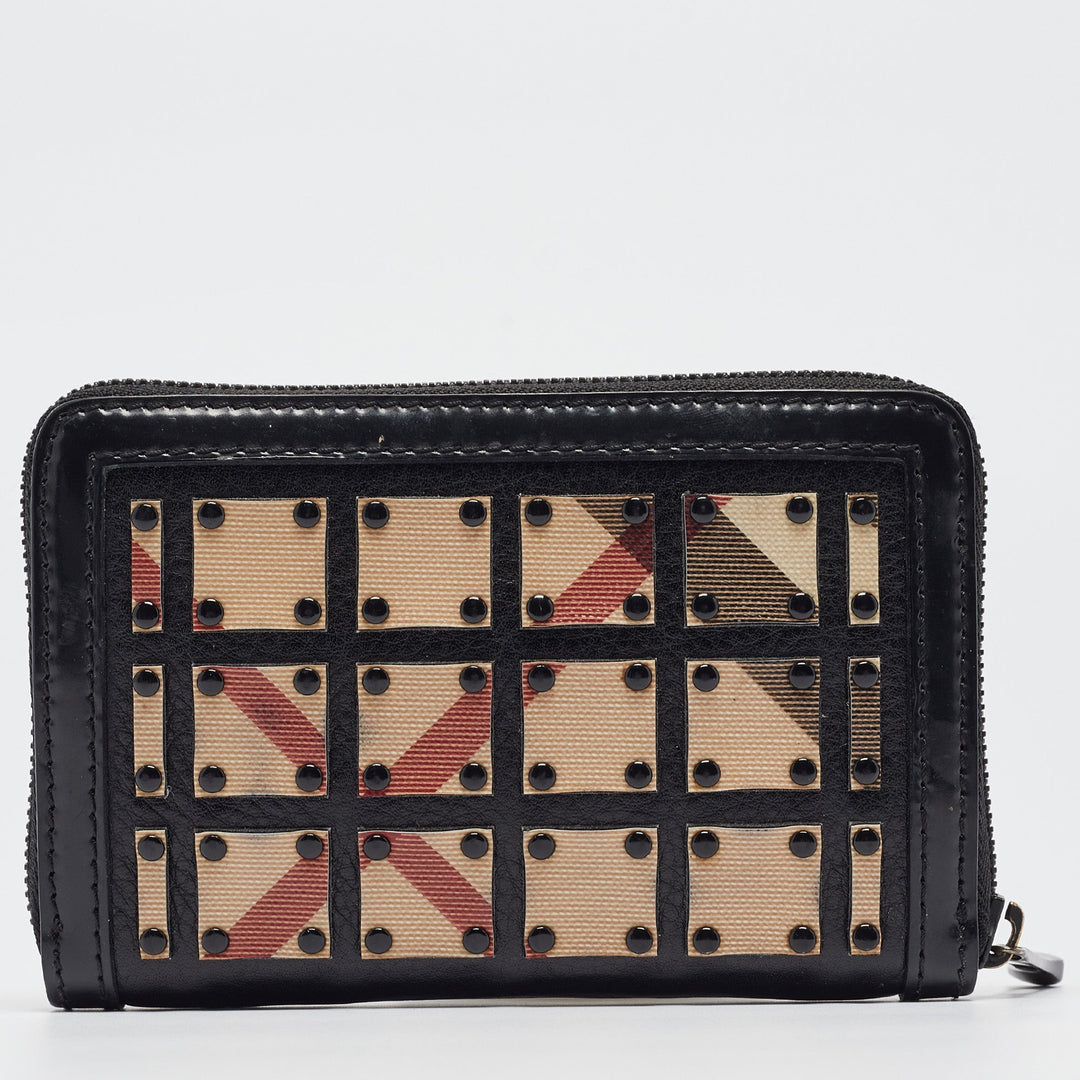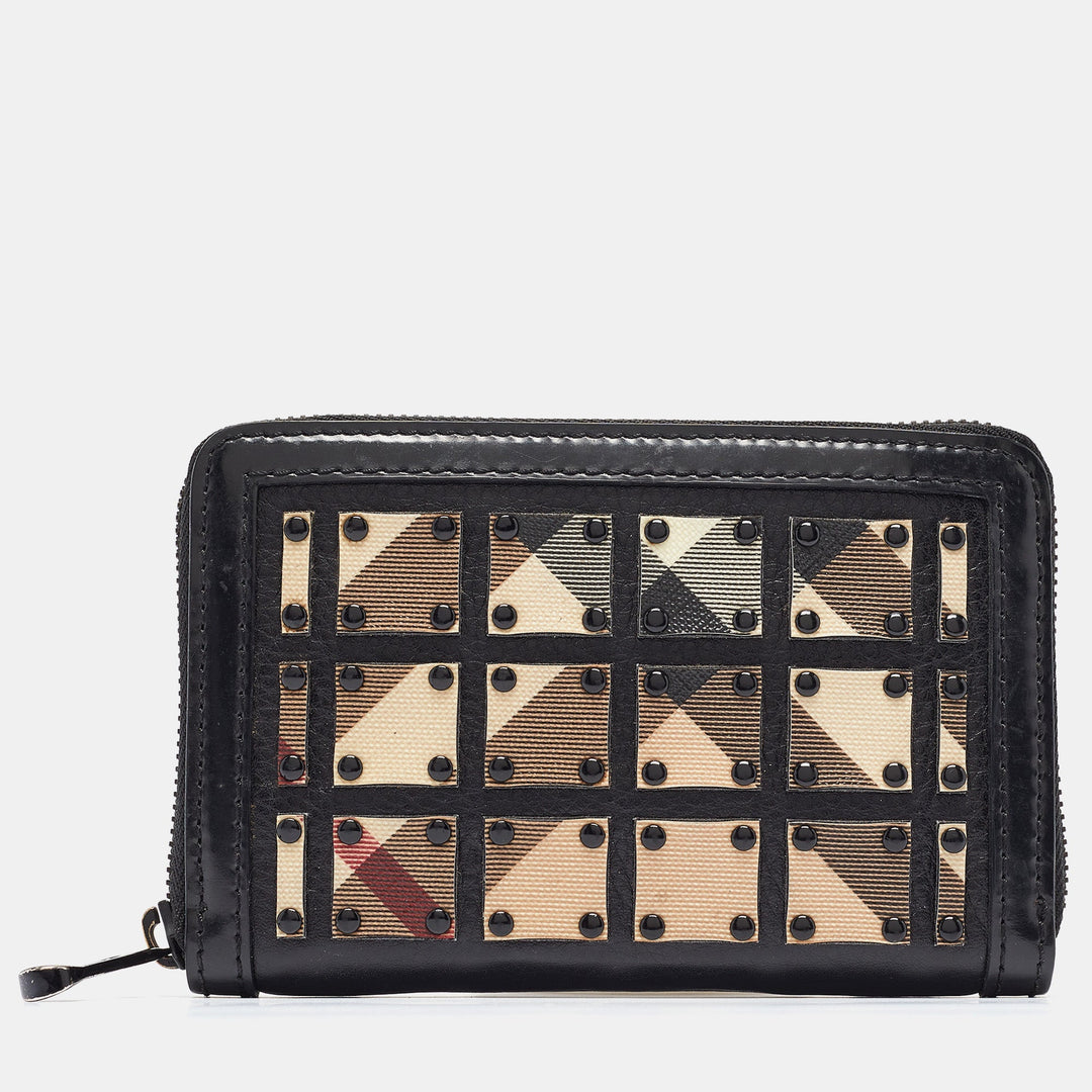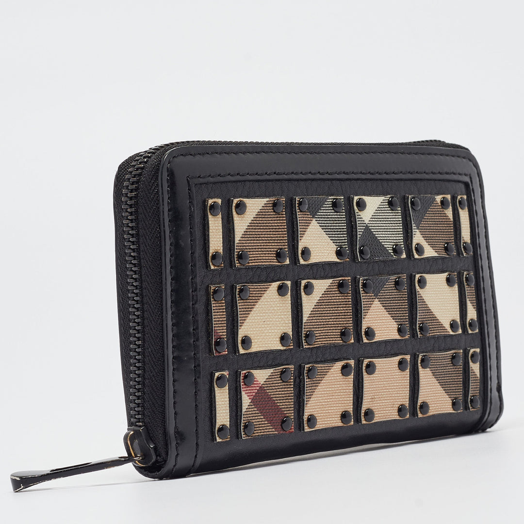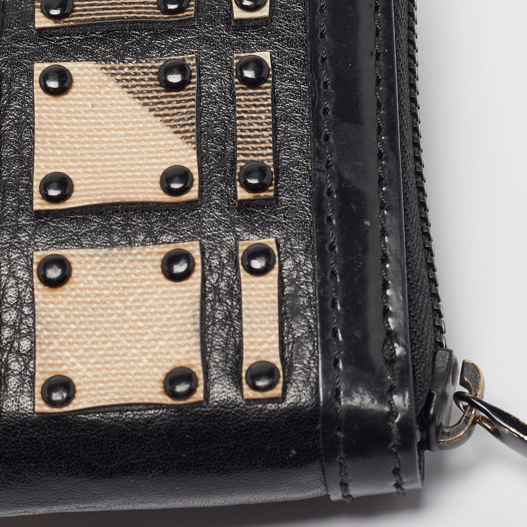 BURBERRY Black/Beige House Check PVC and Patent Leather Warrior Wallet