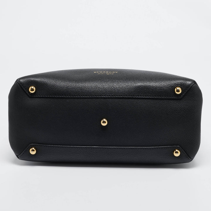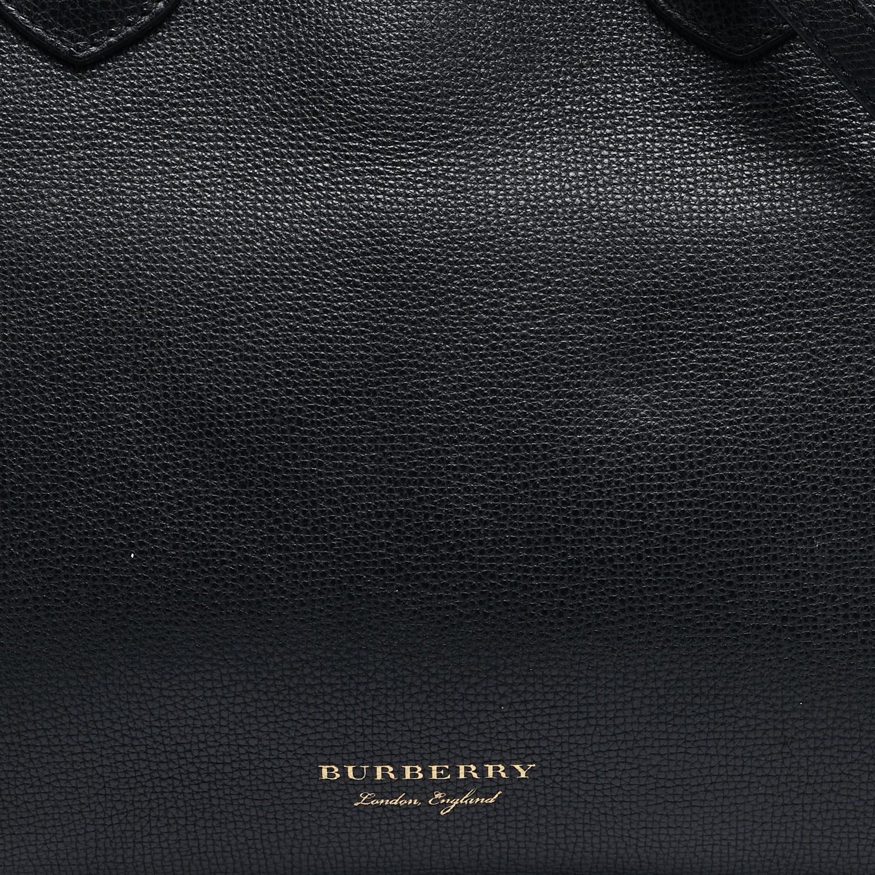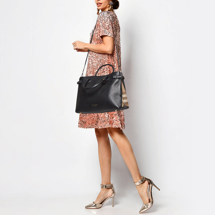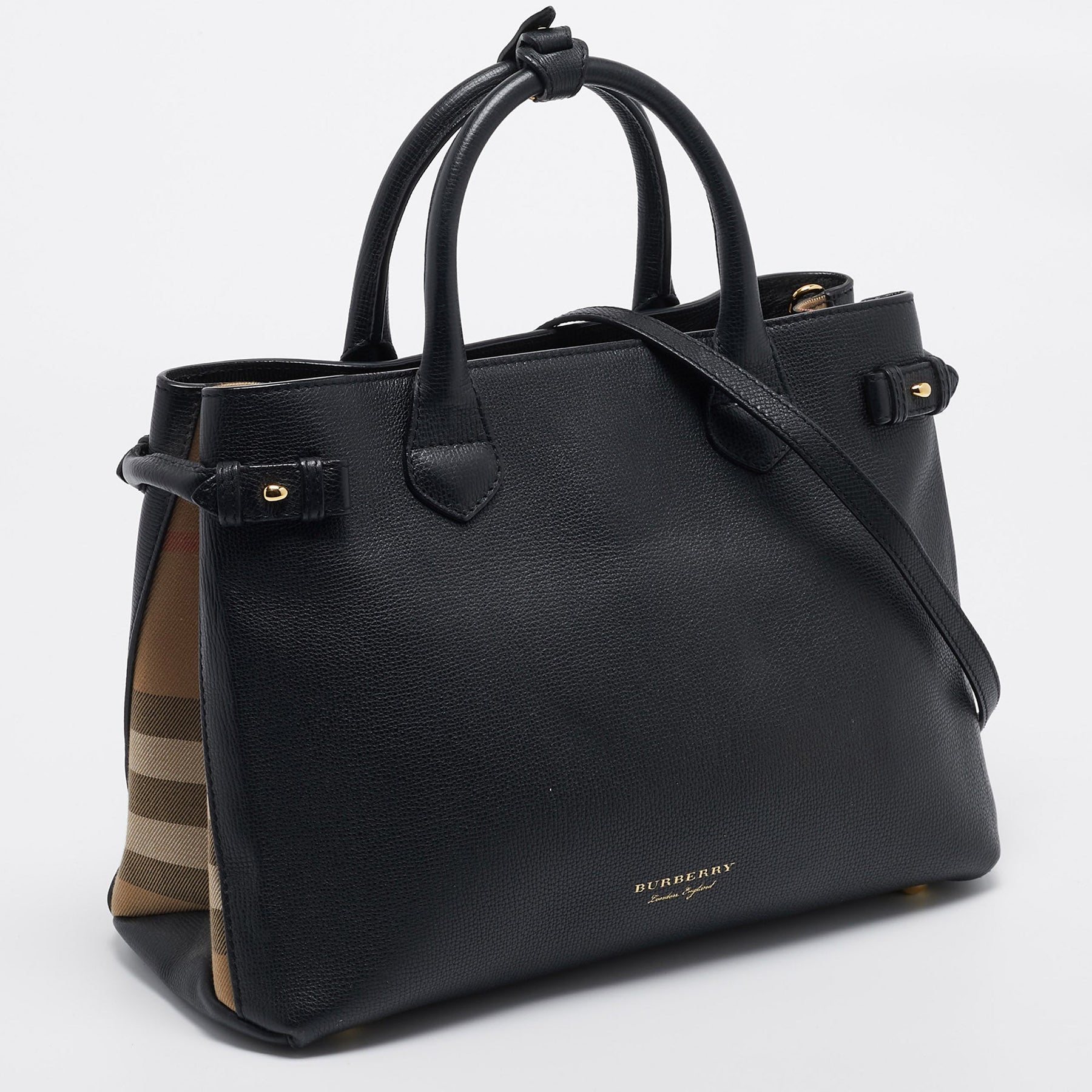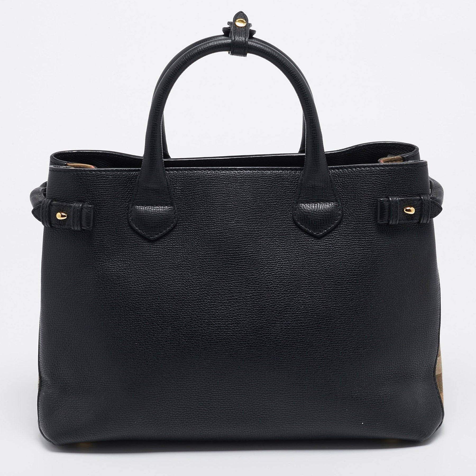 BURBERRY Black/Beige Leather and House Check Fabric Medium Banner Tote