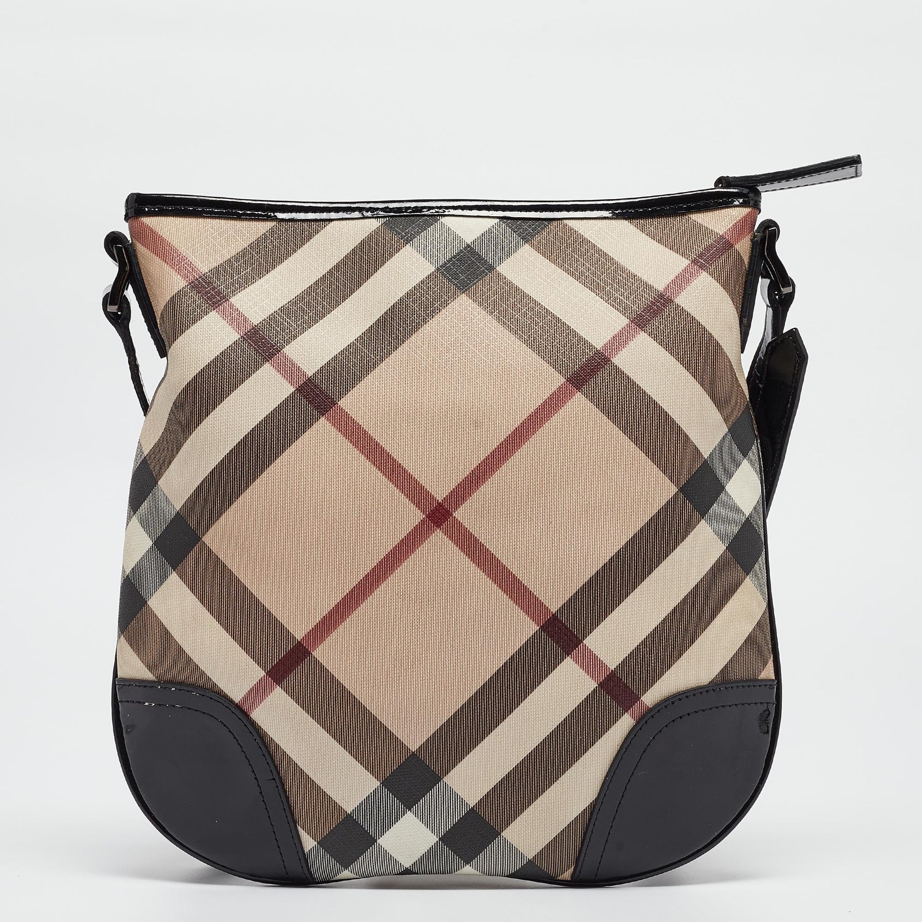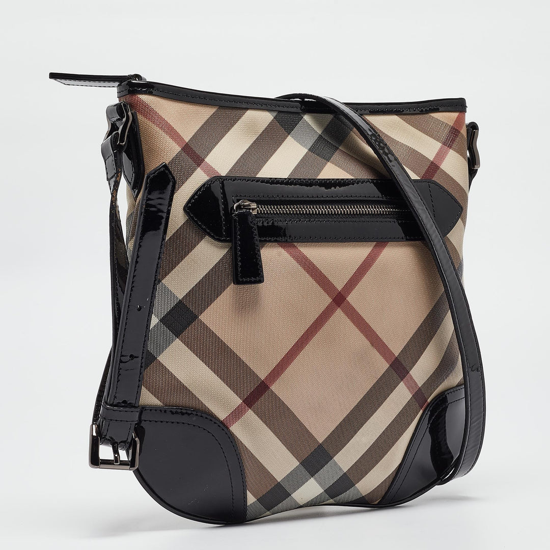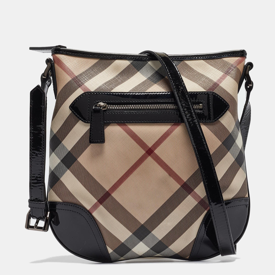 BURBERRY Black/Beige Supernova Check PVC and Patent Leather Dryden Crossbody Bag