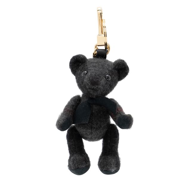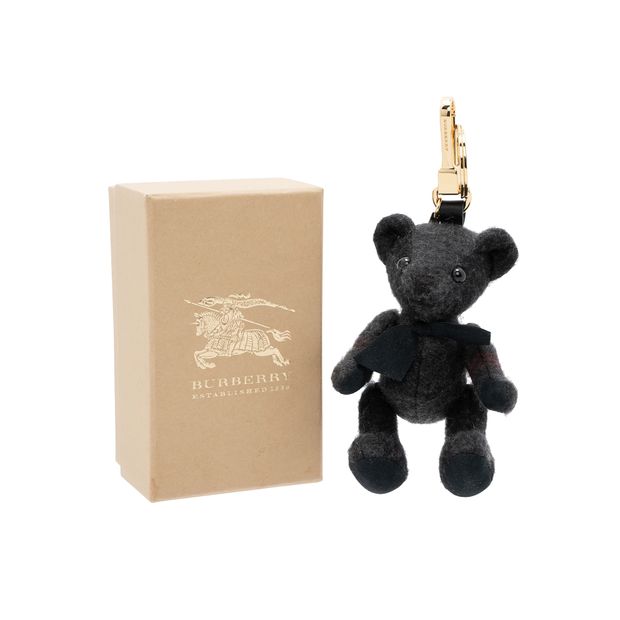 BURBERRY Black Check Cashmere Thomas Bear Bag Charm