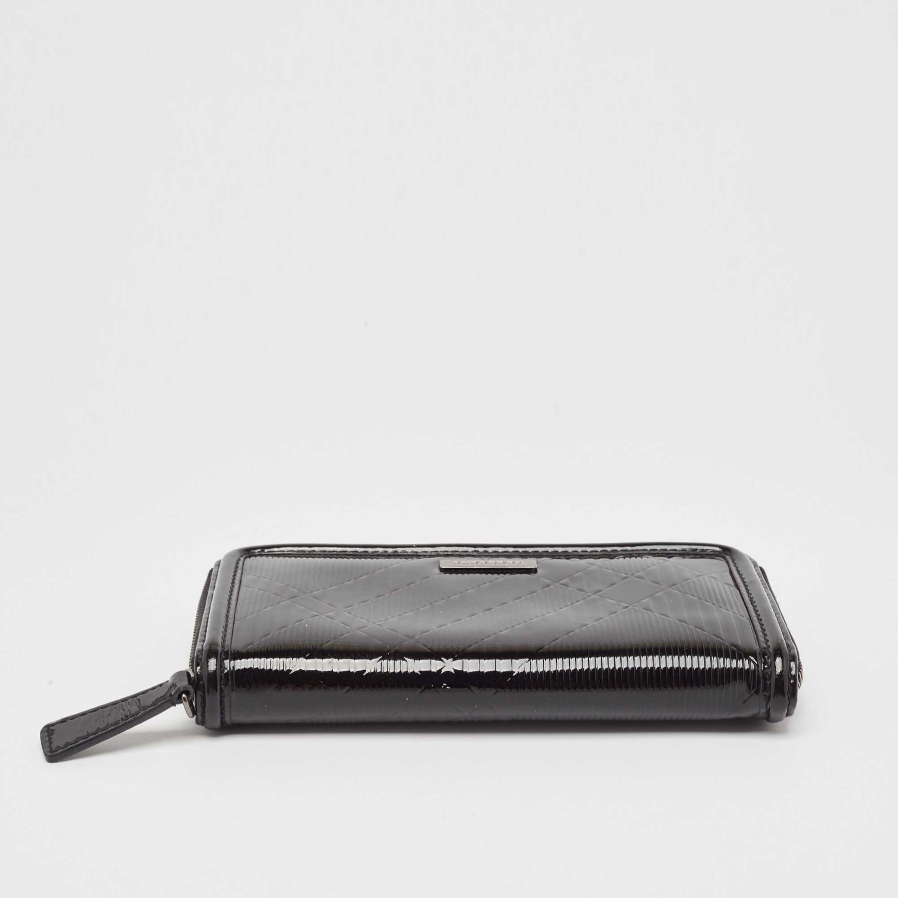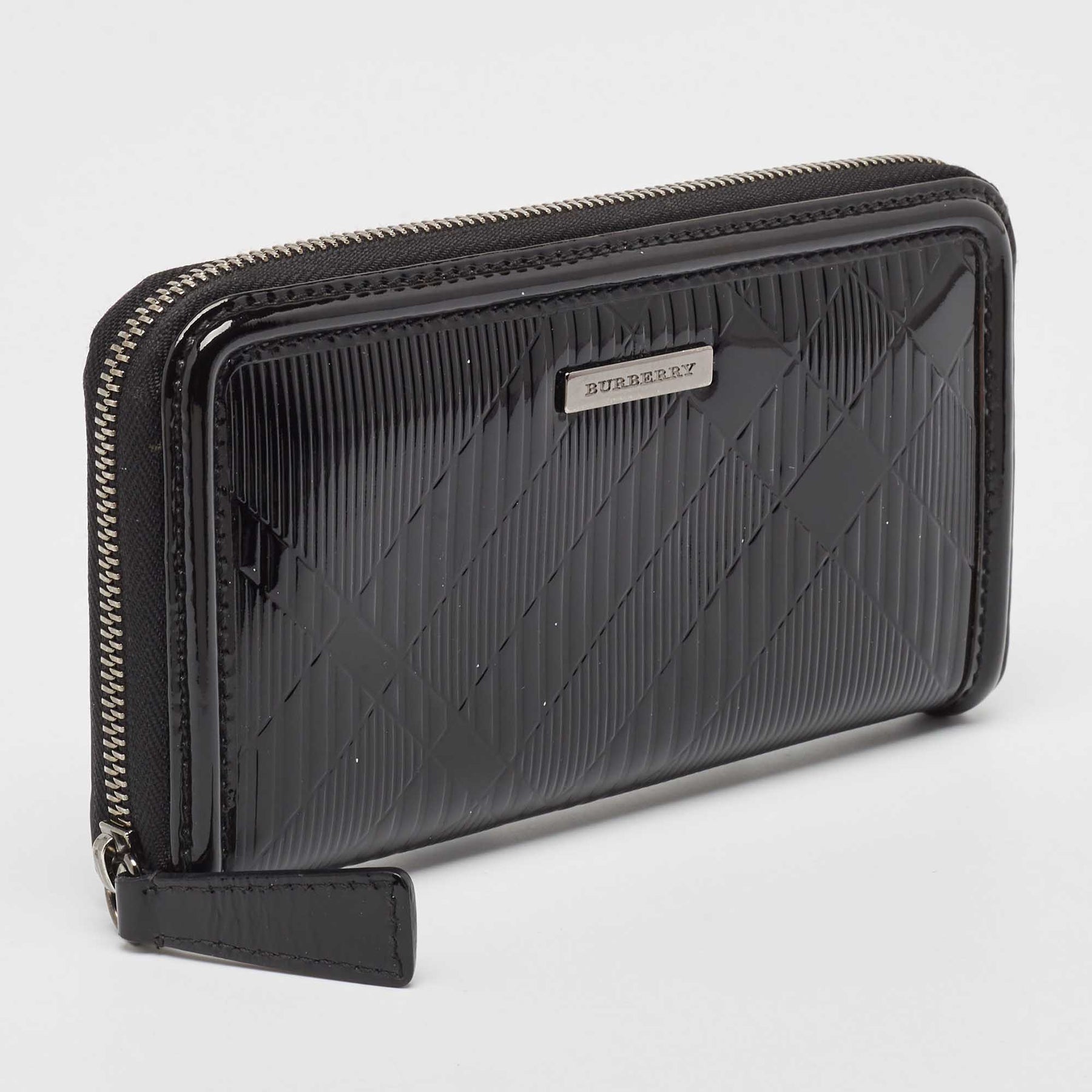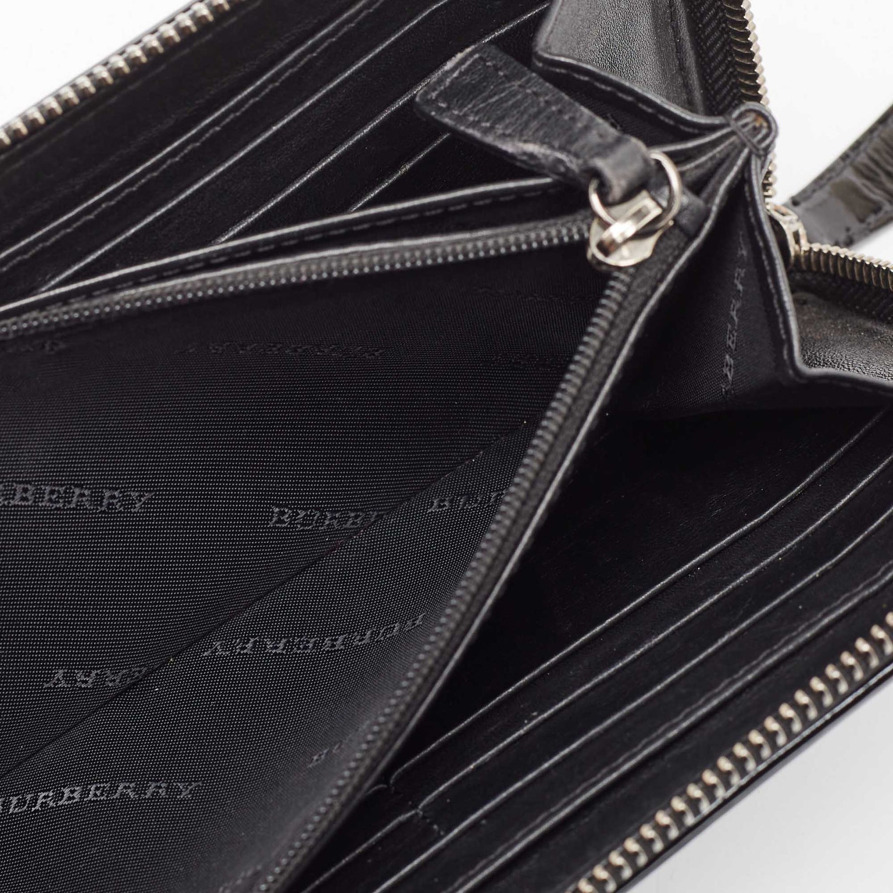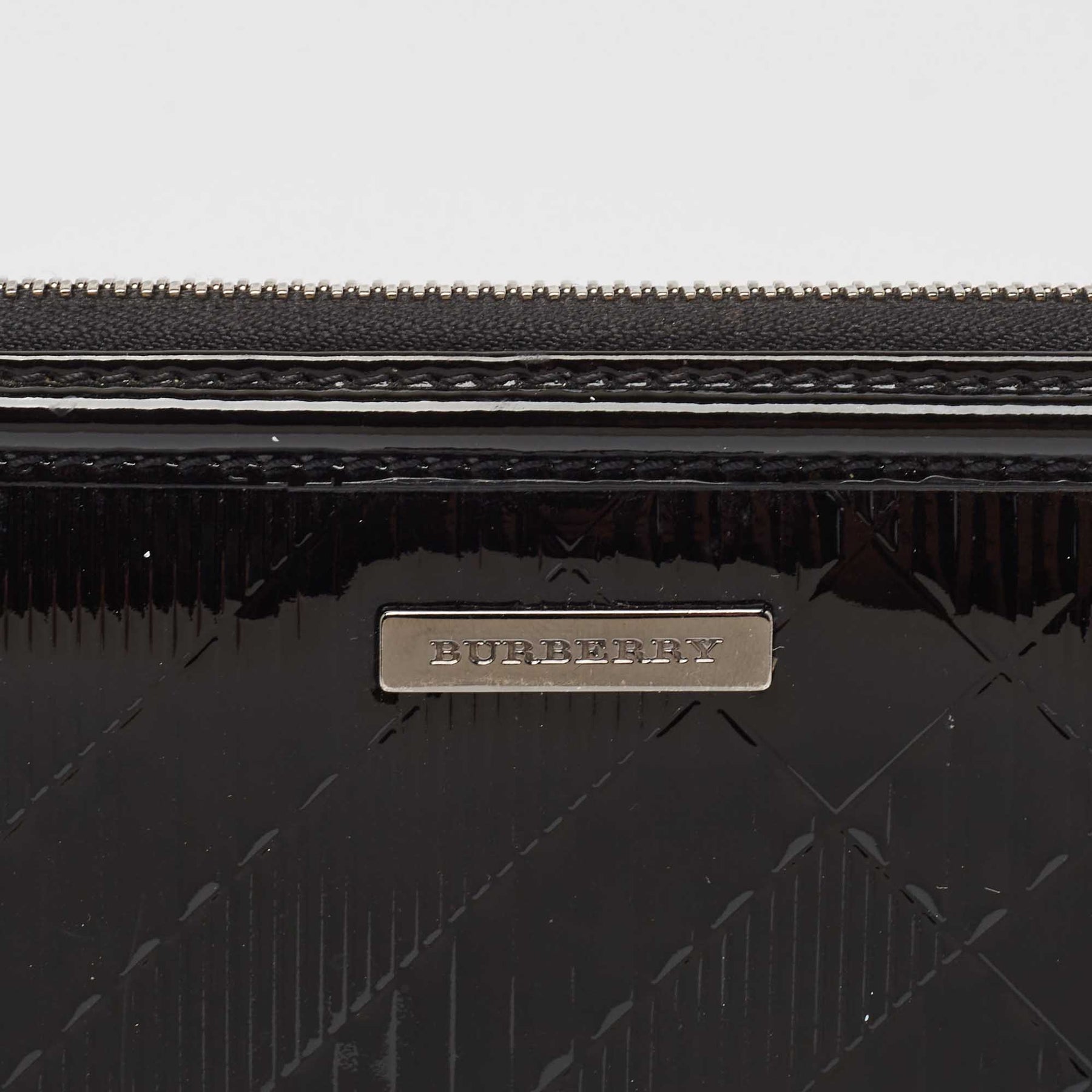 BURBERRY Black House Check Embossed Patent Leather Zip Continental Wallet