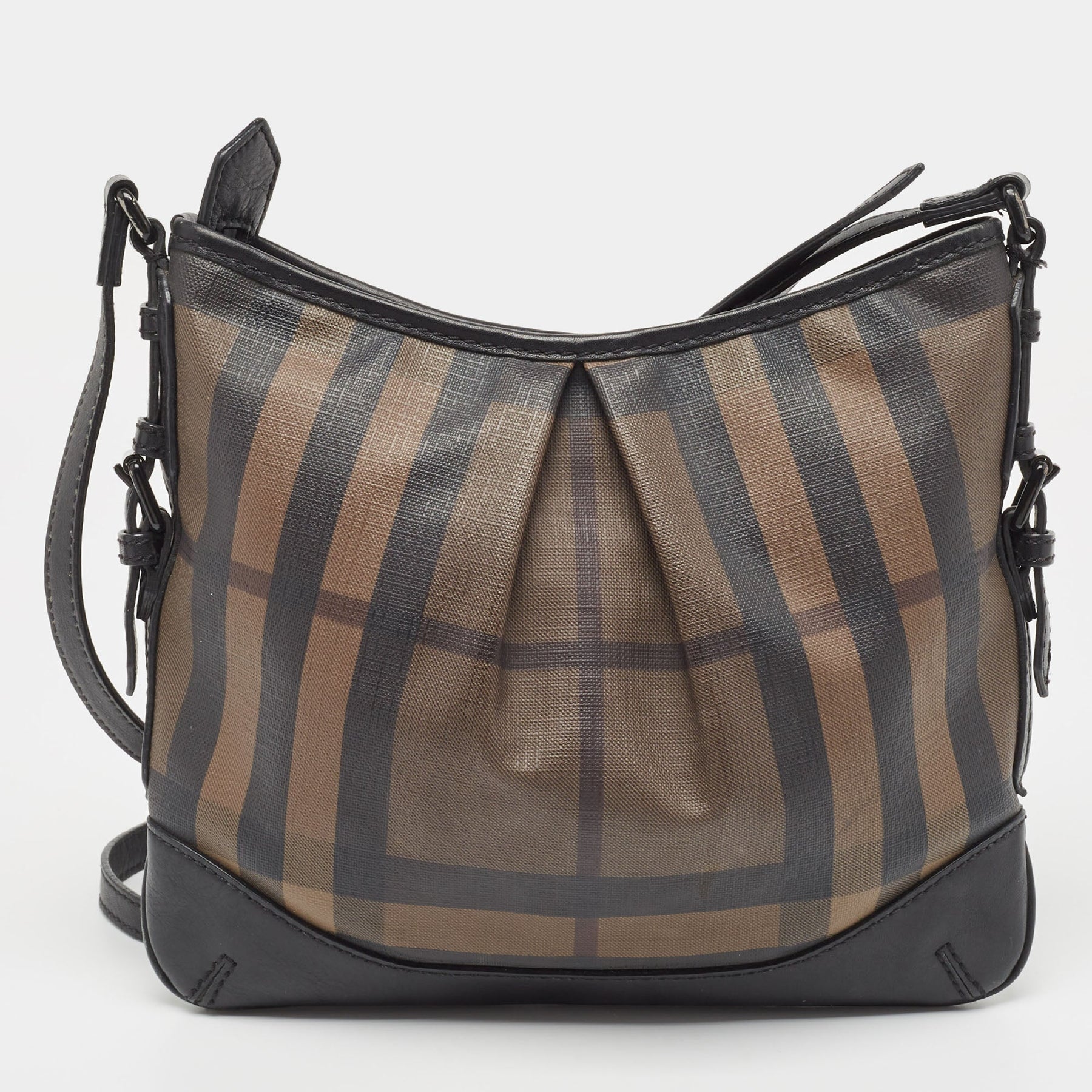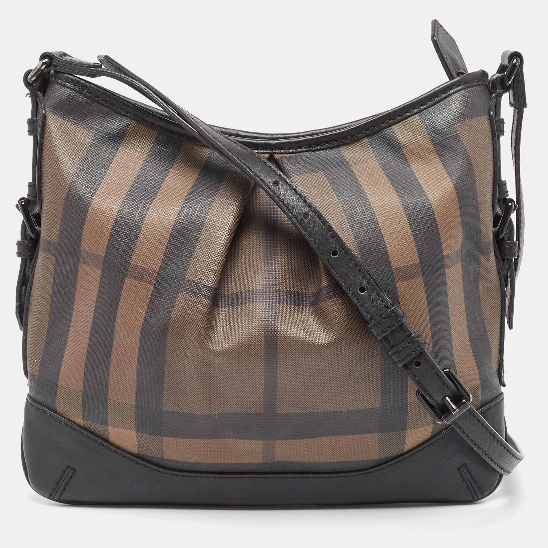BURBERRY Black House Check PVC and Leather Hartham Shoulder Bag