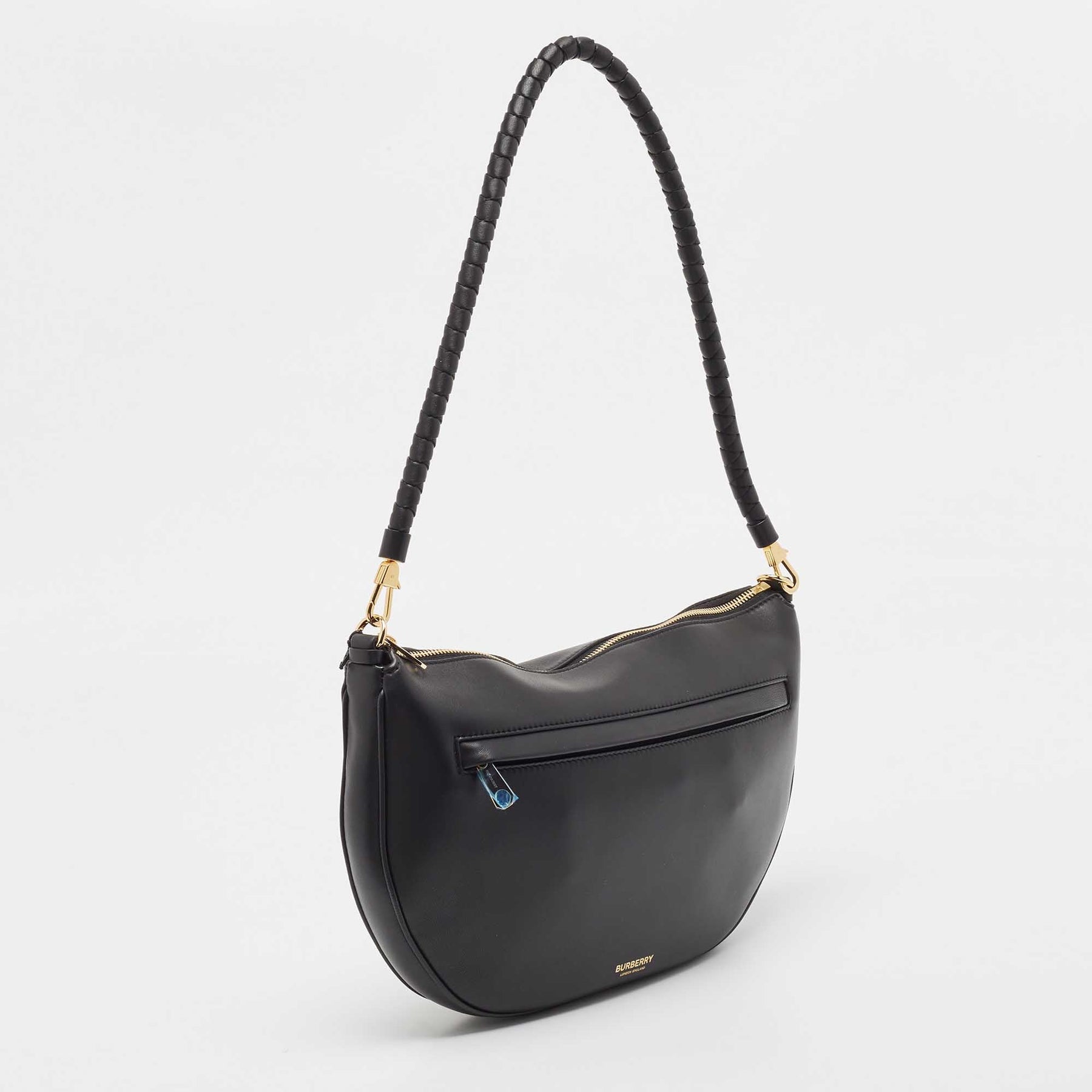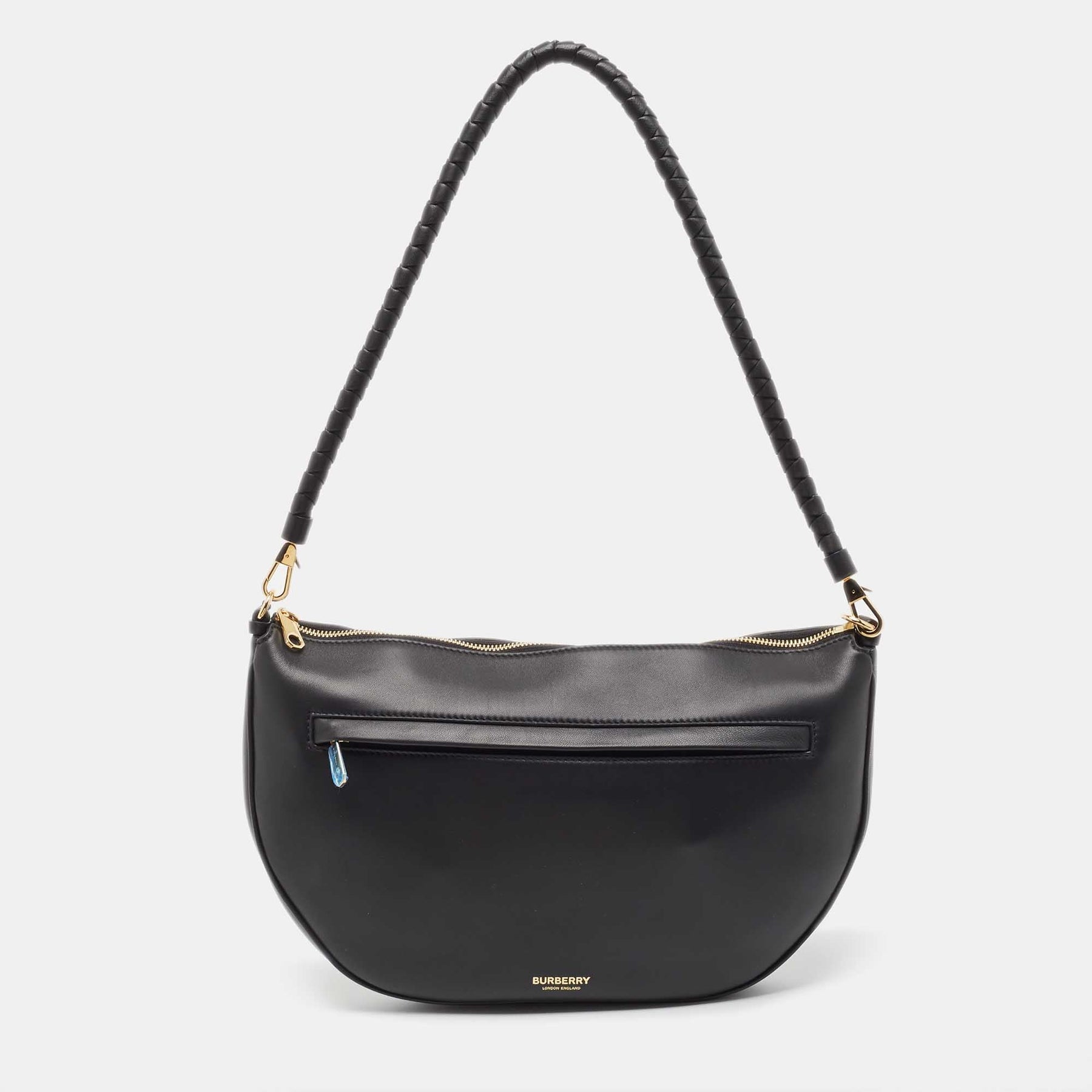 BURBERRY Black Leather Large Olympia Shoulder Bag