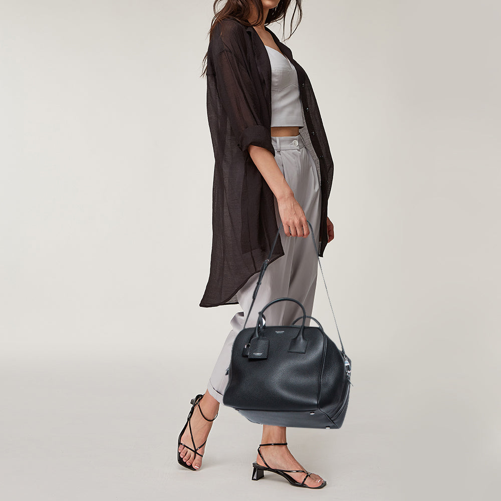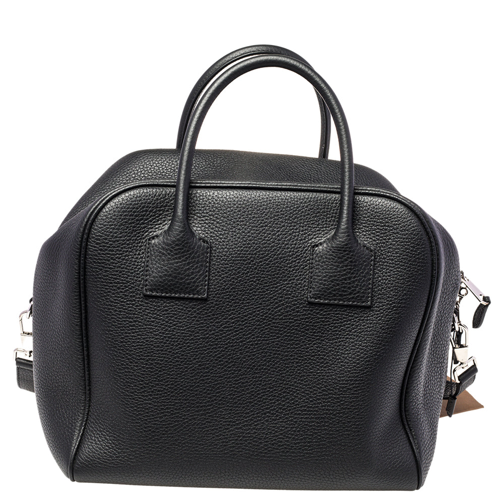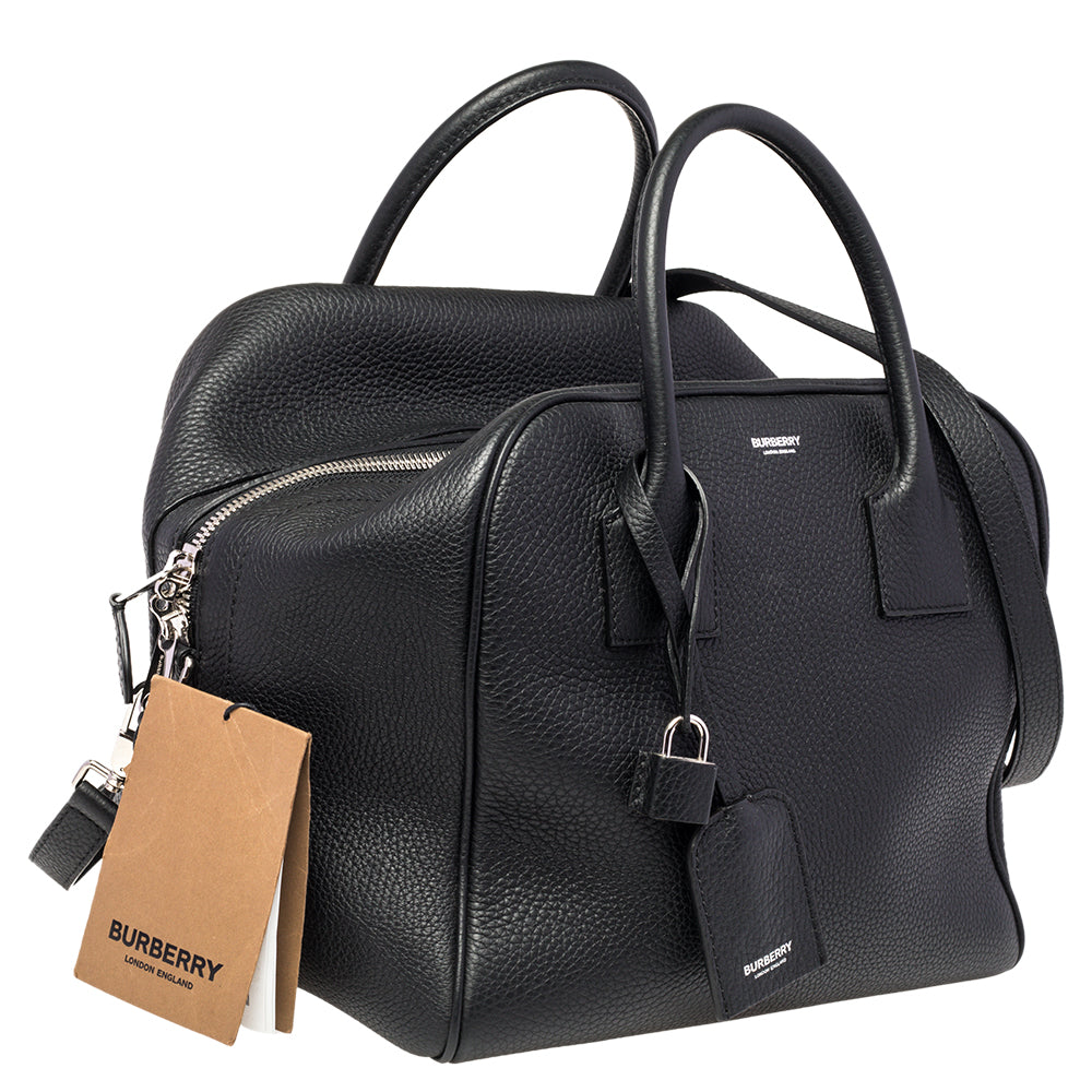 A structured and compact satchel can assist you with many outings and can be styled with most of your attires. Burberrys Cube bag is an example of the label's penchant for creating staple pieces. It is crafted from leather in a black shade and features a zipper closure that opens to a well sized interior. The bag is finished off with two handles.