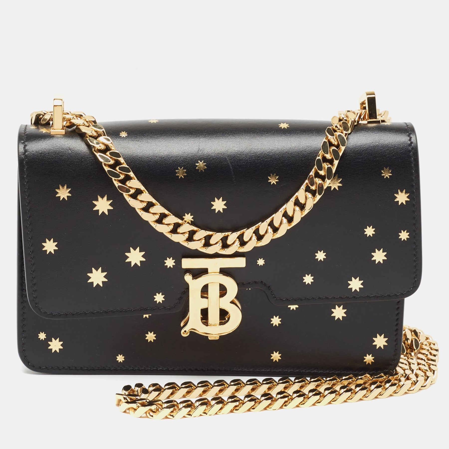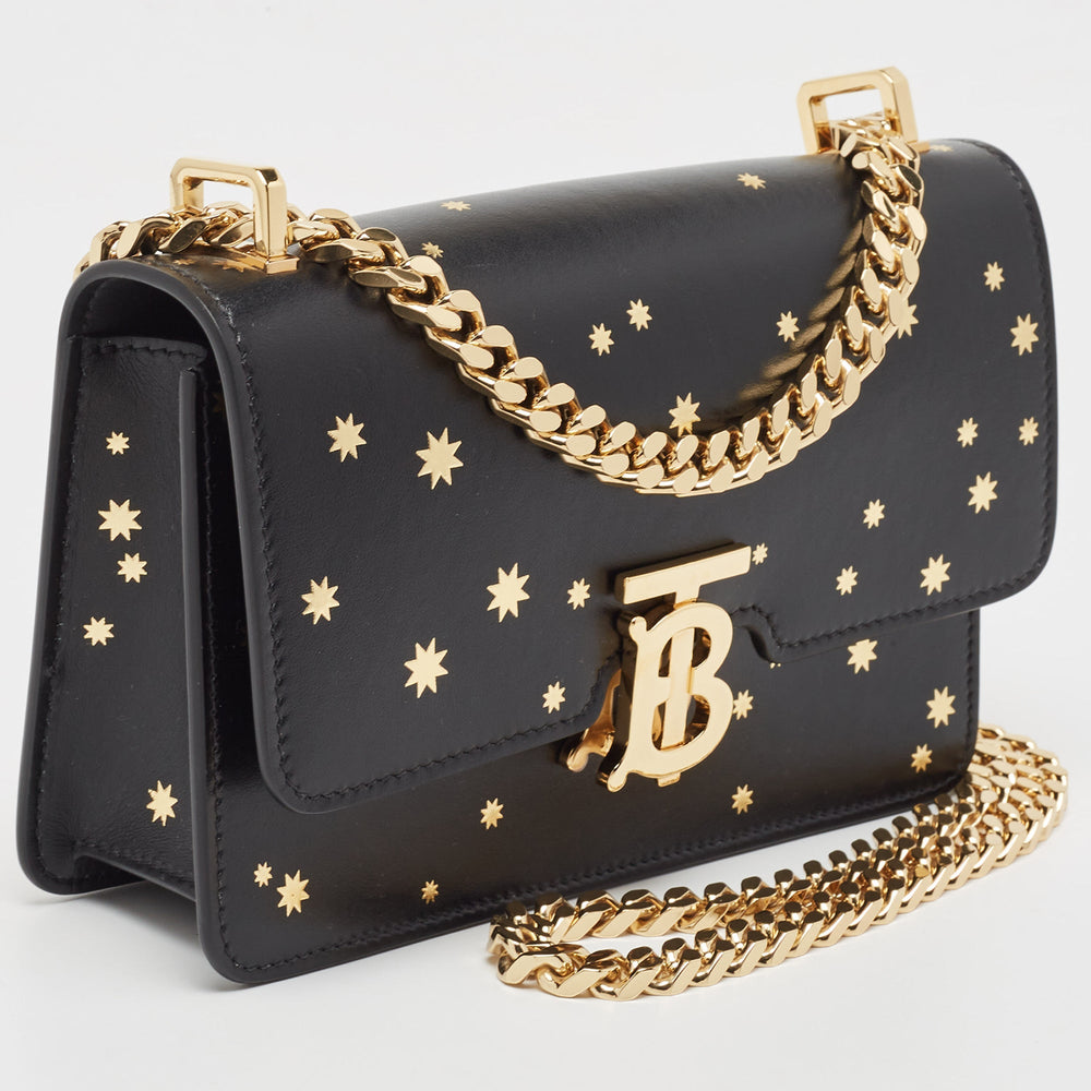 Burberrys black leather shoulder bag is a knowing investment piece thats on trend now, too. Its finished with an elegant gold tone metal TB clasp as well as an adjustable shoulder strap so it can be in a number of different ways. With more room inside than you can imagine, the three internal pockets feature enough space for all of your essentials. Carry it with everyday ensembles for a modern yet timeless edit.