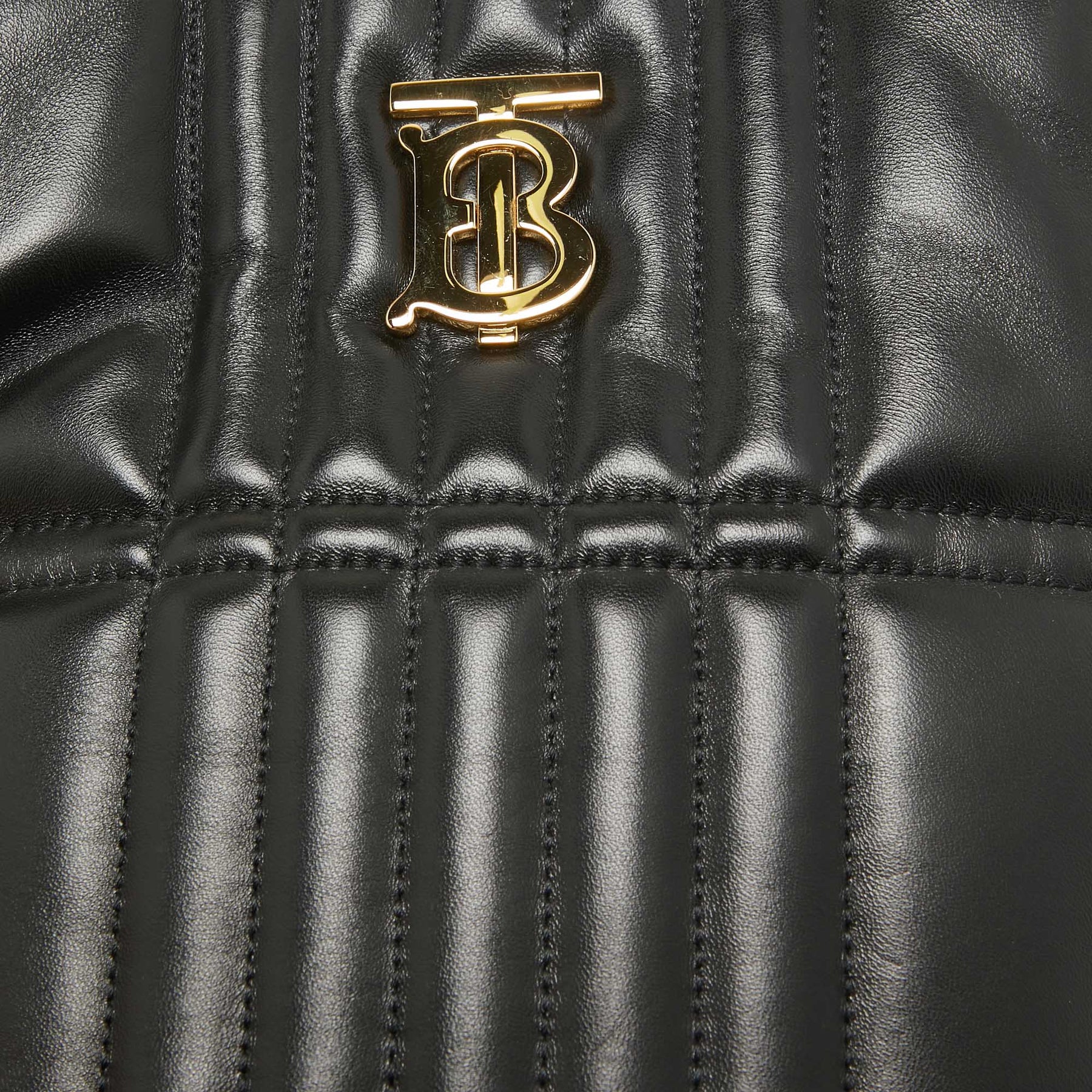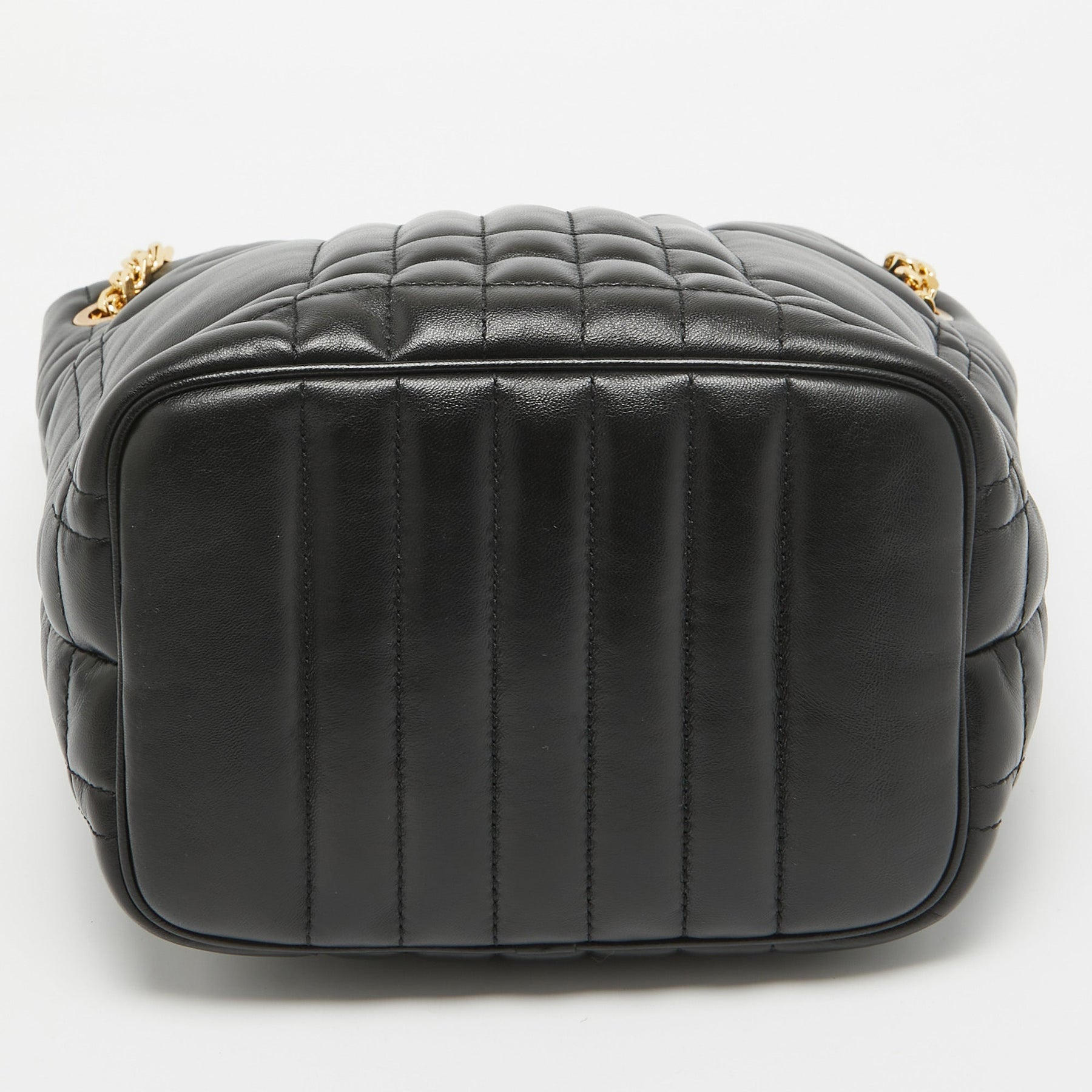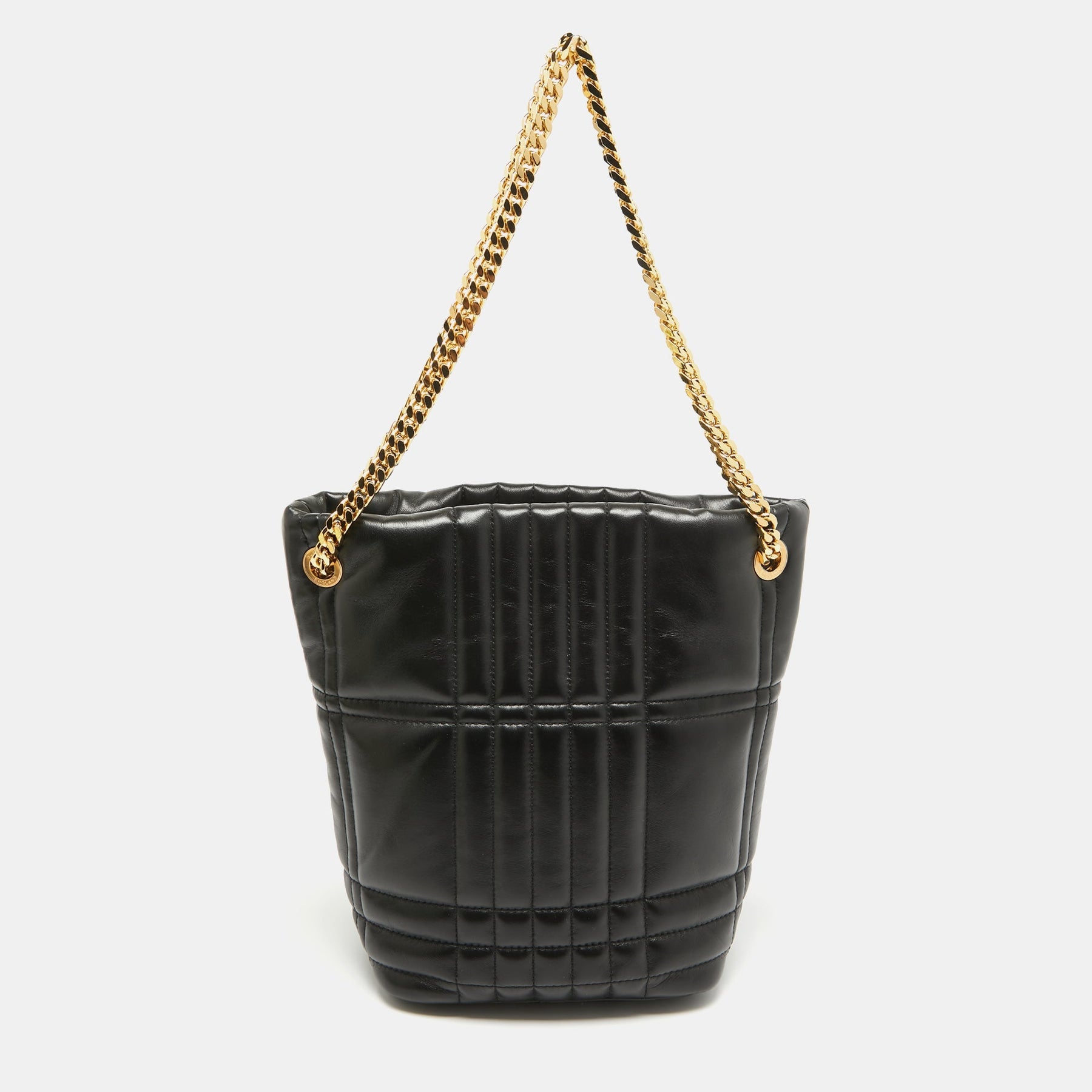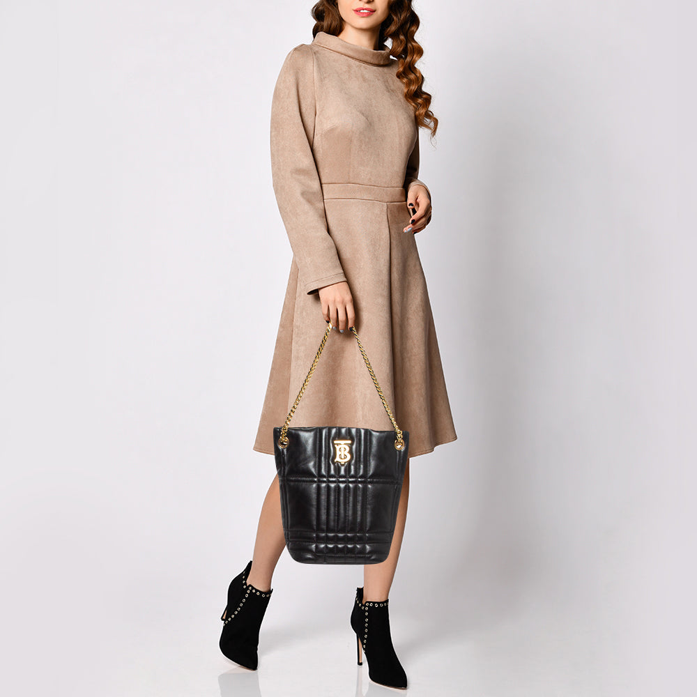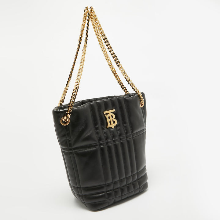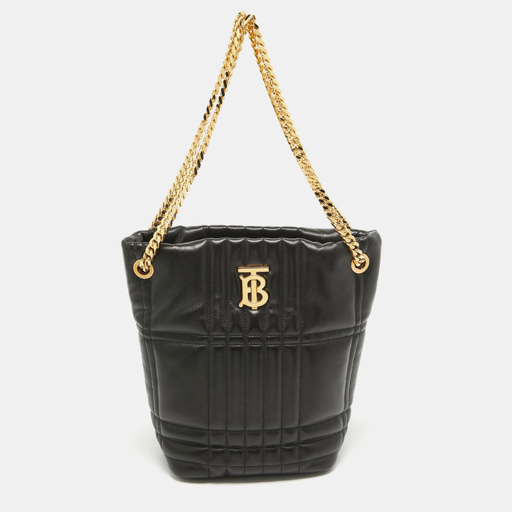 BURBERRY Black Quilted Check Leather Small Lola Bucket Bag