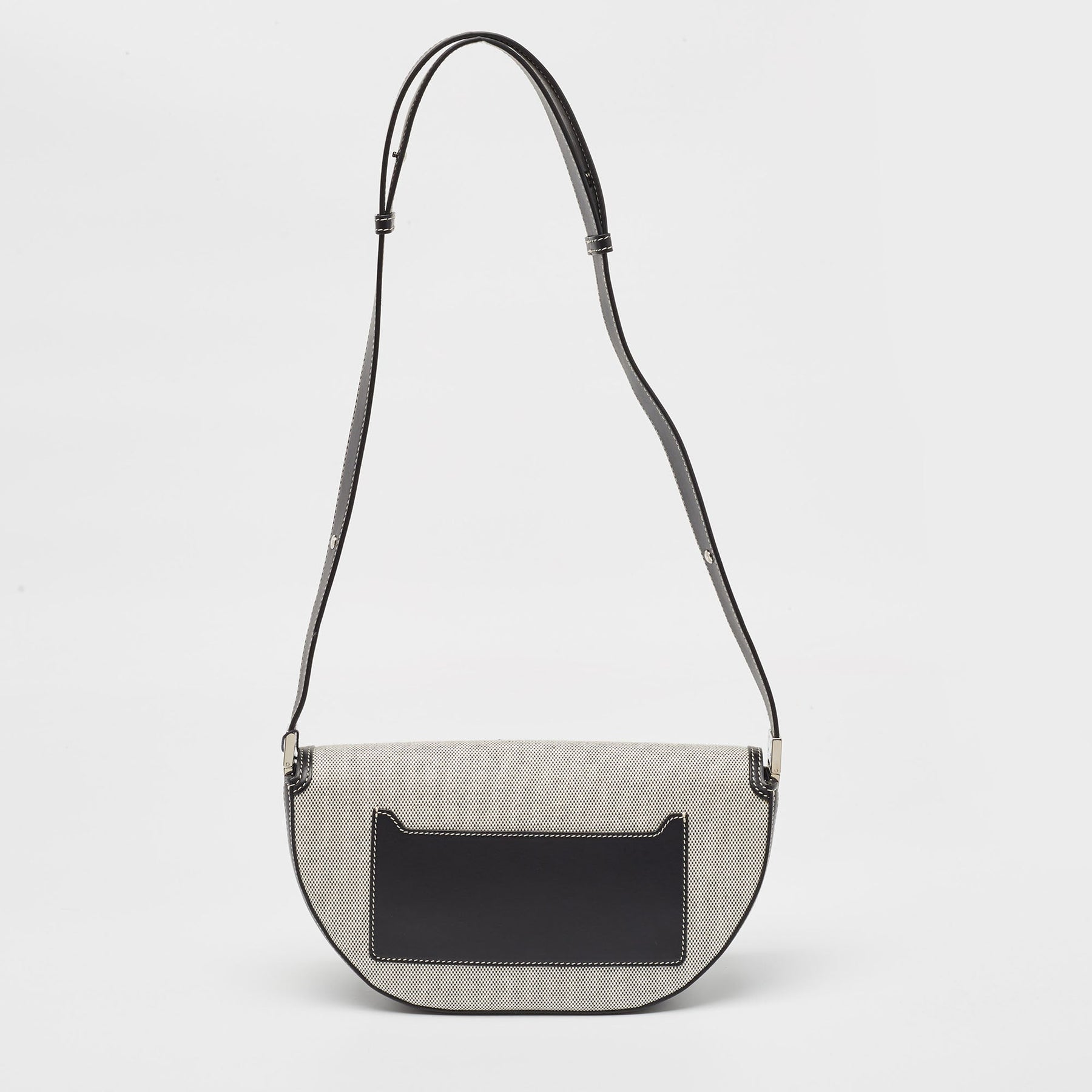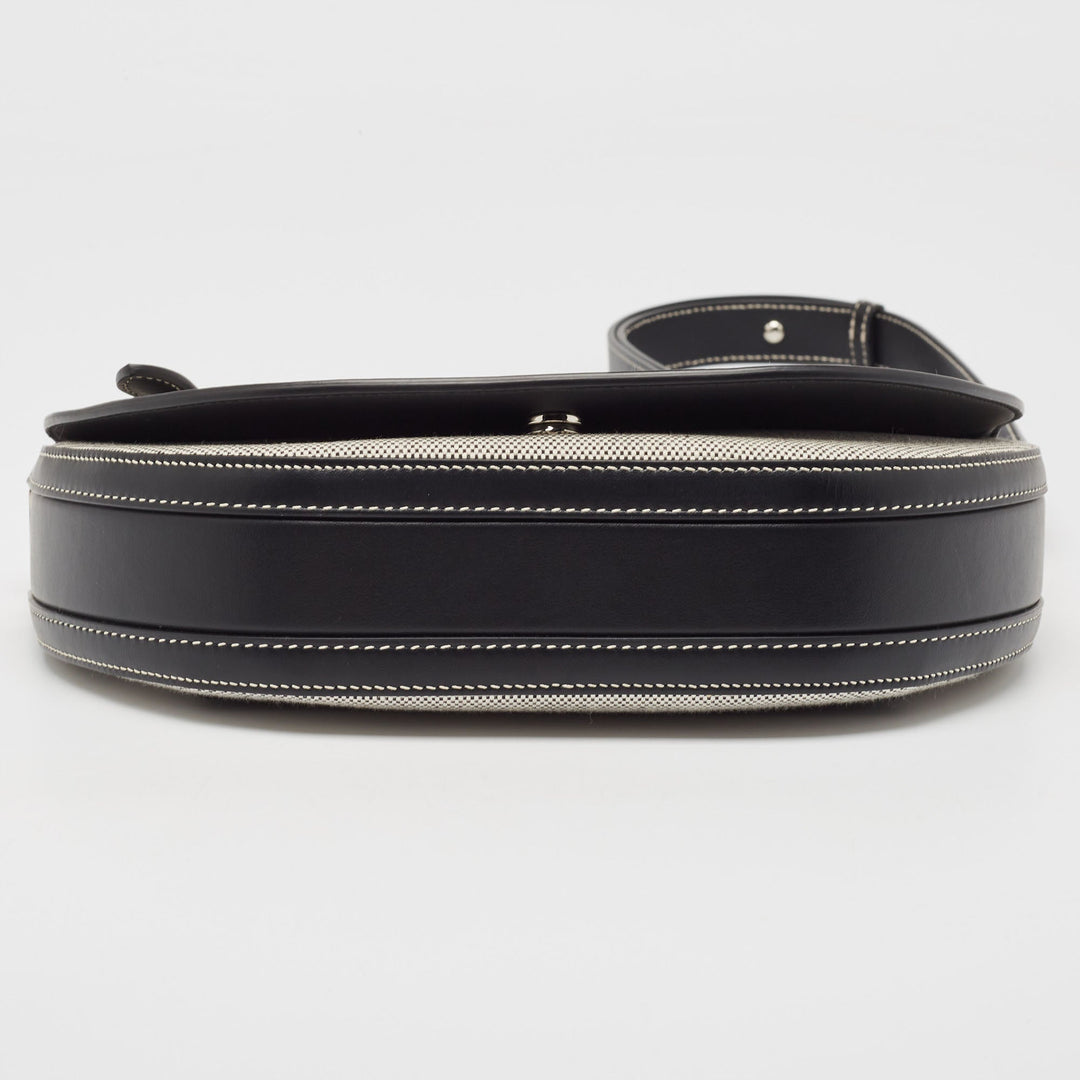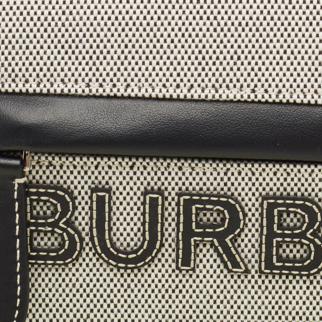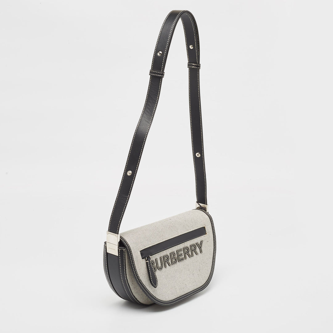 BURBERRY Black/White Canvas and Leather Small Olympia Shoulder Bag