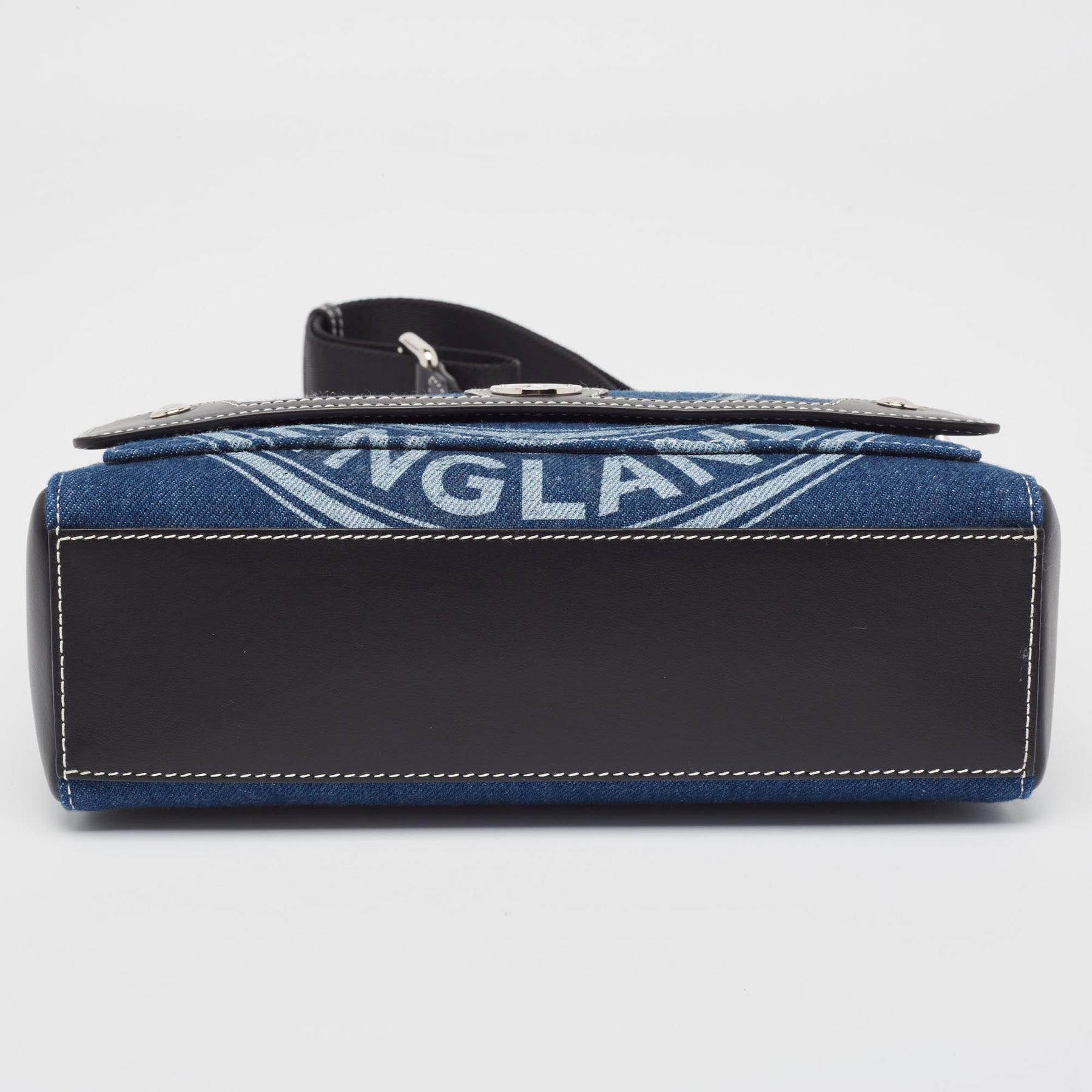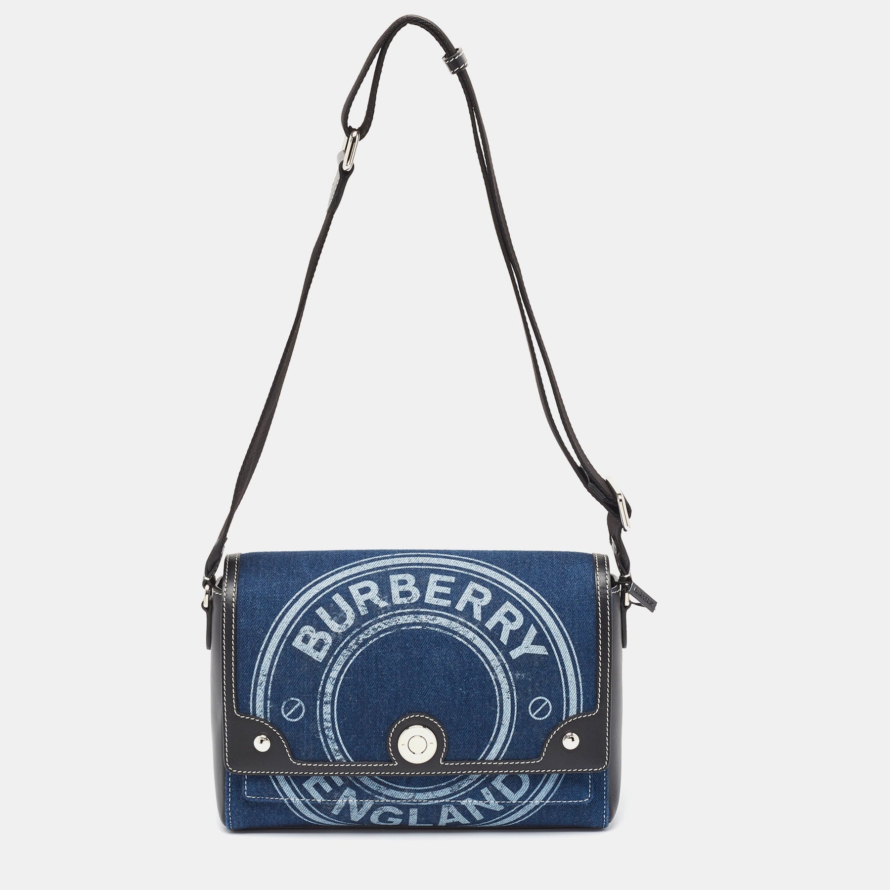 BURBERRY Blue/Black Denim and Leather Medium Note Shoulder Bag