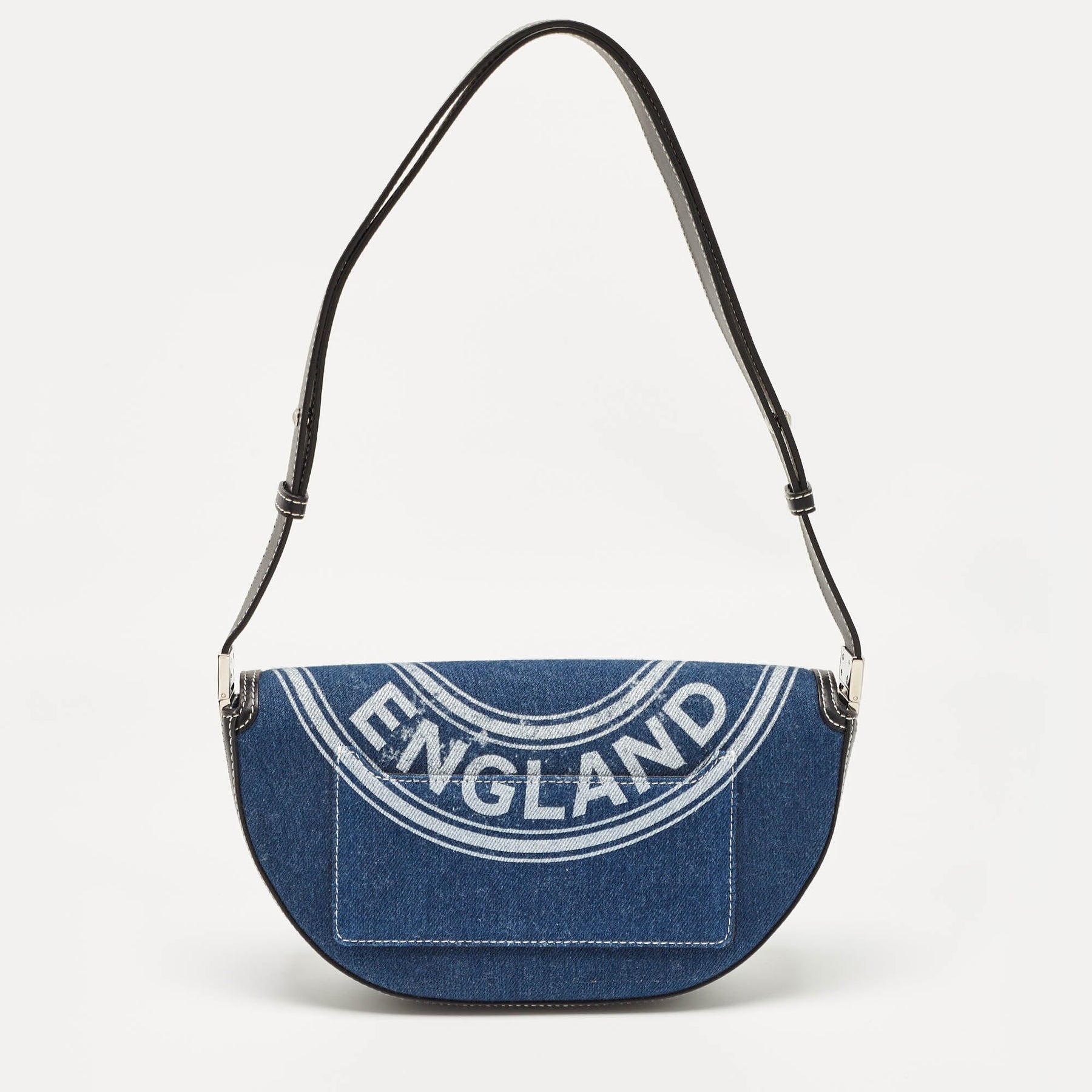 BURBERRY Blue/Black Denim and Leather Small Olympia Shoulder Bag