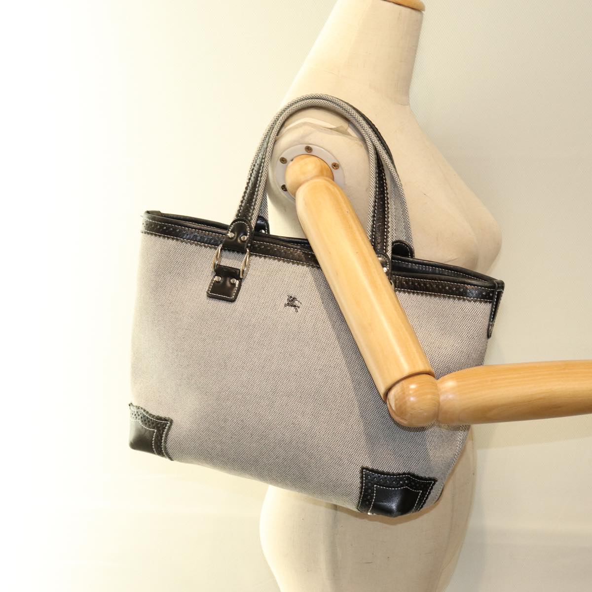 BURBERRY Blue Label Hand Bag Canvas Gray Auth bs14209
