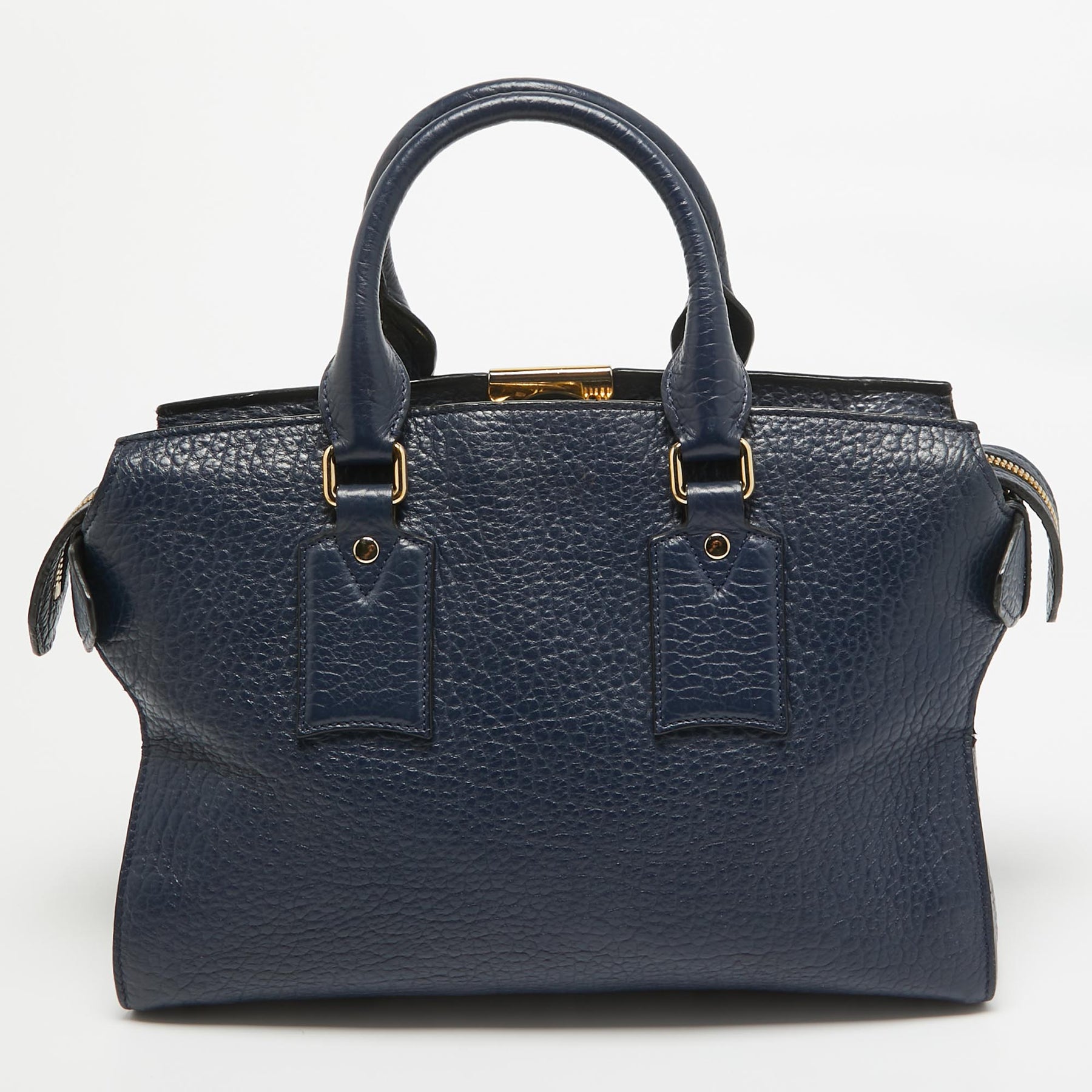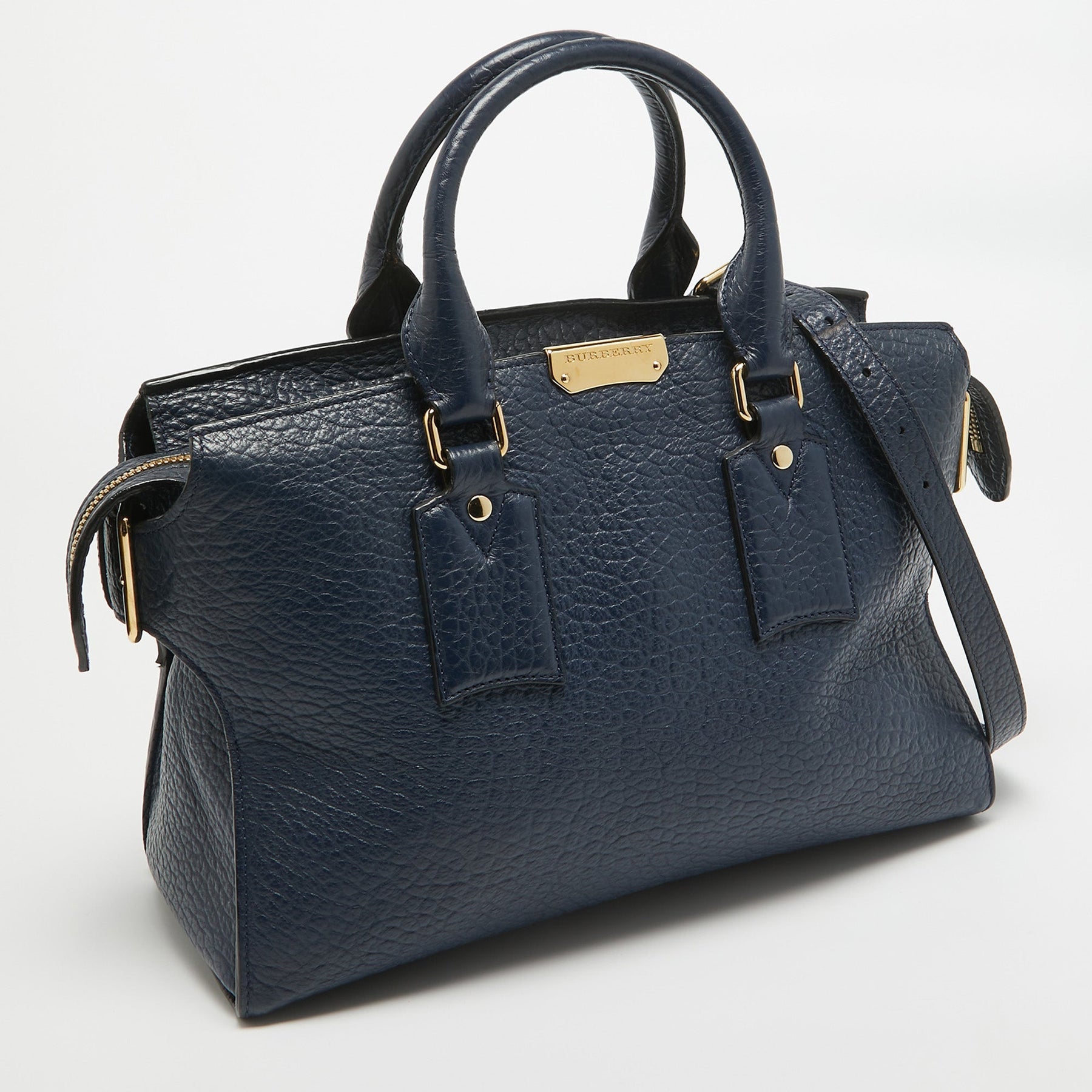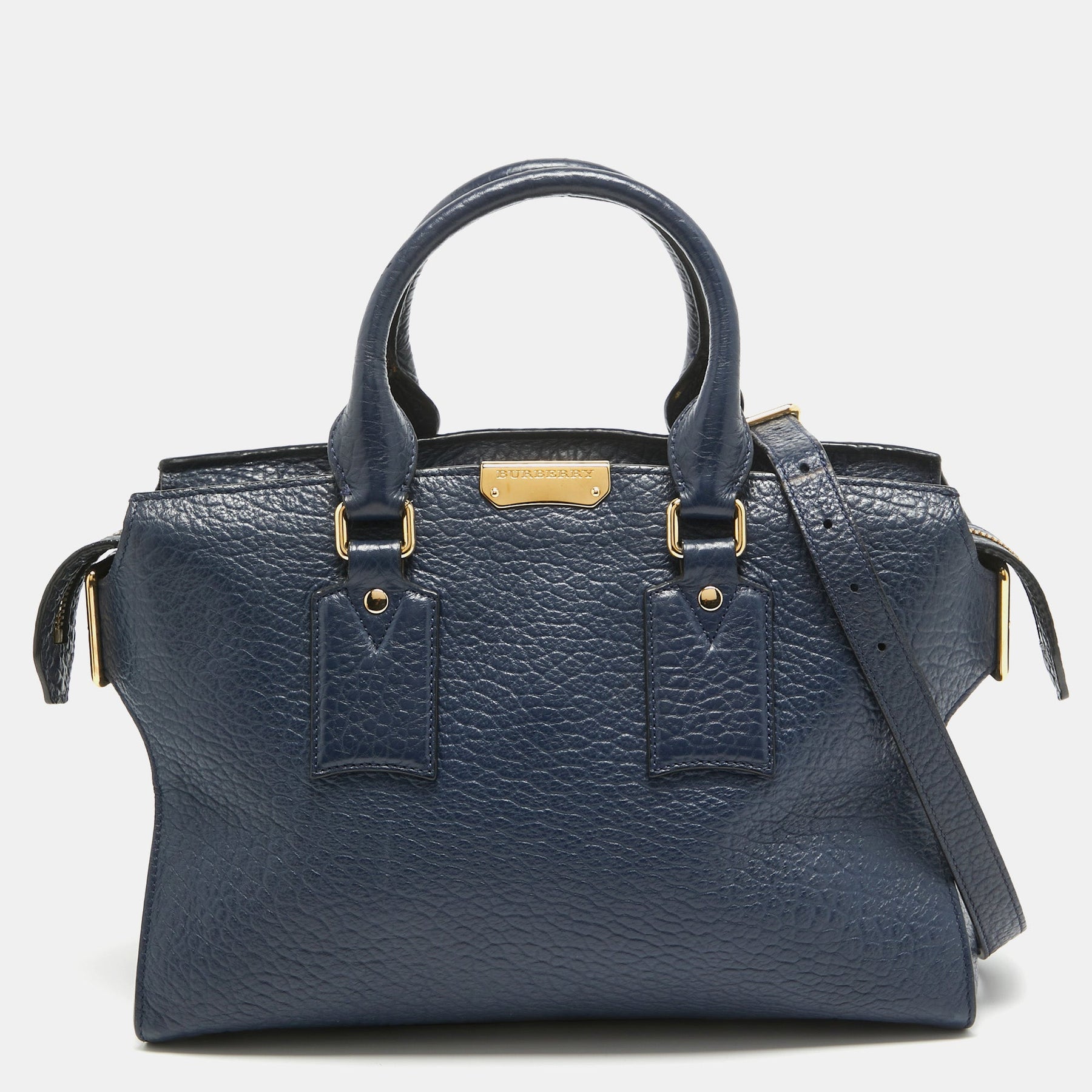 BURBERRY Blue Pebbled Leather Clifton Satchel