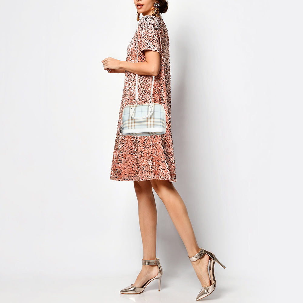 BURBERRY Blue/White House Check PVC and Leather Dome Satchel