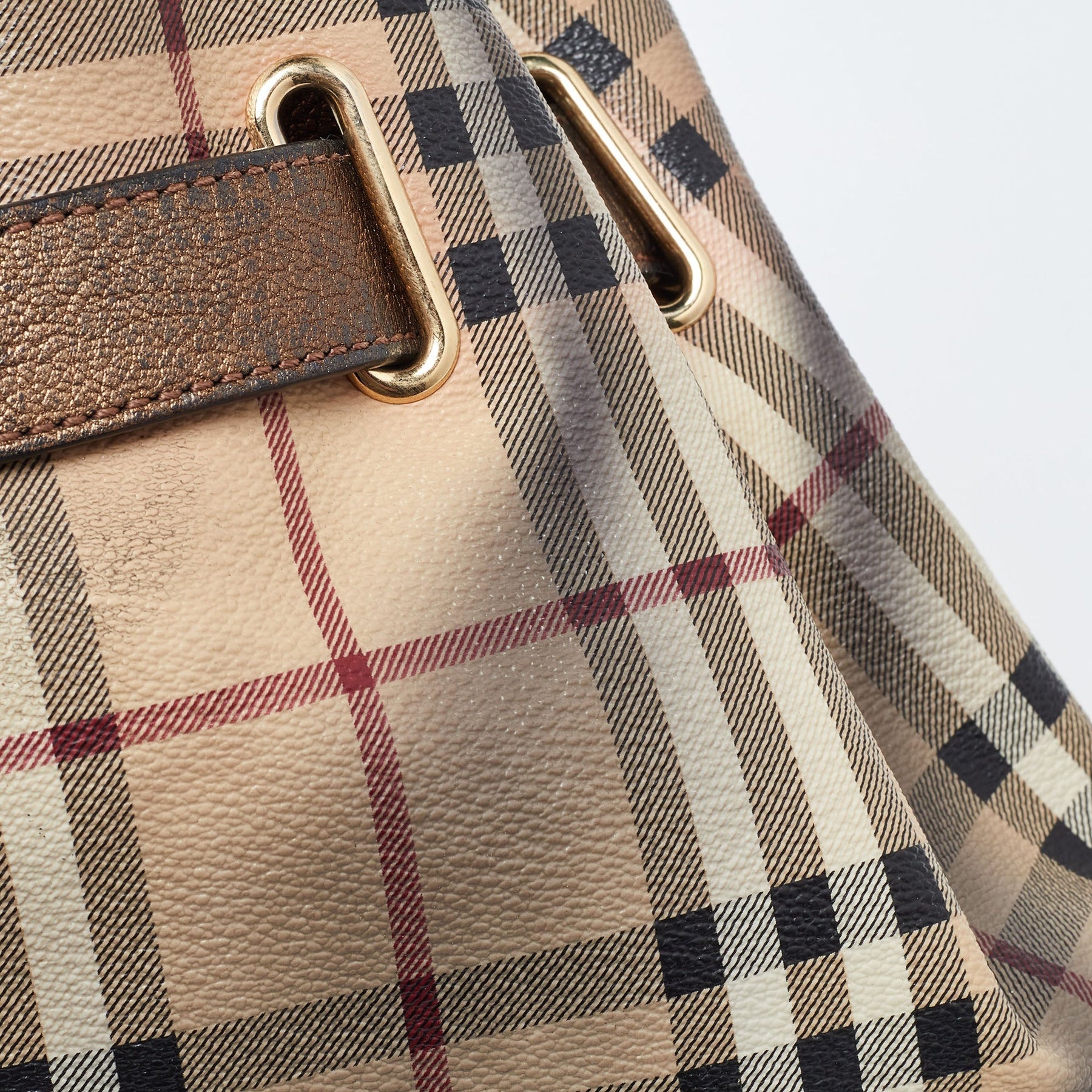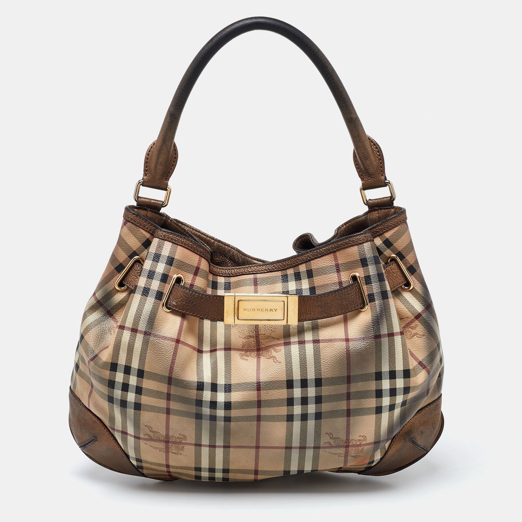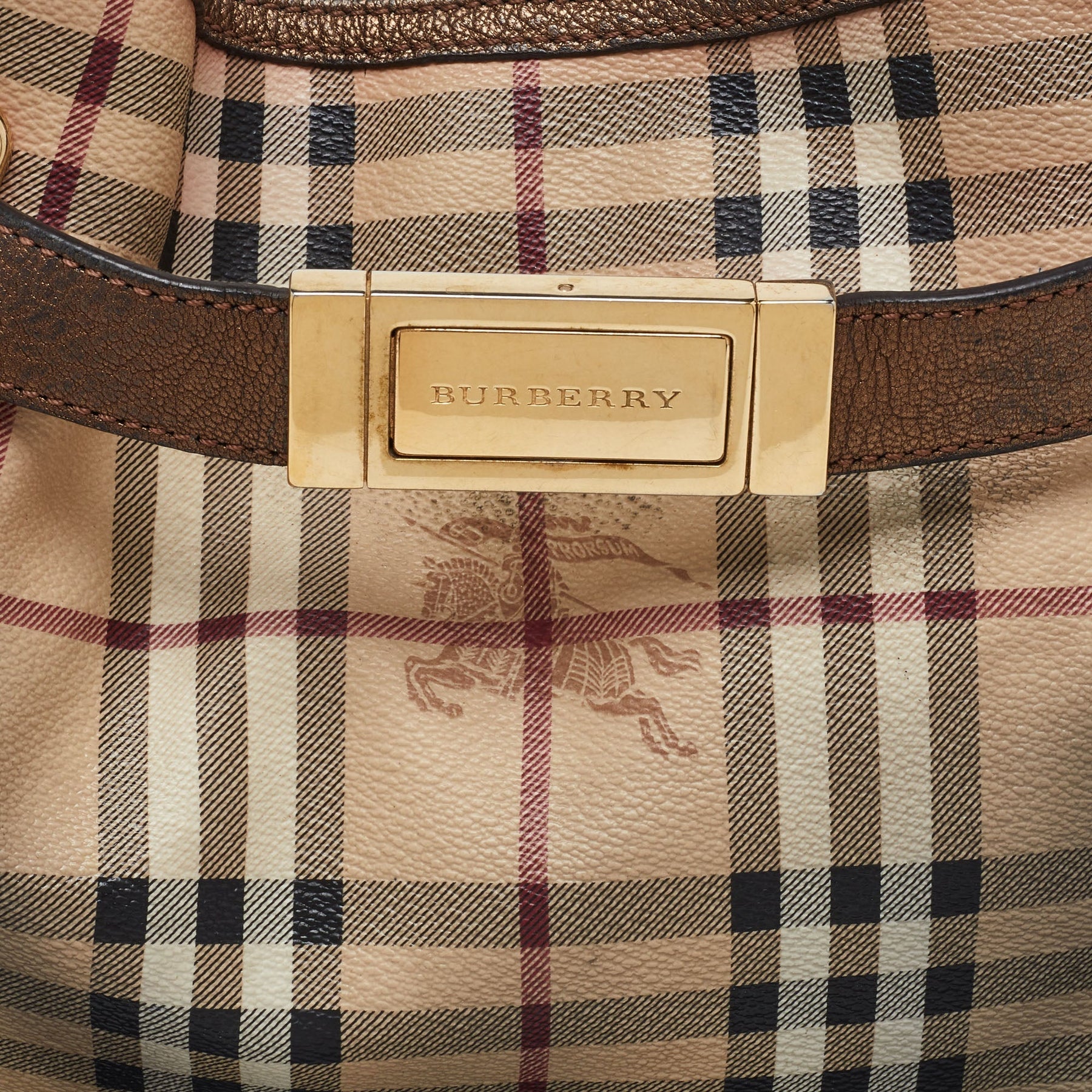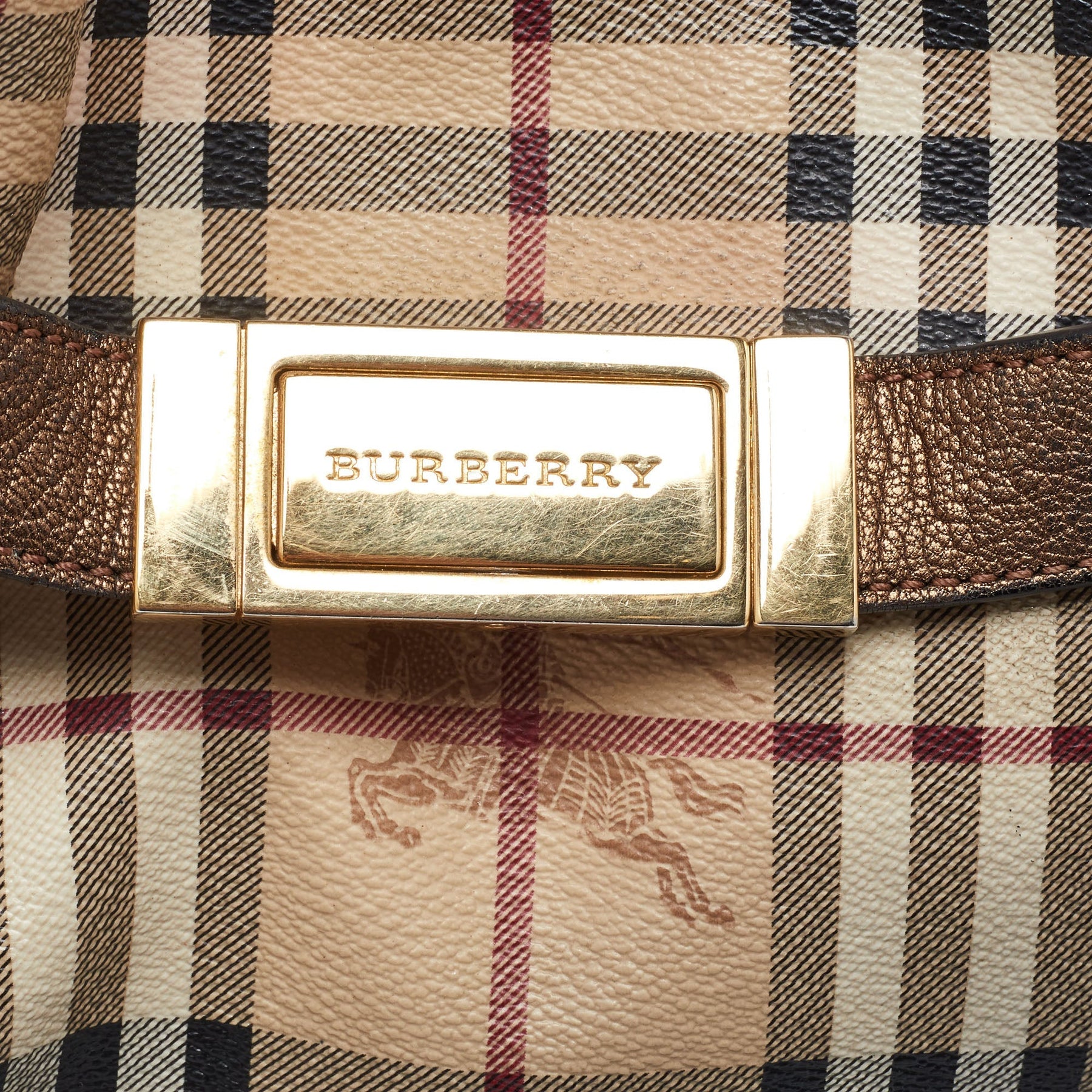 BURBERRY Bronze/Beige Haymarket Check PVC and Leather Medium Willenmore Hobo